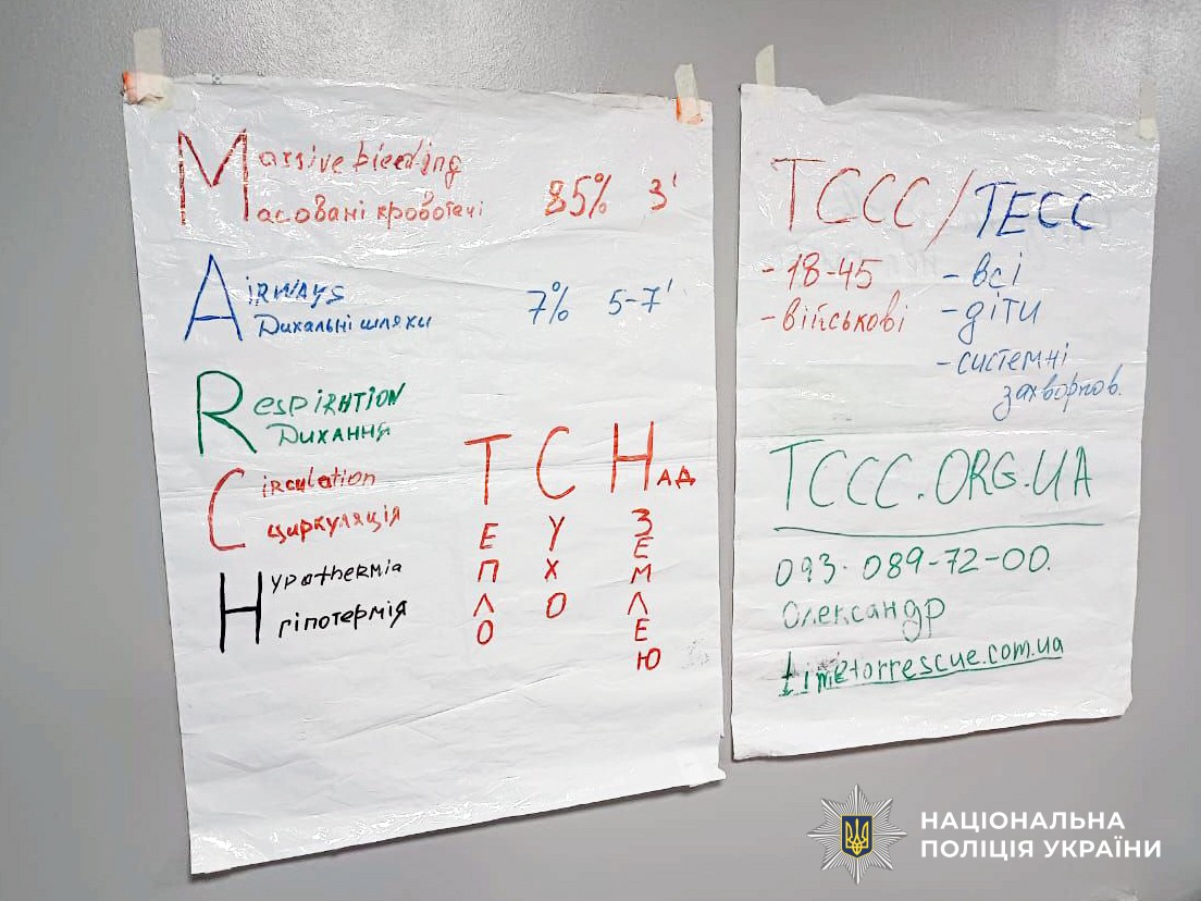 Команда інструкторів провела для поліцейських та рятувальників тренінг з надання допомоги пораненим у небезпечних місцях.