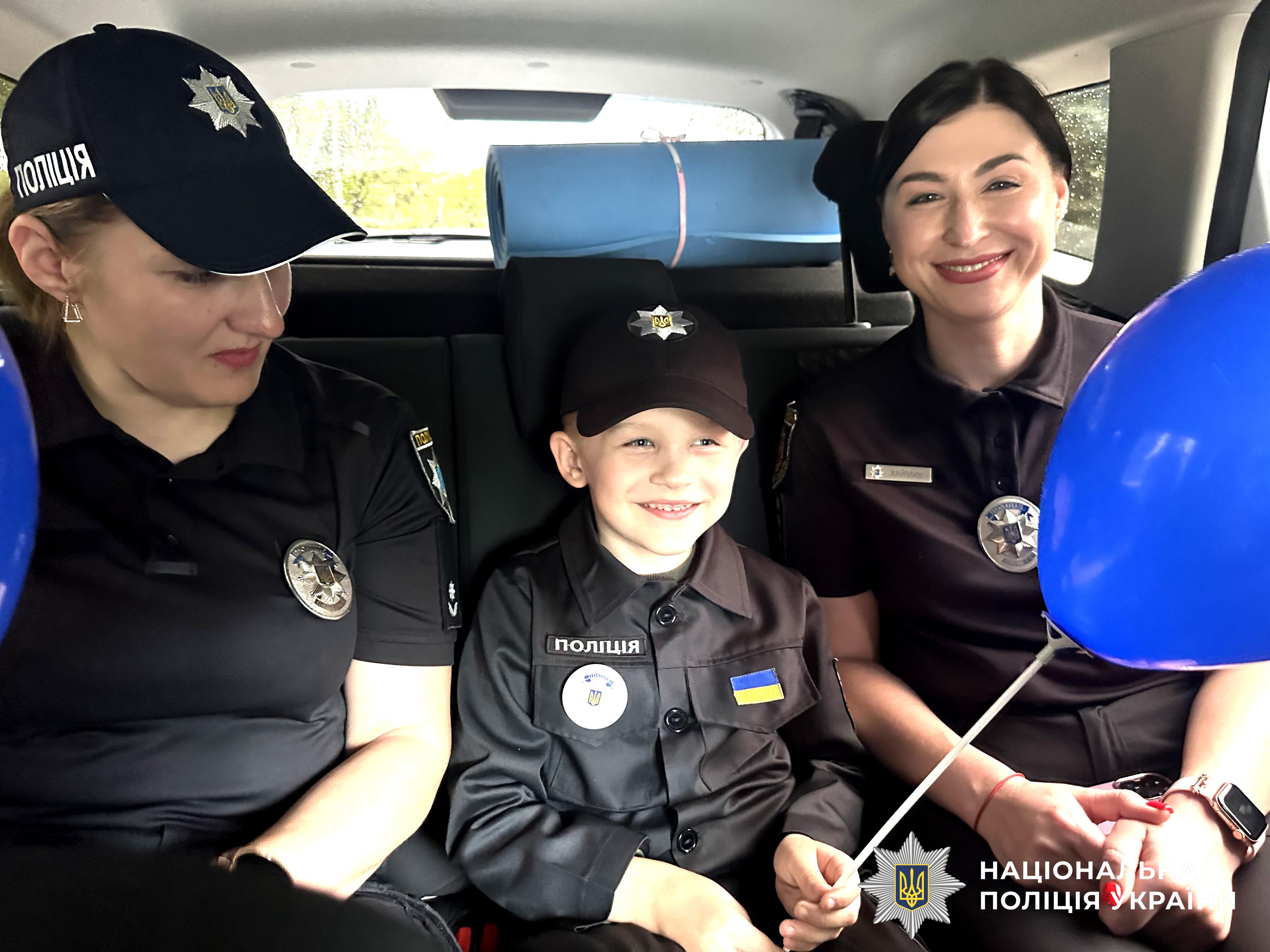 Для початку правоохоронці зробили хлопчикові сюрприз і приїхали в дитсадок. Там замість звичного — одягнув подаровану поліцейськими форму і на службовому авто прибув до місцевого відділення поліції.
