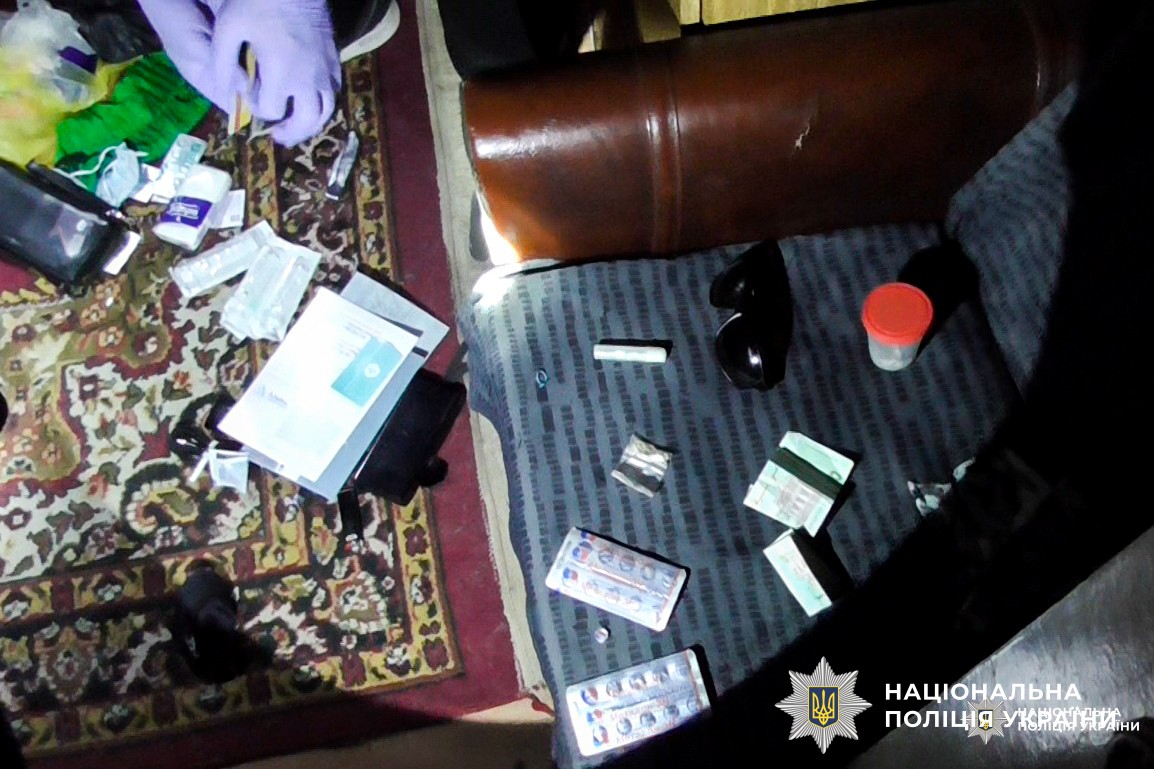 Поліцейські провели санкціонований обшук, під час якого виявили та вилучили метадон, канабіс, бупренорфін та засоби для вживання наркотиків.
