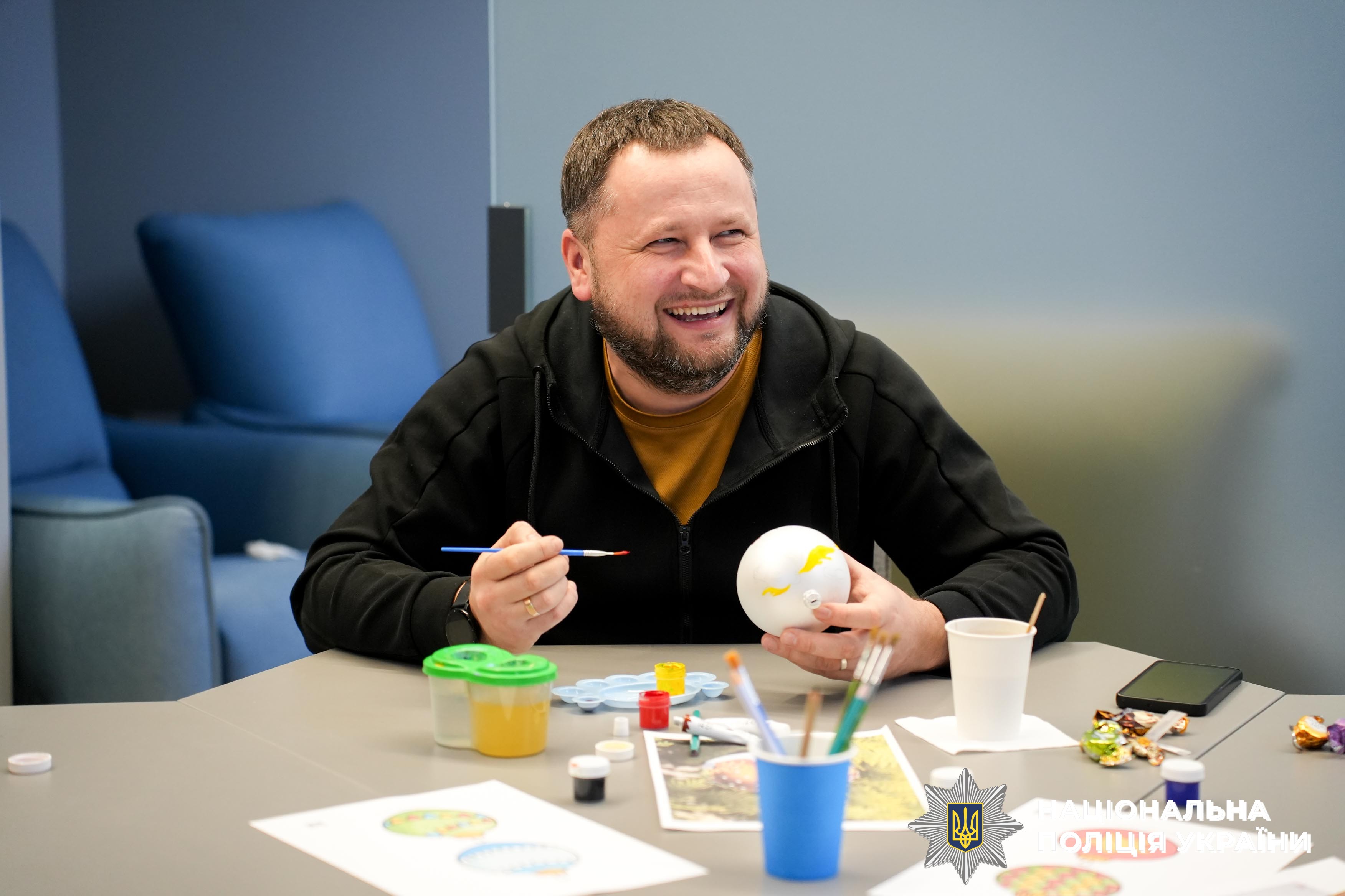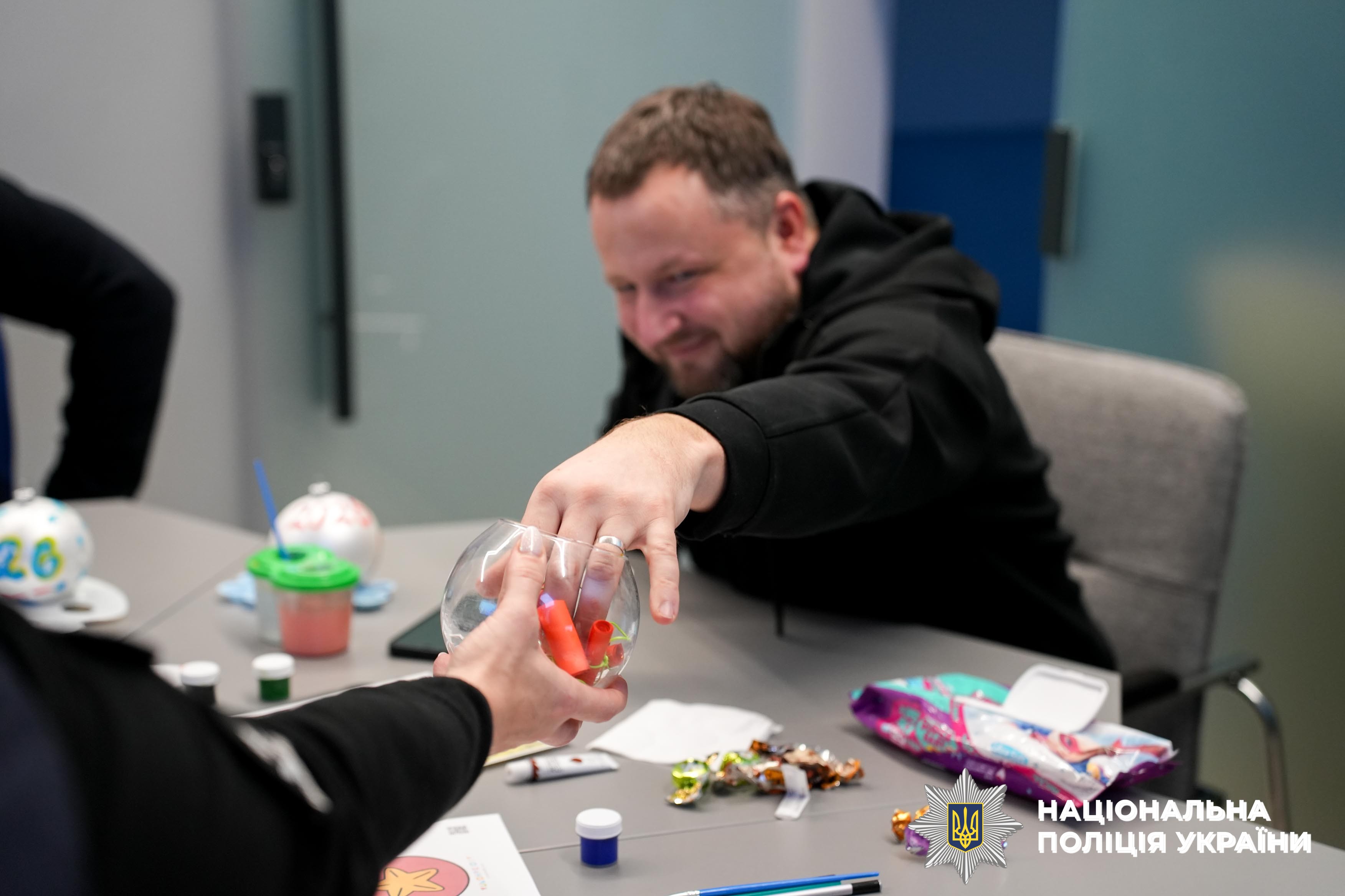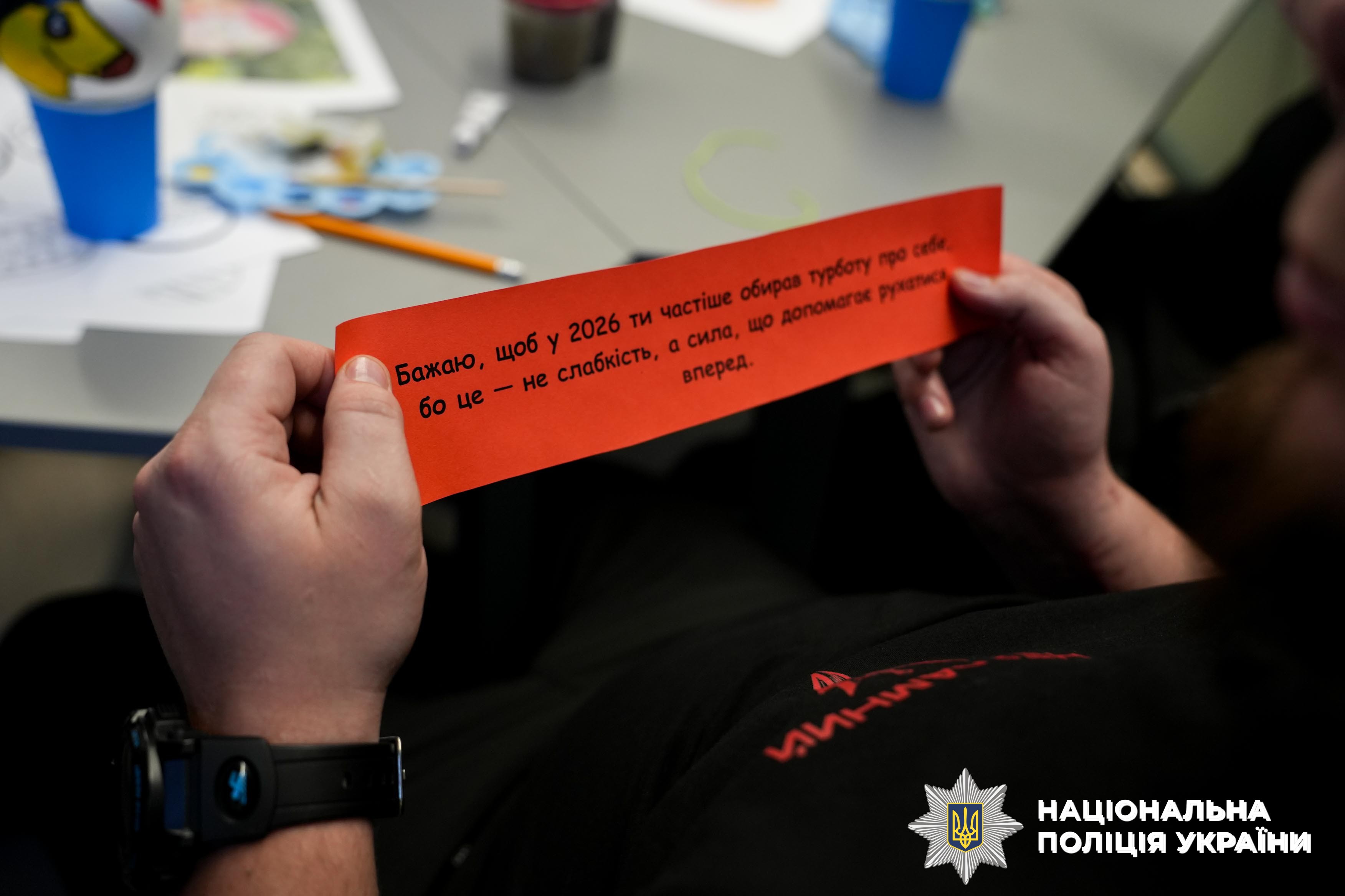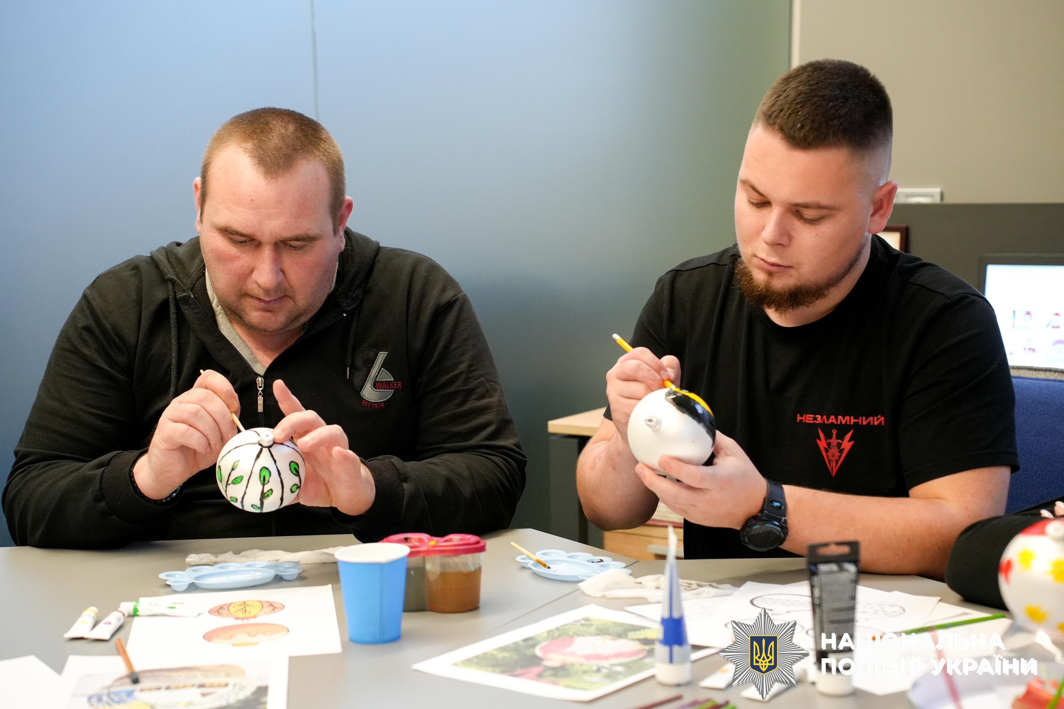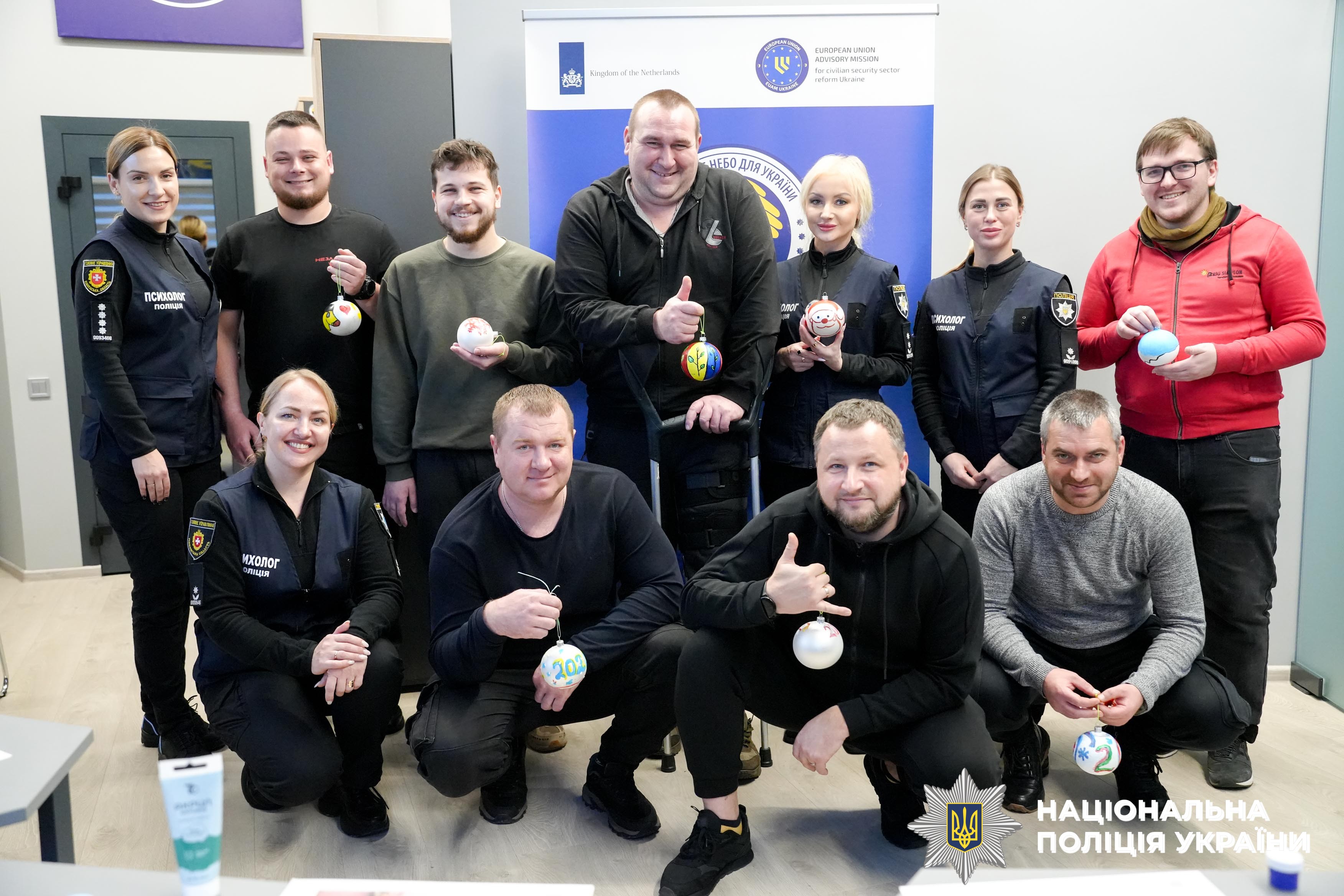 Так, у просторі соціально-психологічної підтримки «Блакитне небо для України» бійці створювали унікальні ялинкові прикраси, вкладаючи у кожну кульку власні емоції та мрії. Дехто з поранених обирав елементи, пов’язані з образом Коня — символом прийдешнього 2026 року. Ці риси надзвичайно відгукуються нашим поліцейським, адже саме наполегливість, воля та незламність допомагають їм рухатися вперед.