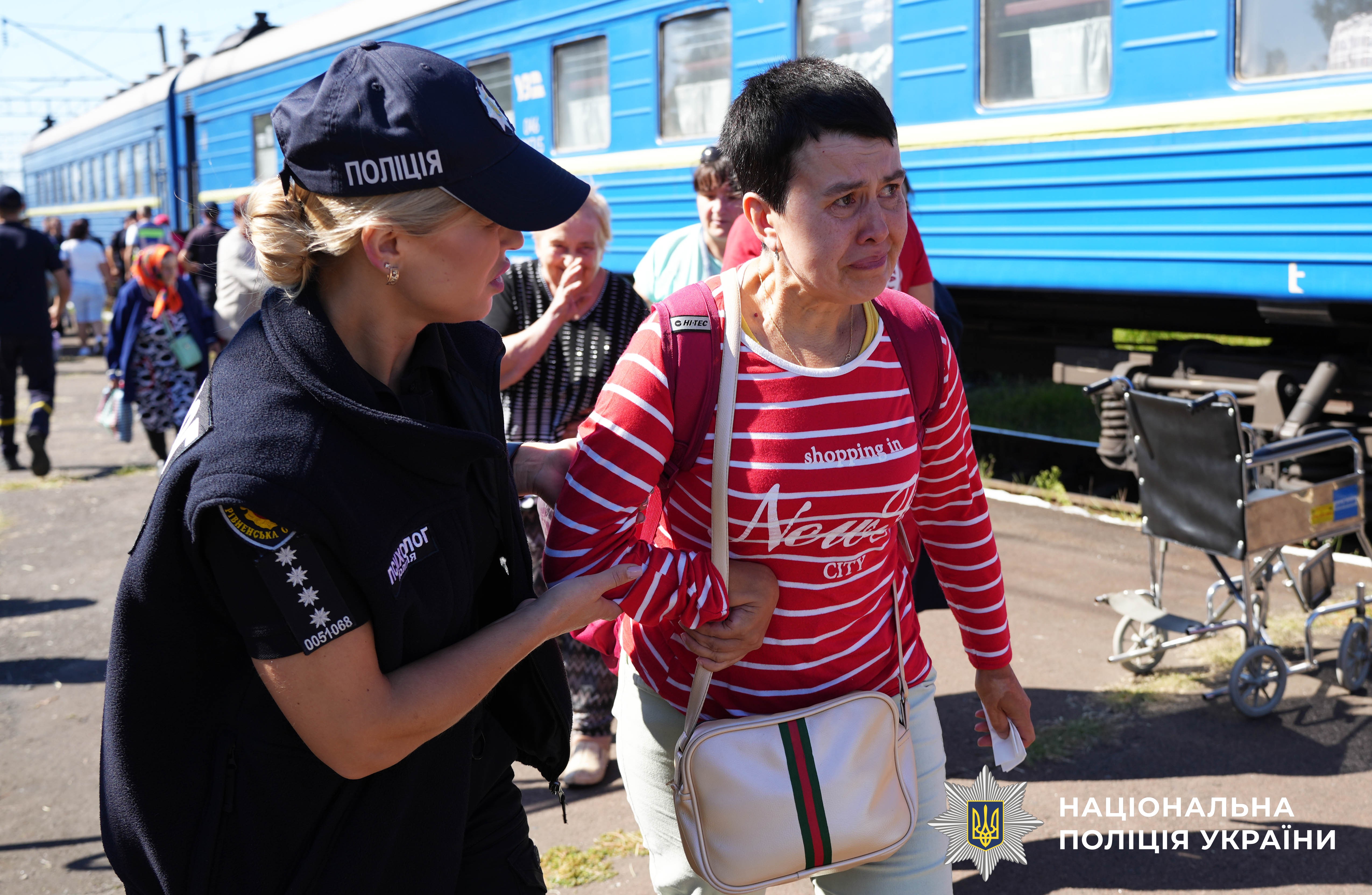 Волонтери, медики, представники громадських організацій, соцзахисту та влади, поліцейські та рятувальники: тут кожен чітко знає свою роботу. З вагонів виносять дітей, речі, допомагають літнім людям зійти та дістатися приміщення.