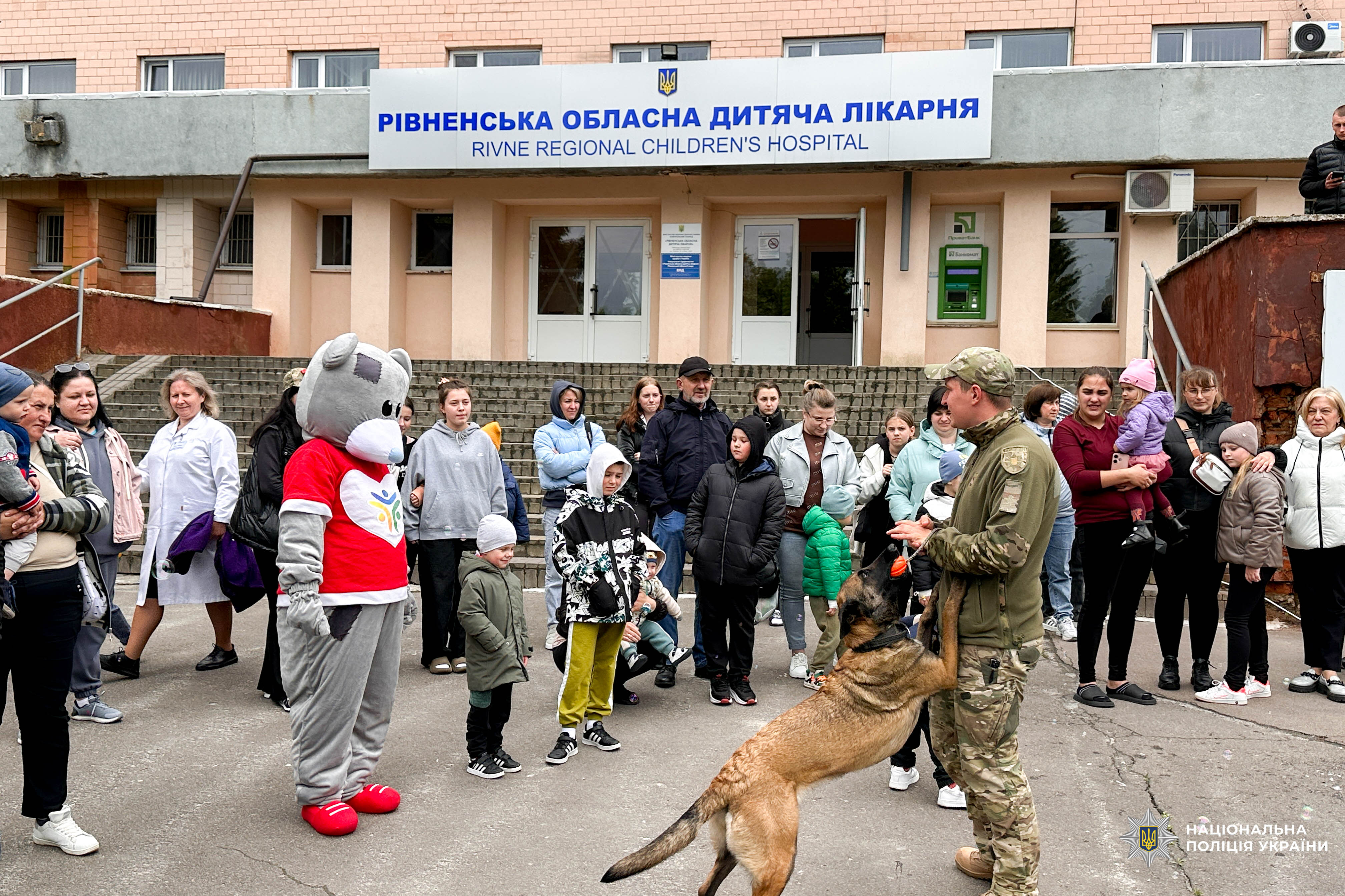 На їхні дитячі долі випало подвійне випробування: хвороба та війна. Тож аби додати трішки позитиву, до маленьких пацієнтів Рівненської обласної дитячої лікарні завітали ювенальні поліцейські та кінолог із чотирилапою напарницею Корою.