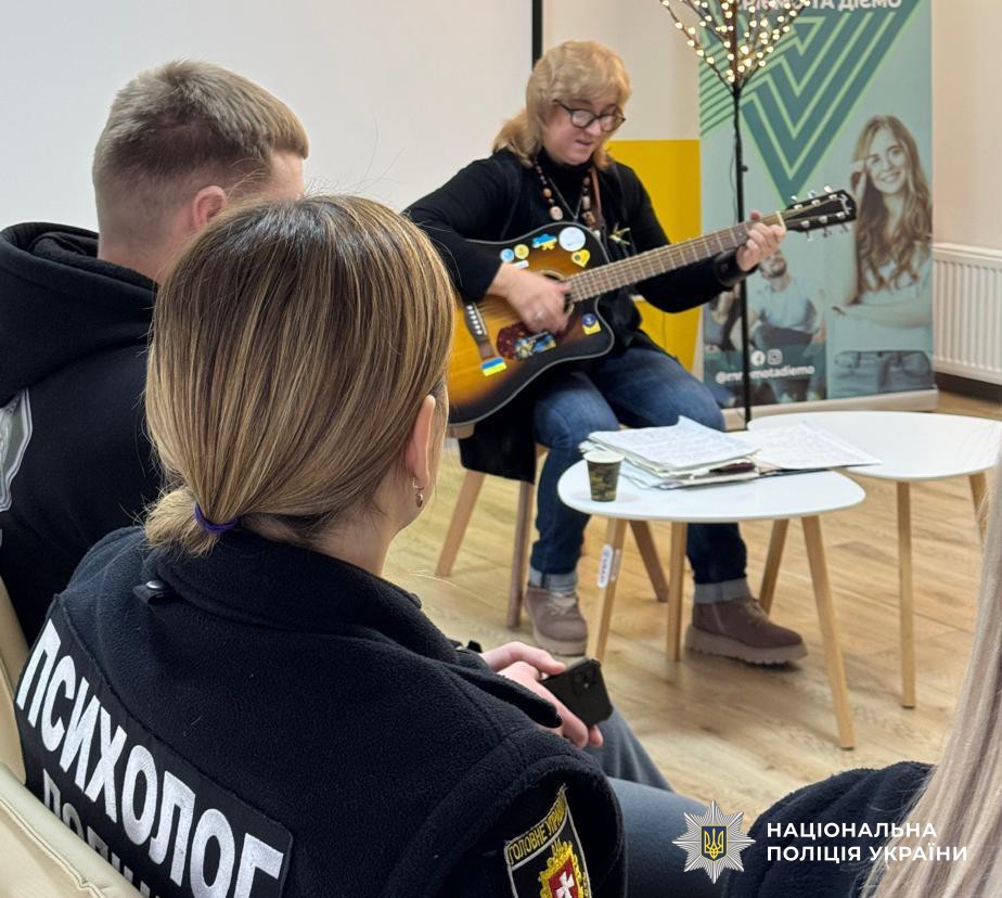 Творчий вечір організували фахівці служби психологічного забезпечення поліції спільно з психологами відомчої медустанови з метою підтримки та відновлення для тих, хто пережив важкі випробування на фронті.