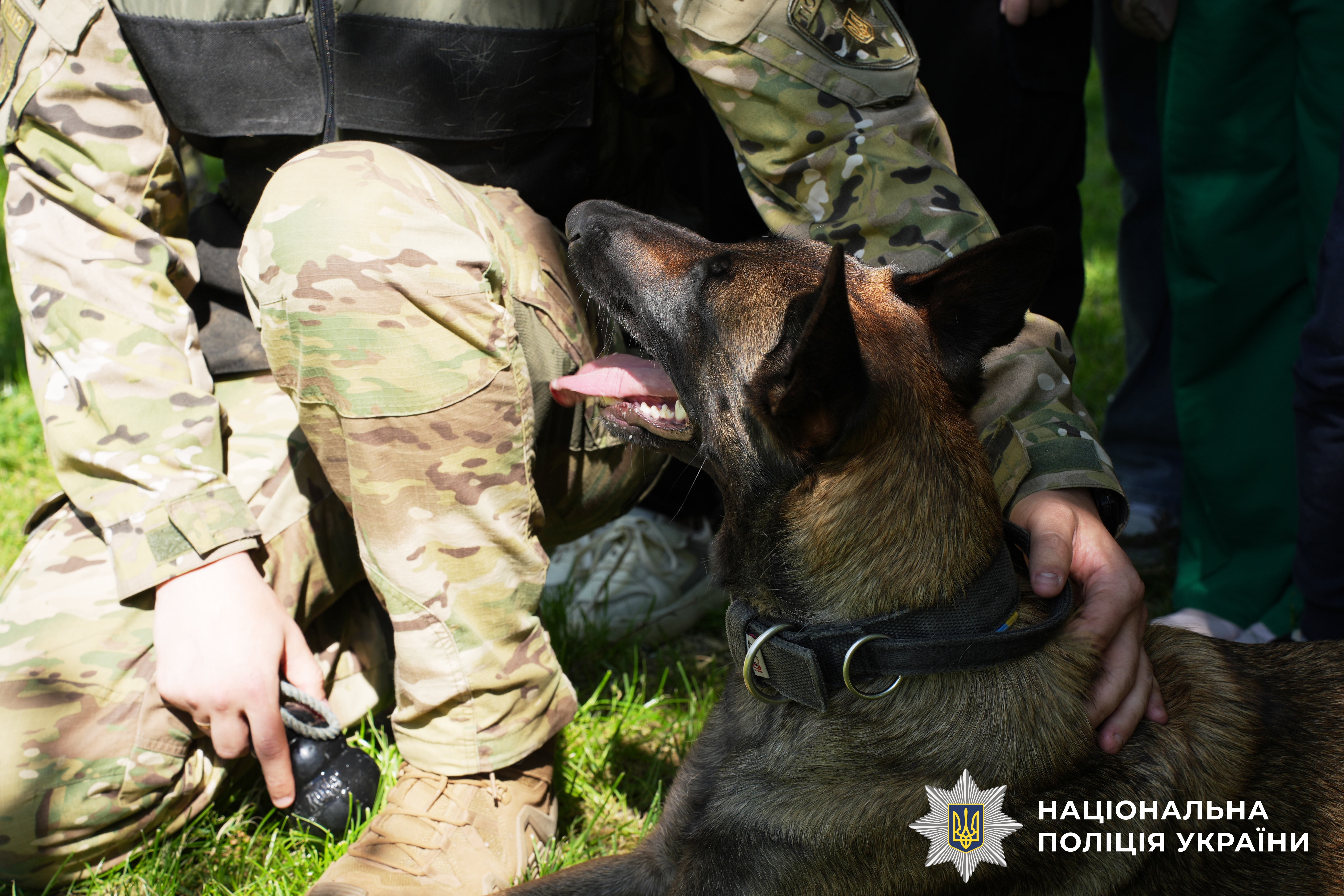 Особливо цікавим для діток стало показове заняття кінологів із службовими собаками. Найсміливіші навіть спробували з ними виконати декілька вправ.