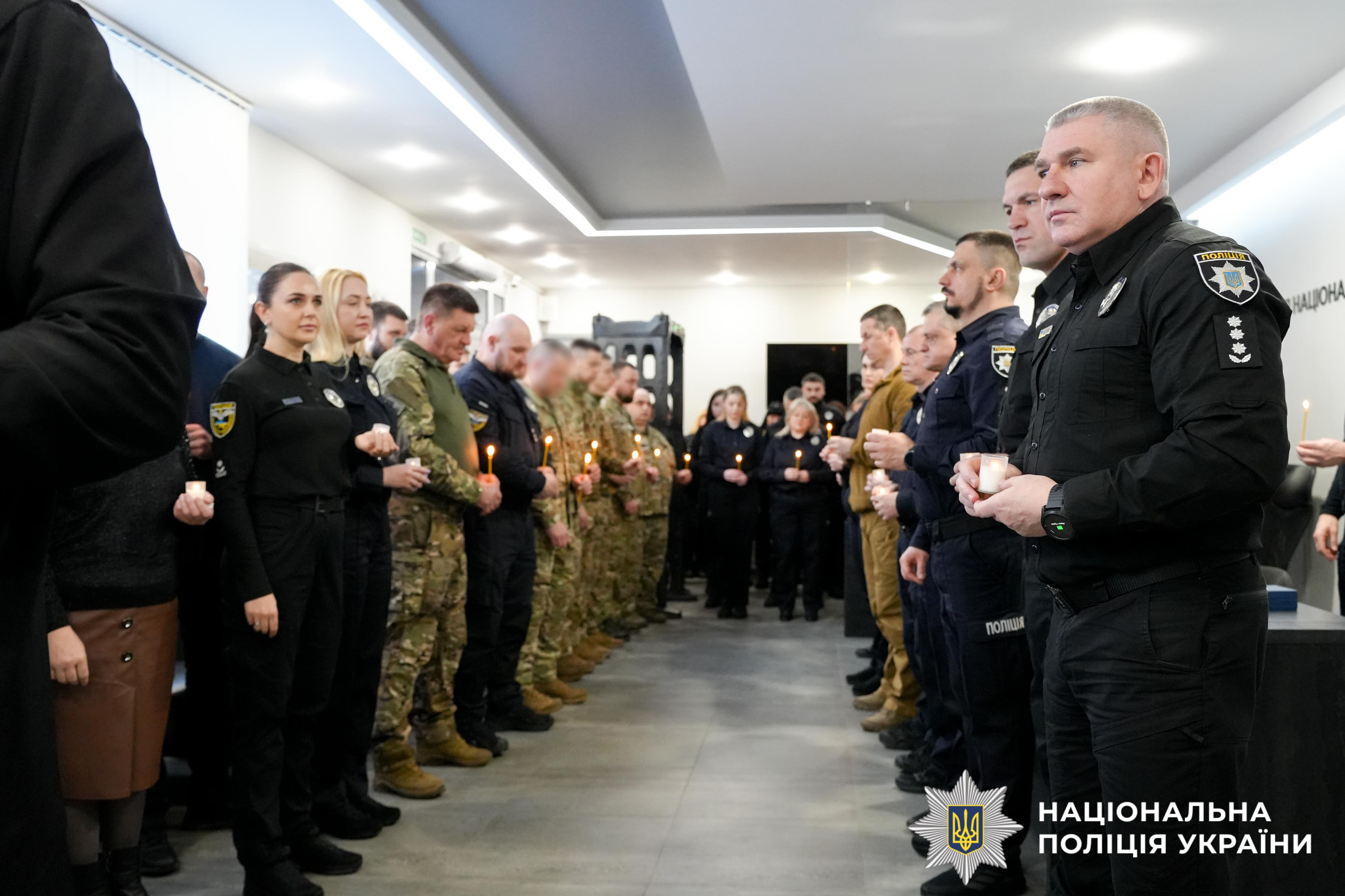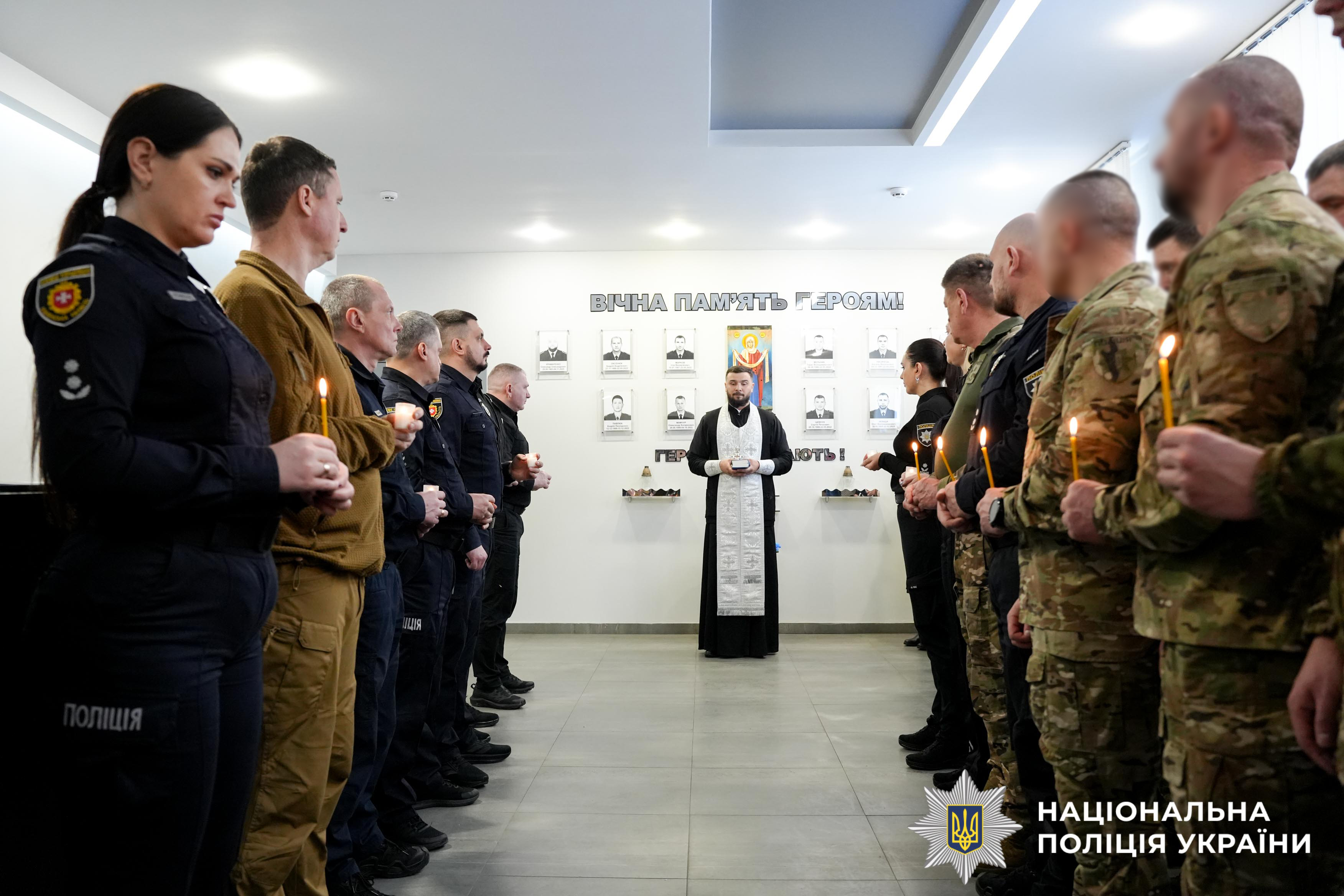 Сьогодні стіни фронт-офісу ГУНП, де зазвичай панує робочий шум, наповнилися тишею. Її пронизали звуки щирої молитви за упокій душ колег, тріскоту свічок у руках та сліз… Кожен з присутніх згадував сина, чоловіка, татуся, побратима…