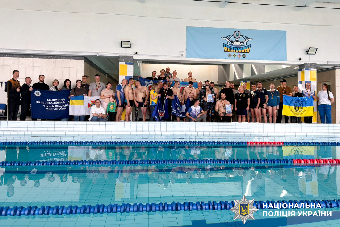 «МВС Незламні»: поліцейські-ветерани Рівненщини долучилися до спортивного заходу із плавання
