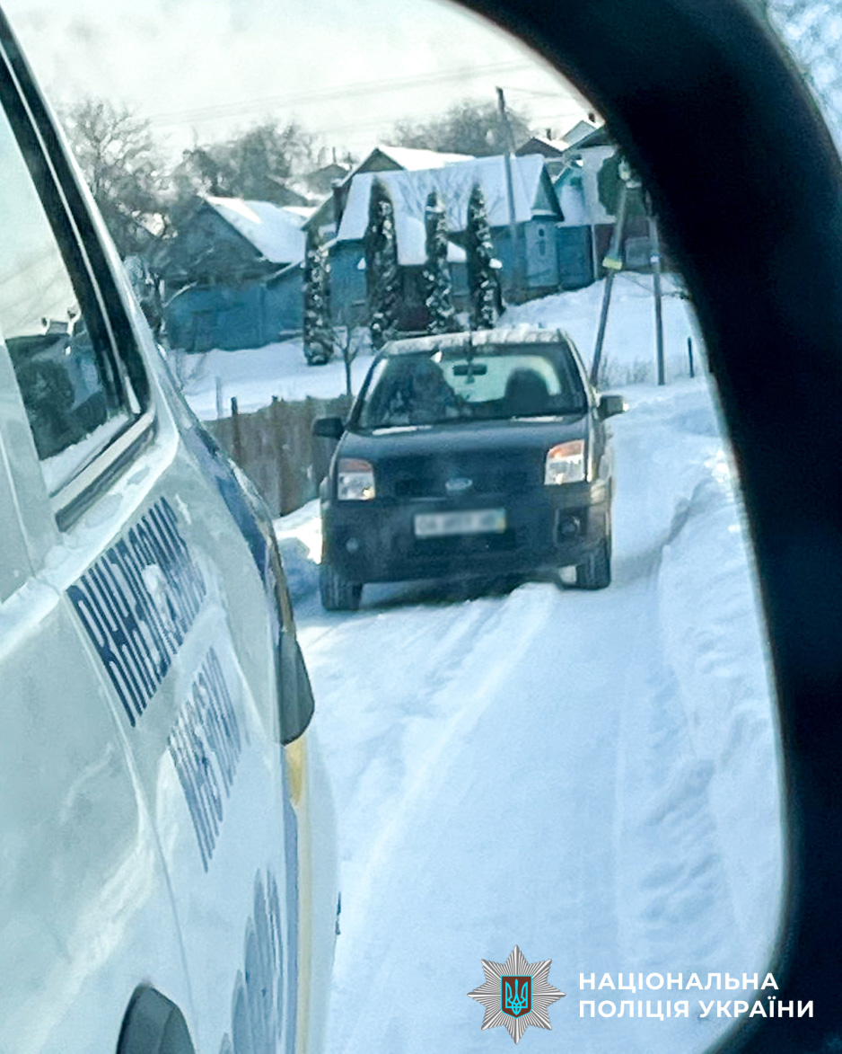 Правоохоронці визволили автівку з снігової пастки та супроводили водійку за місто. Громадянка сердечно подякувала поліцейським за допомогу.