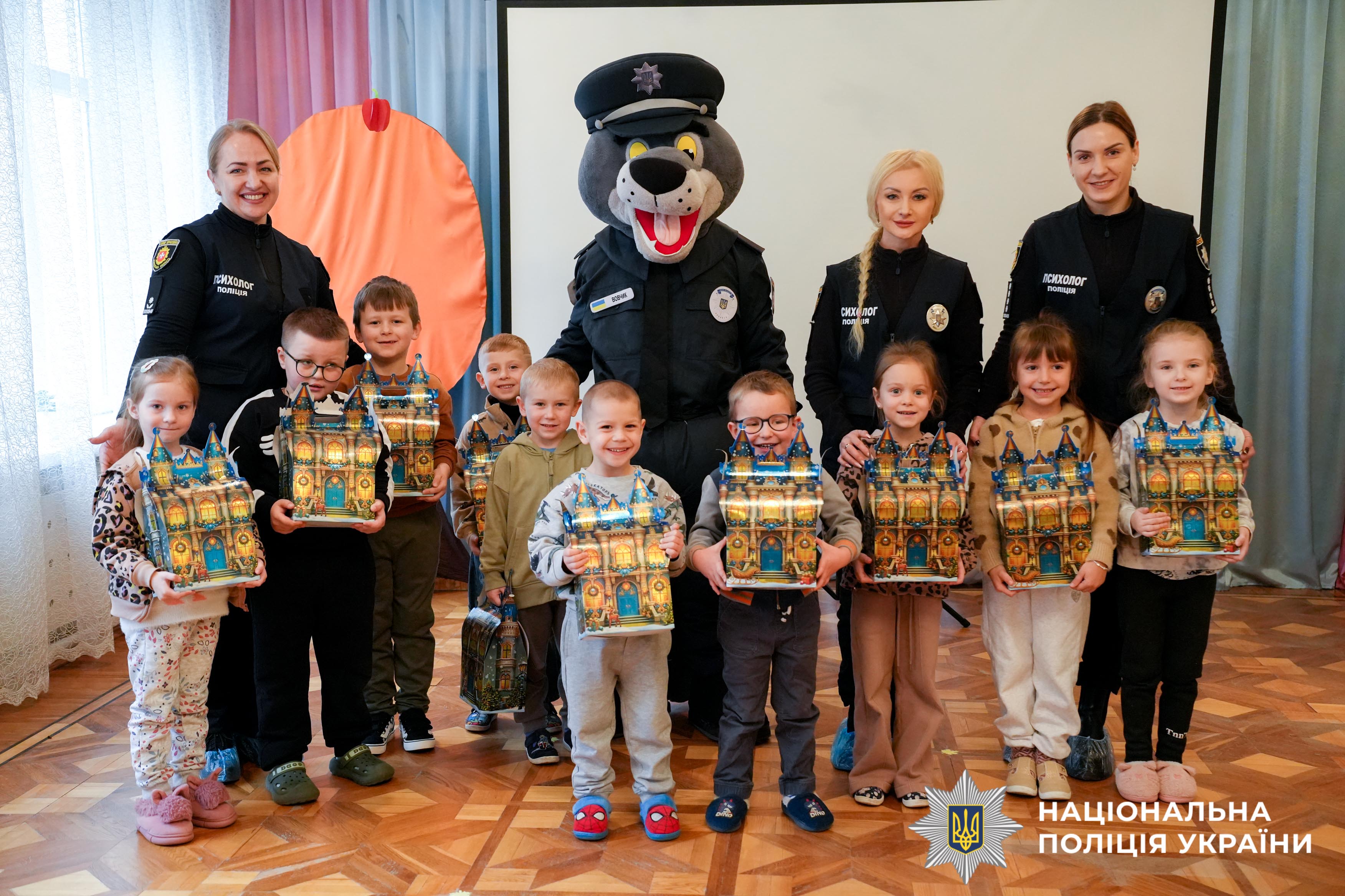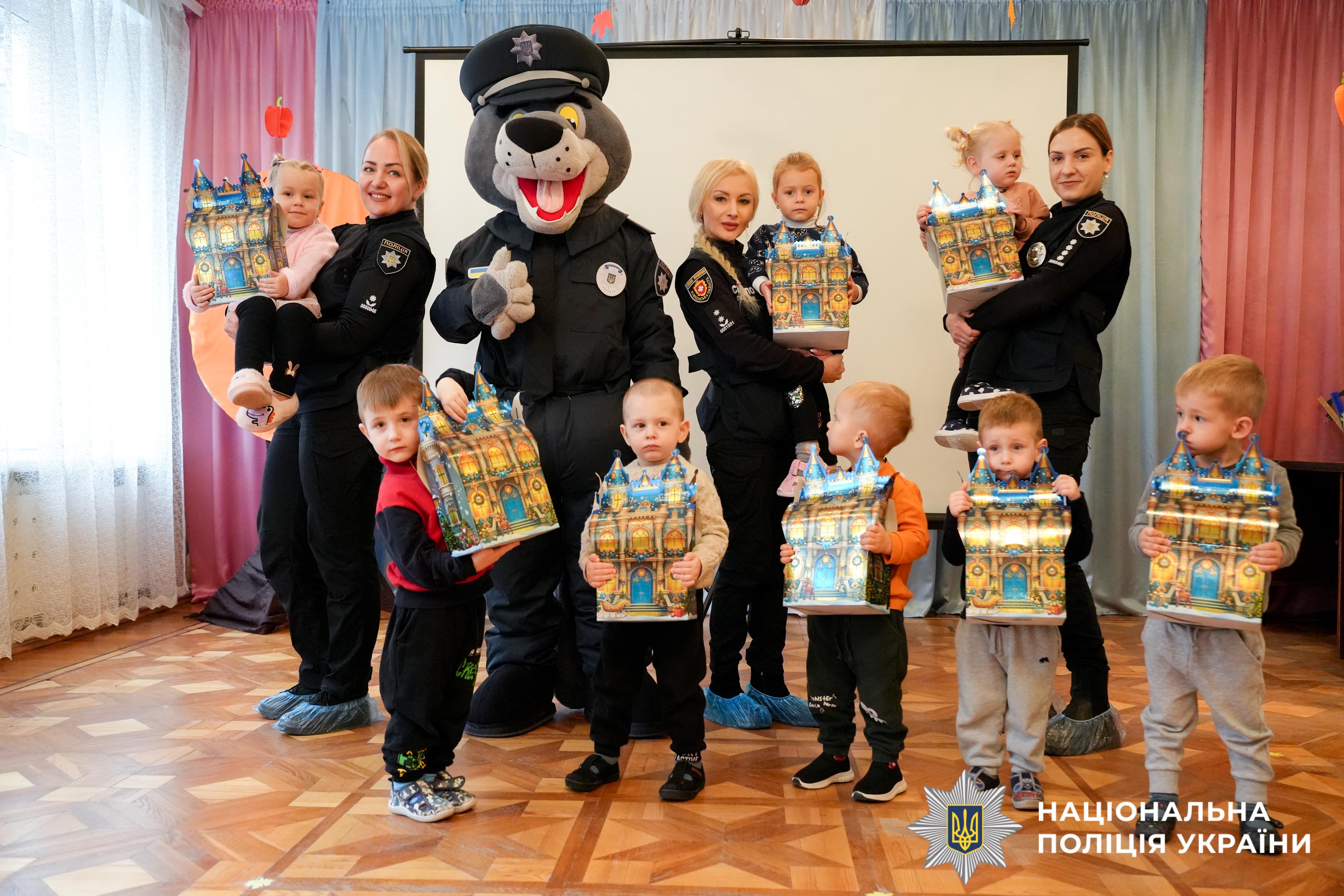 Правоохоронці, як і належить помічникам Святого Миколая, привезли діткам смачні гостинці.