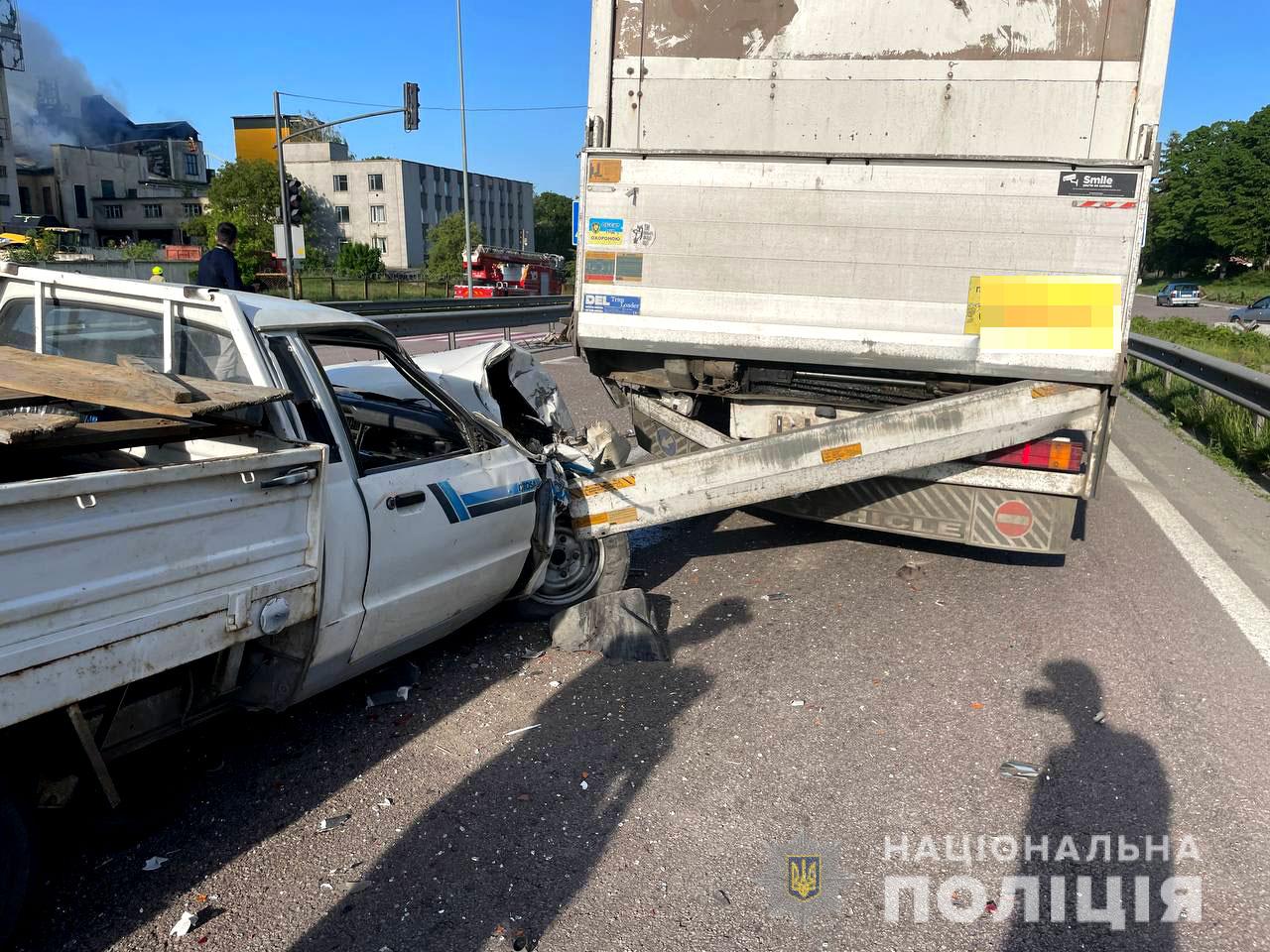 Попередньо встановлено, що відбулося зіткнення трьох транспортних засобів, серед яких і вантажівка.