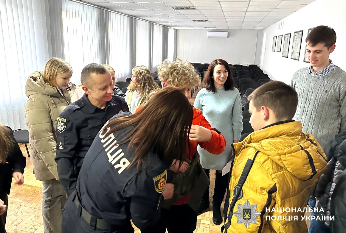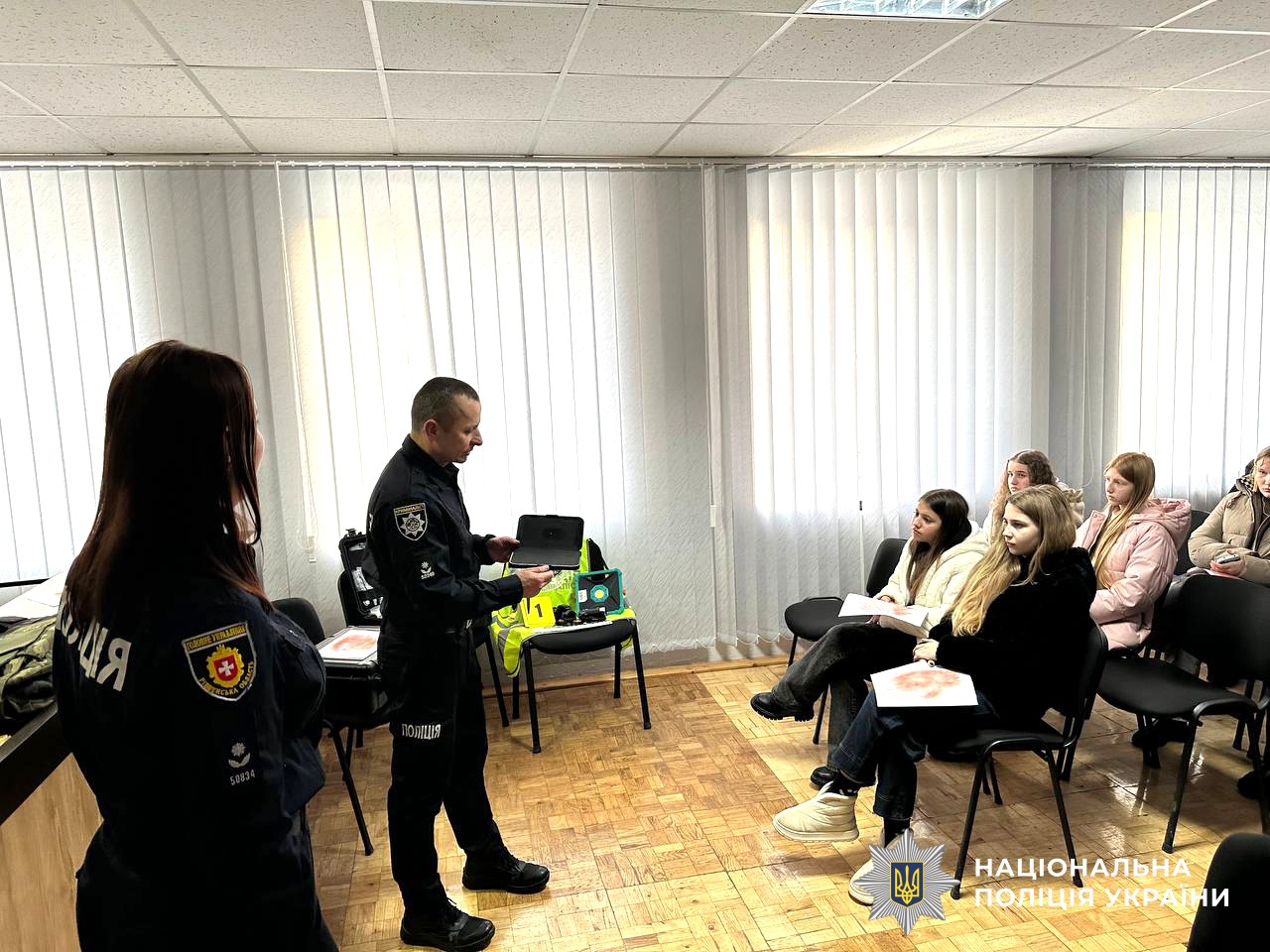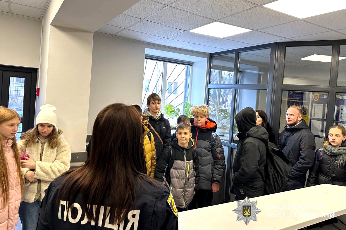 Пізнавальну зустріч розпочали з чергової частини, оснащеної новітньою системою відеоспостереження, де розповіли учням про особливості роботи поліцейських підрозділів.