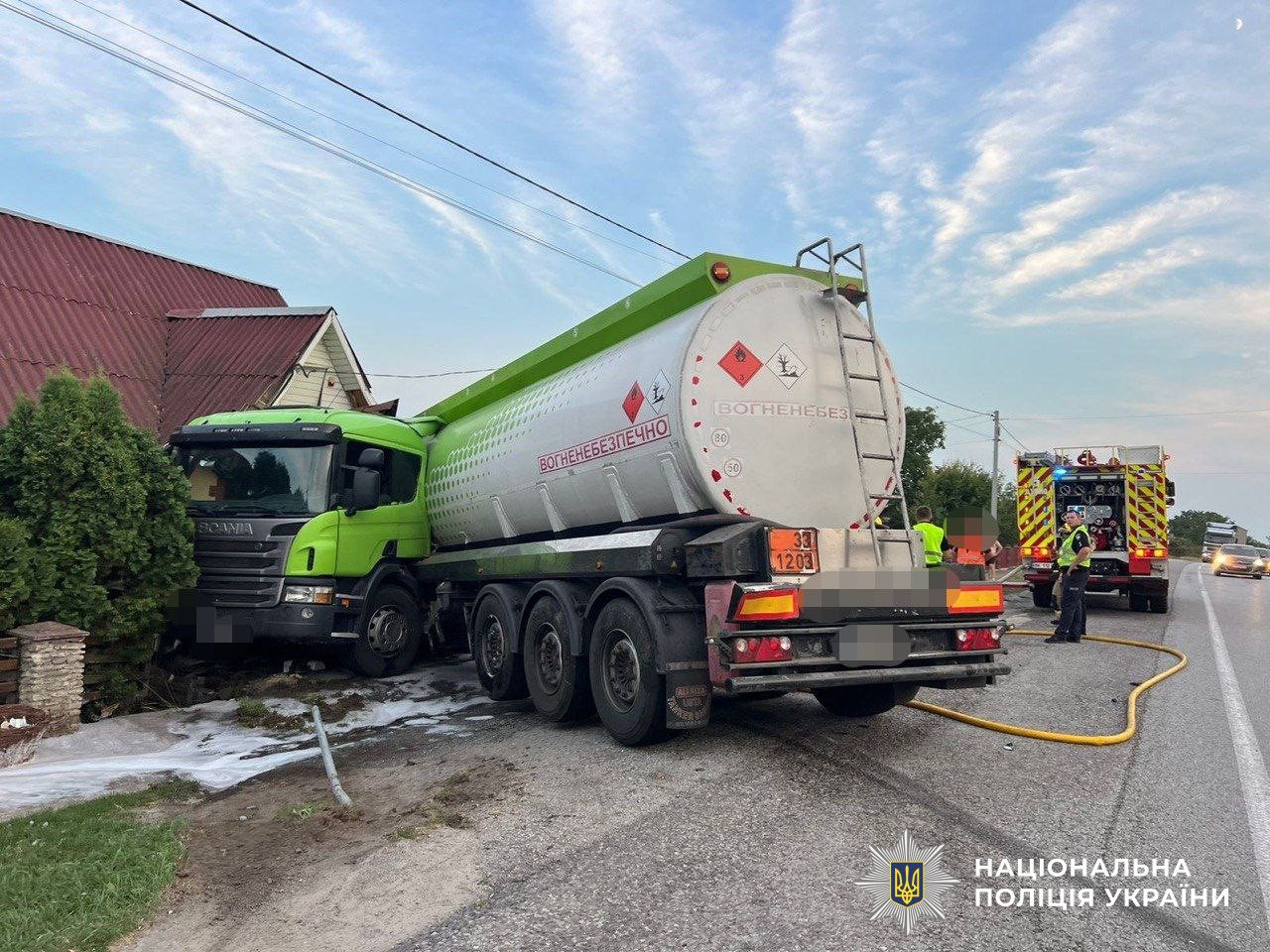 Поліцейські попередньо встановили, що водій автомобіля «Volkswagen Jetta», 51-річний житель Львова із невстановлених поки причин виїхав на смугу зустрічного руху, де допустив зіткнення із автоцистерною «Scania» під керуванням 41-річного жителя Харкова. Від удару вантажівка вʼїхала у приміщення магазину.