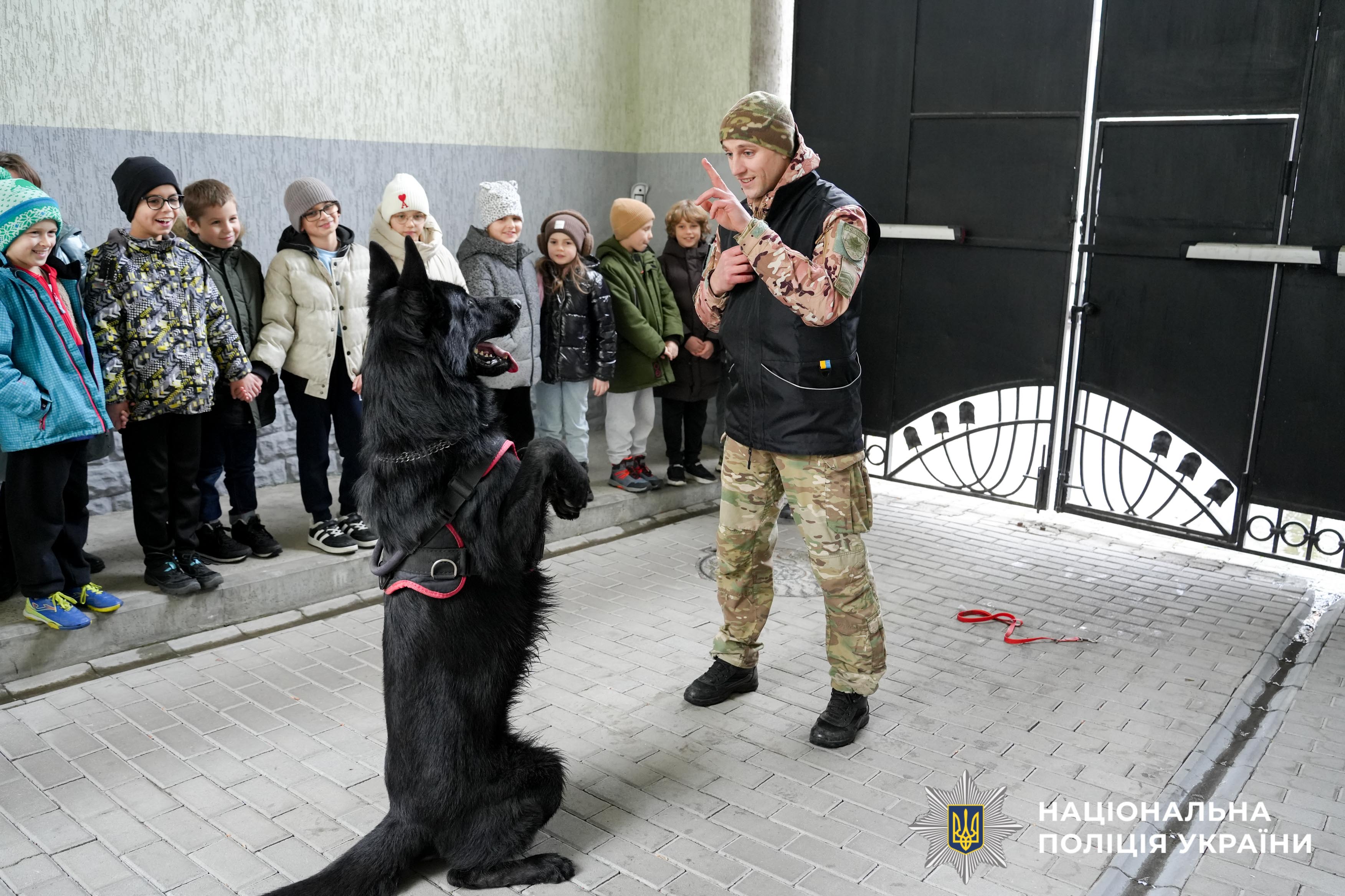 Справжнім сюрпризом для ліцеїстів стала зустріч із кінологом та його чотирилапим напарником Хьорстом.Службовий собака продемонстрував високий рівень підготовки та чіткість виконання команд, викликавши в учнів неабияке захоплення та бурхливі позитивні емоції.