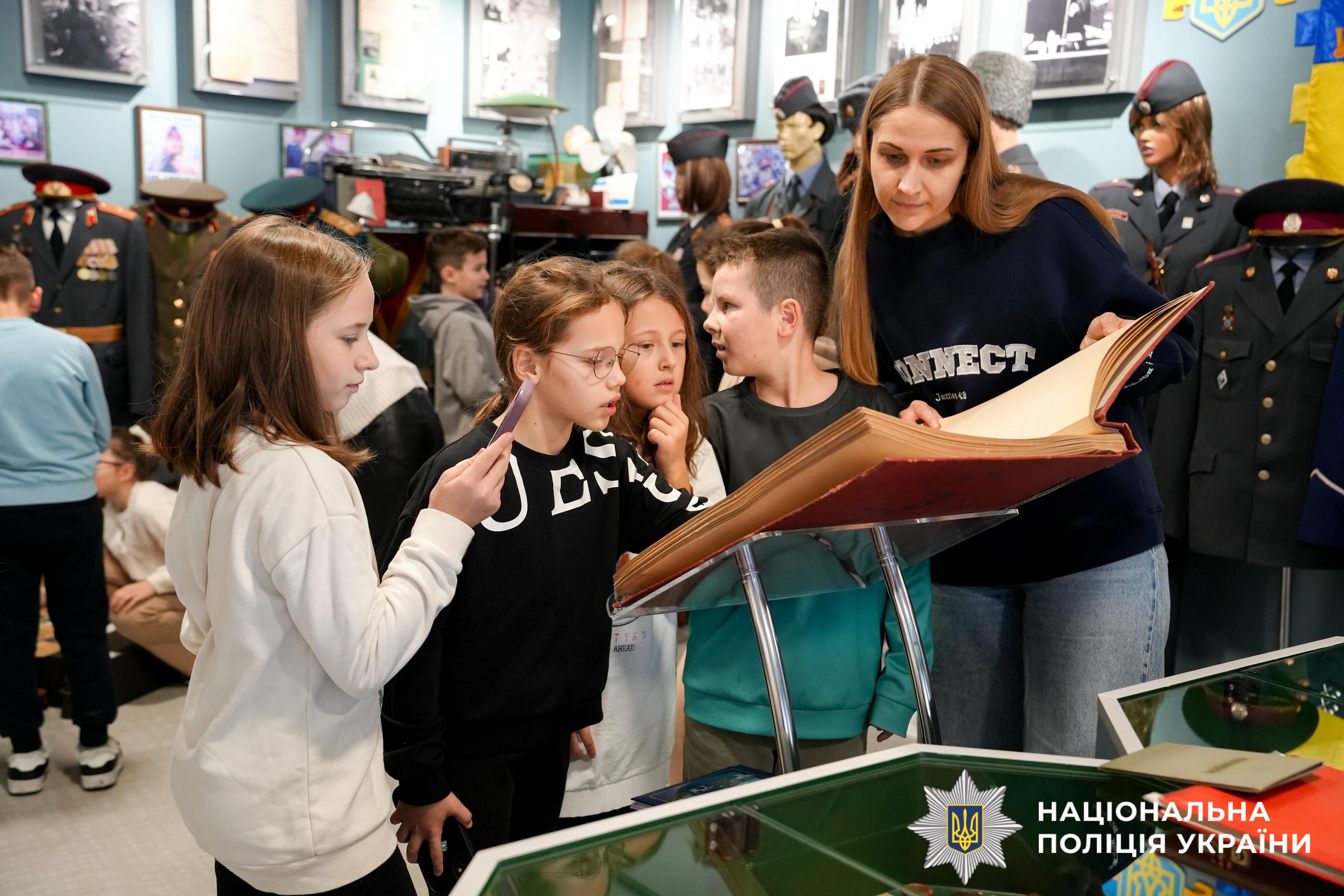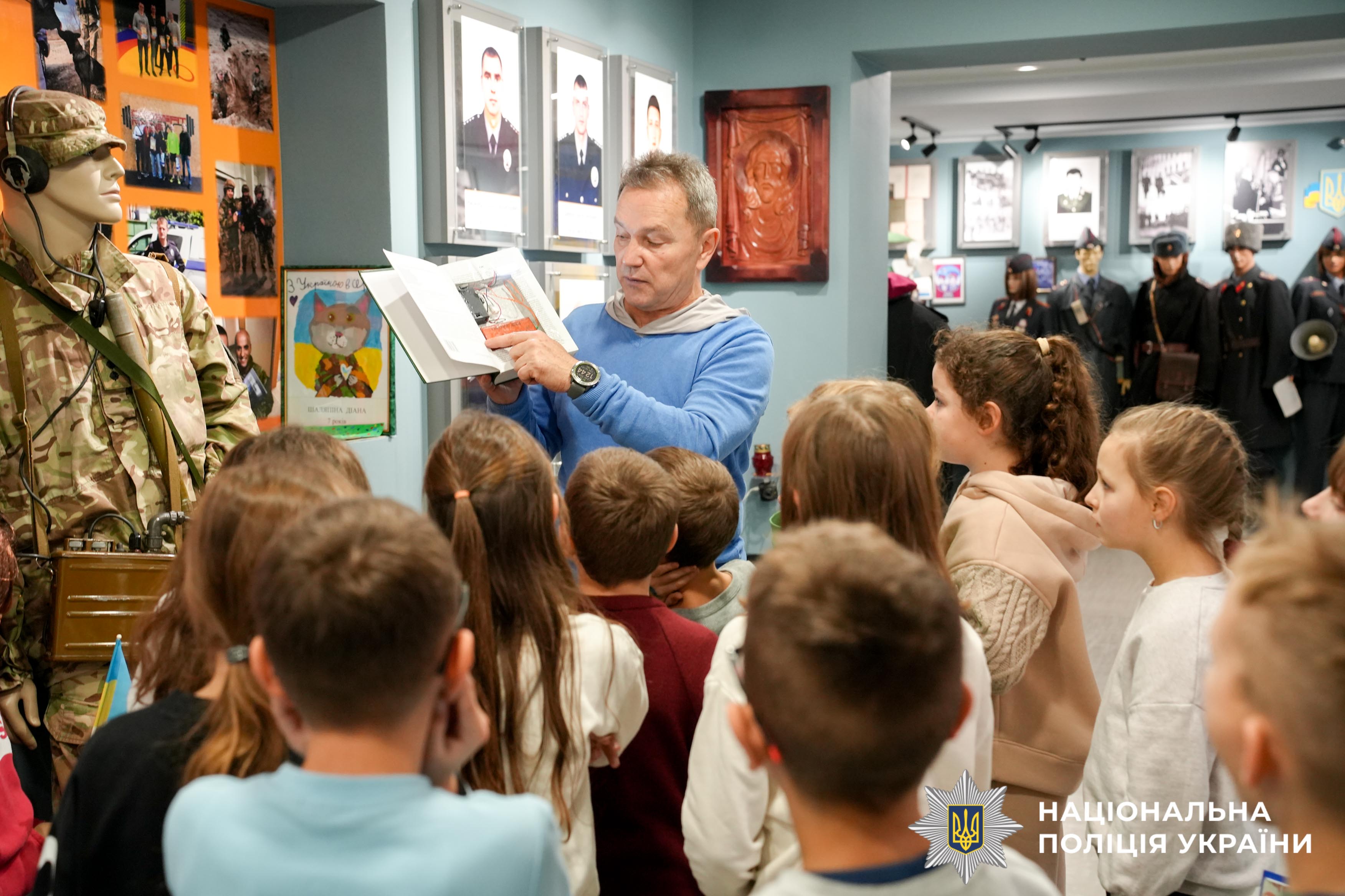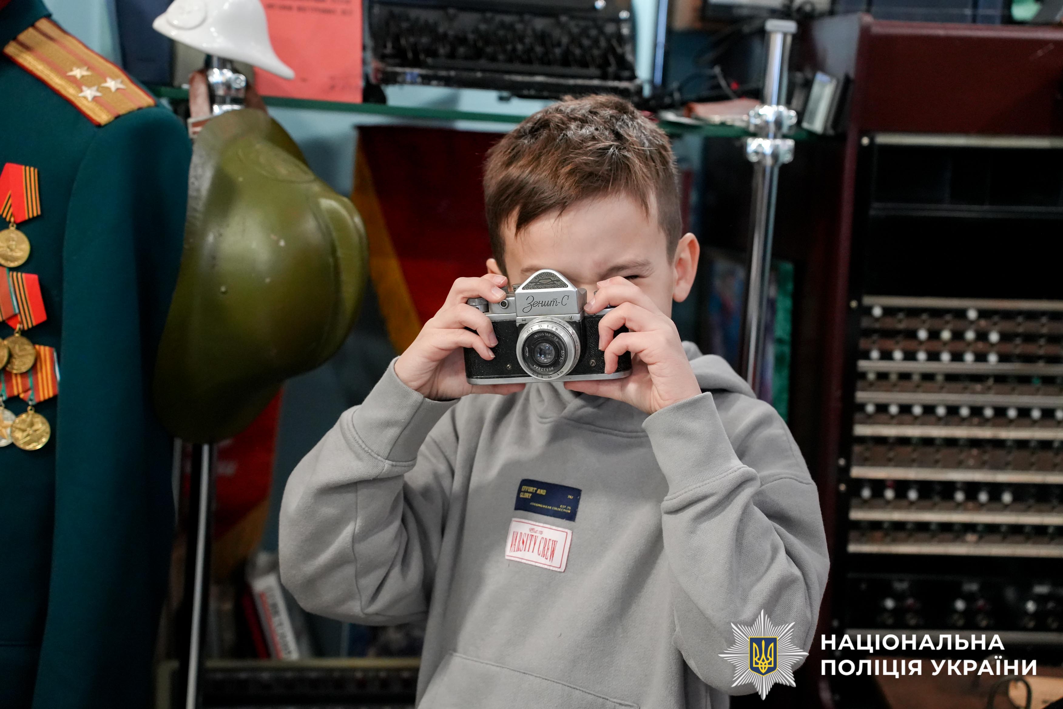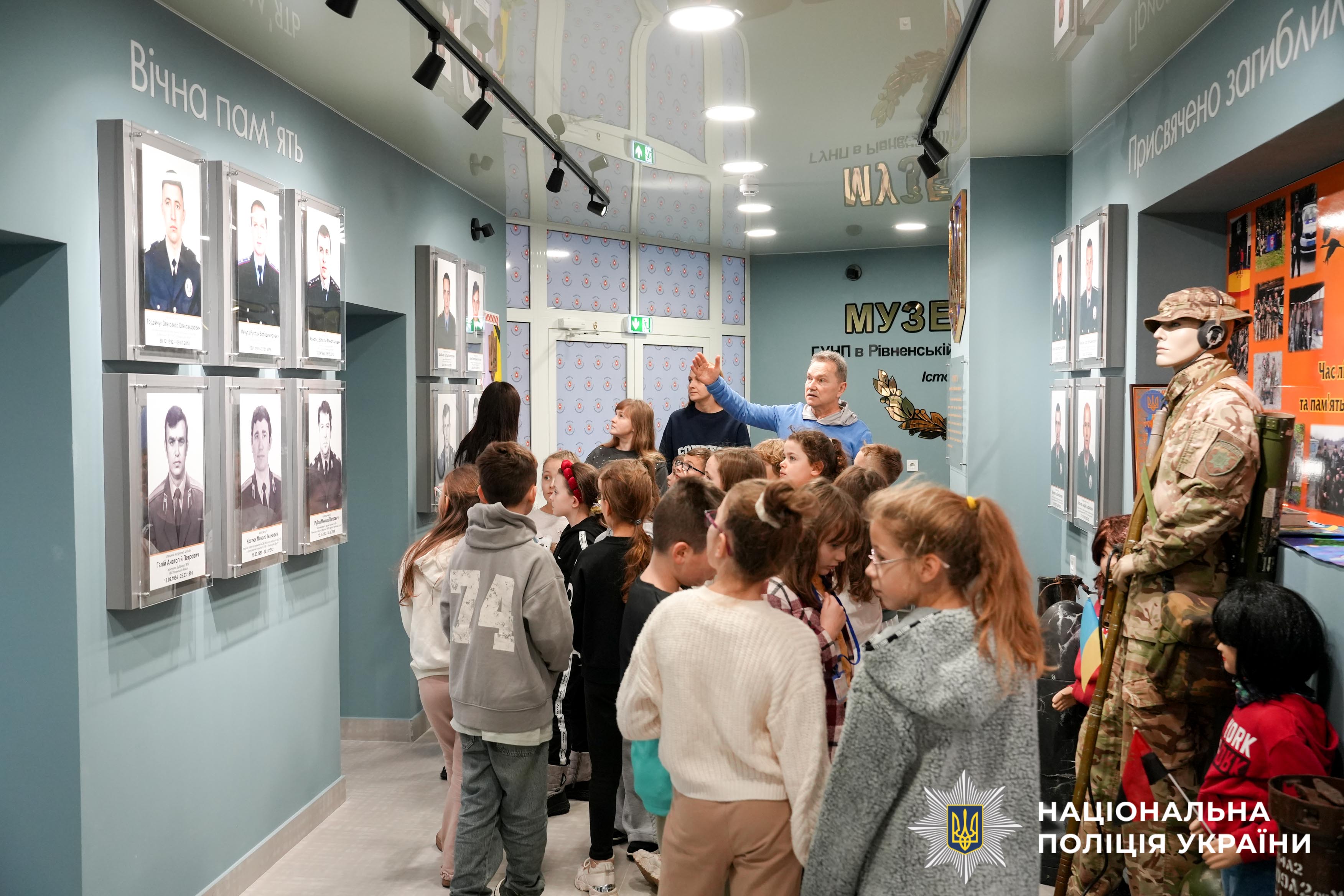 Під час екскурсії до відомчого музею поліції Рівненщини діти ознайомилися зі специфікою роботи правоохоронних органів у різні часи. Найбільший інтерес викликали раритетні експонати — техніка, яку використовували працівники органів внутрішніх справ минулих поколінь. Крім того, малеча із цікавістю розглядала сучасне озброєння, що використовується як окупантами, так і українськими бійцями під час війни.