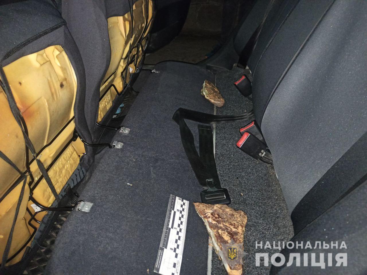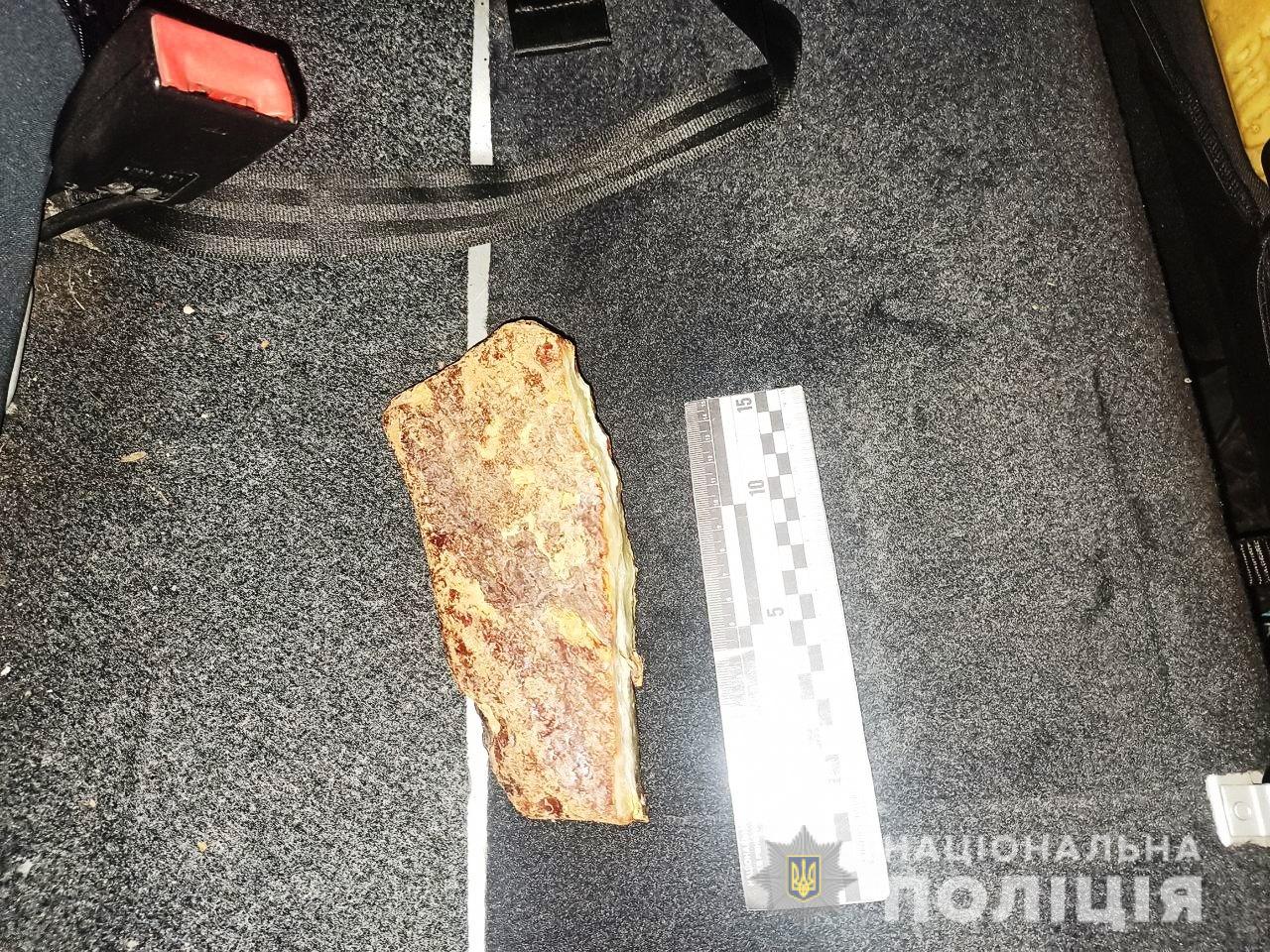 Під час спілкування його водій, 40-річний киянин, помітно нервував. За результатами огляду транспортного засобу під заднім сидінням поліцейські виявили бурштин-сирець.