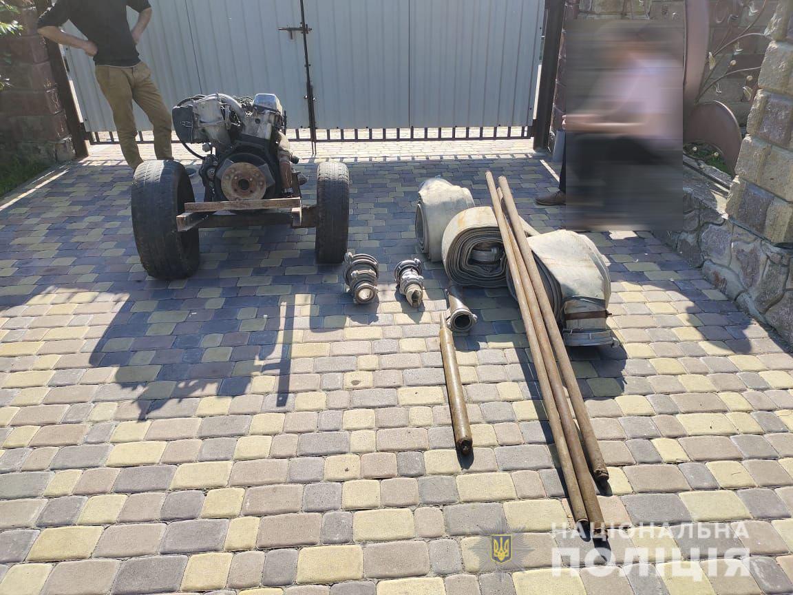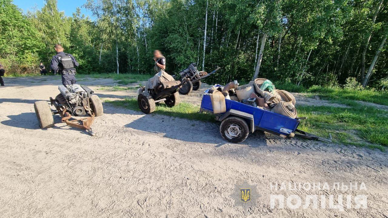 На Рівненщині поліцейські вилучили 10 мотопомп, квадроцикл та обладнання для незаконного видобутку бурштину