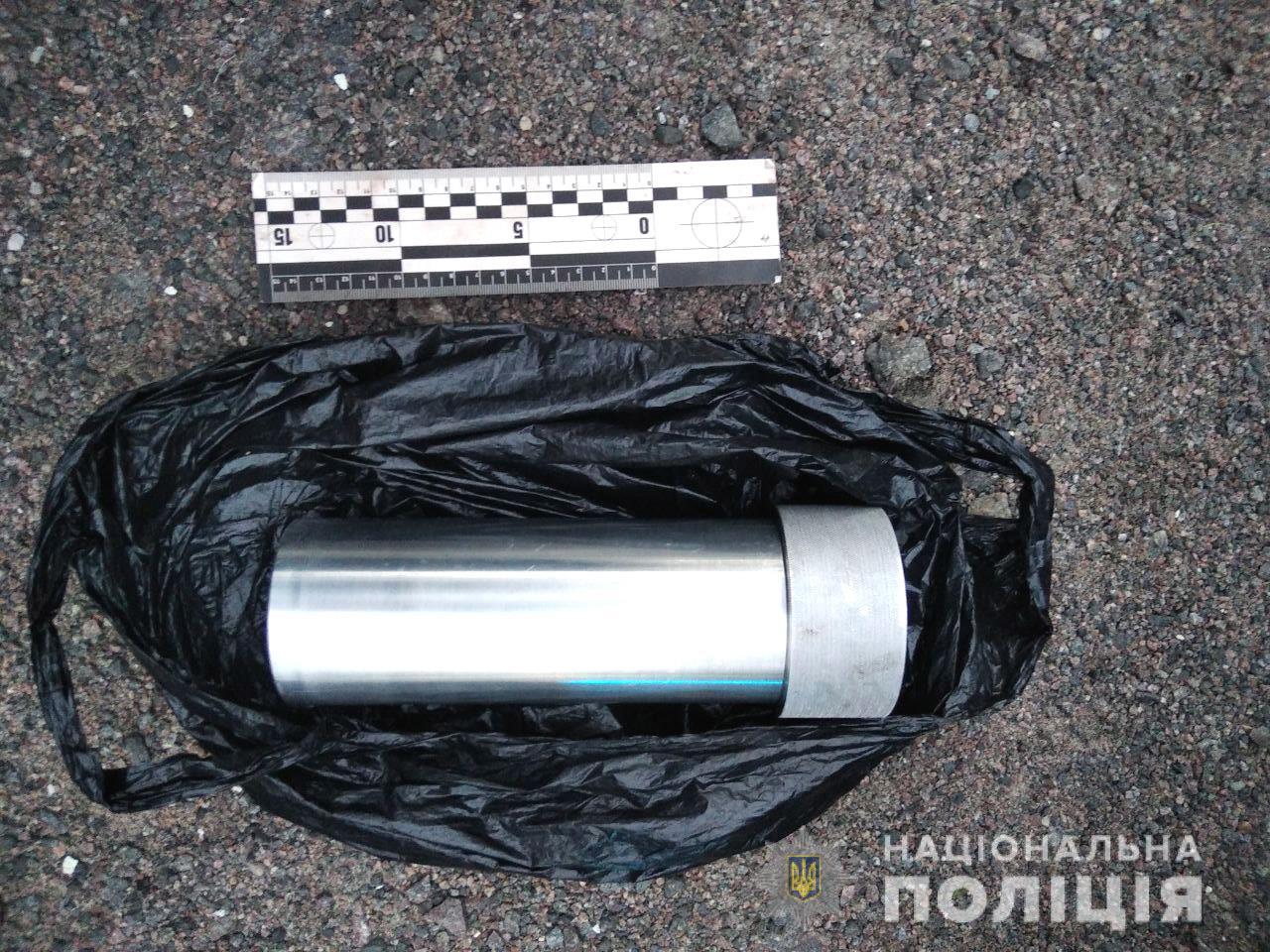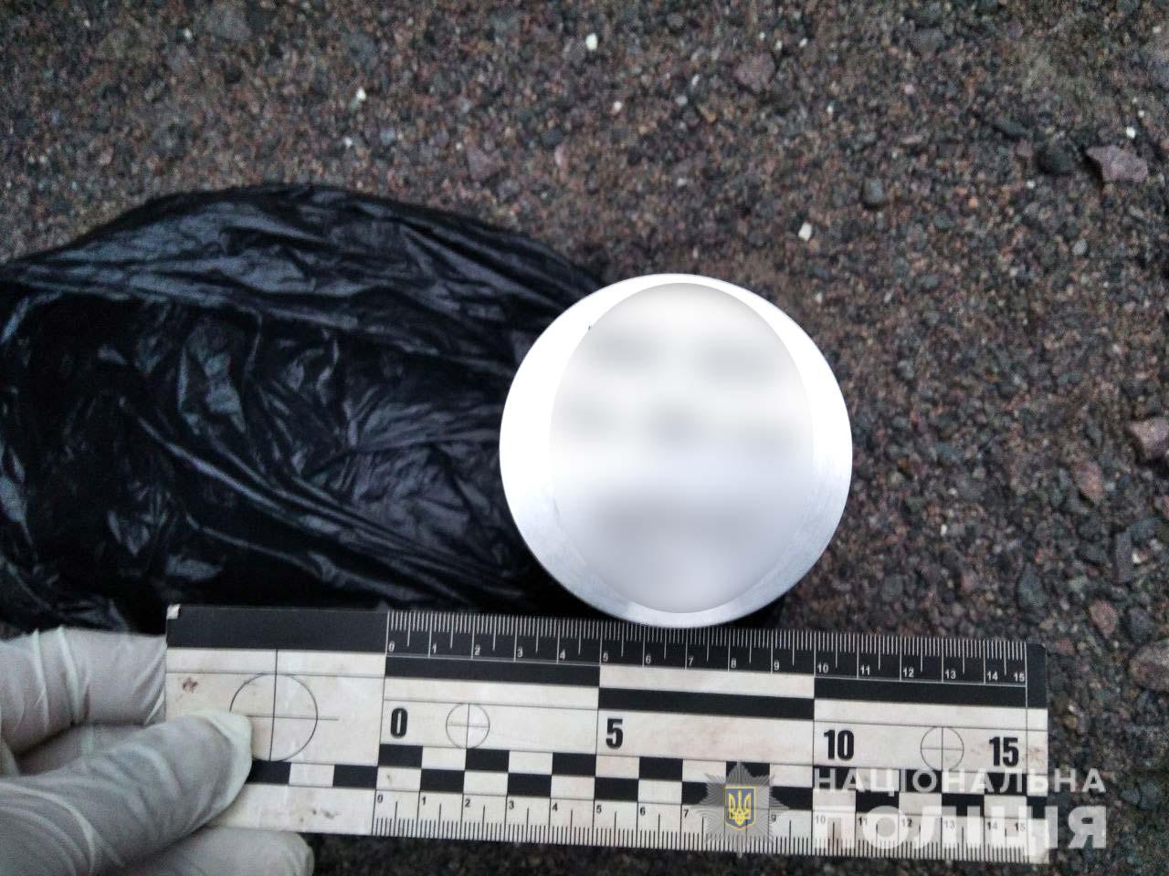 Під час проведення огляду поліцейські виявили у наплічнику металеву колбу з відповідним маркуванням із невідомою речовиною, схожою на ртуть, вагою близько кілограма.