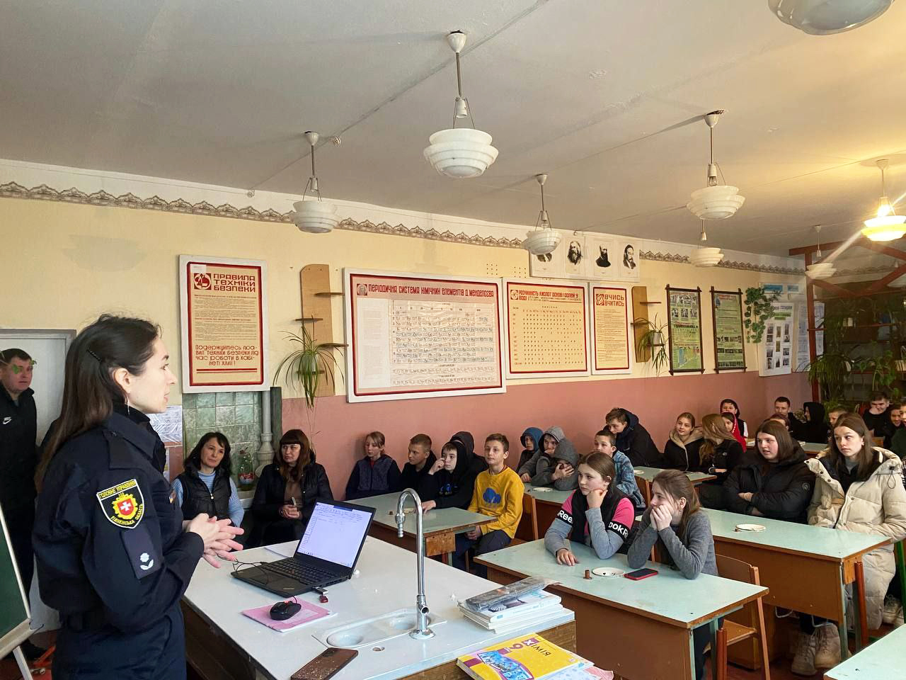 Так, ювенальна поліцейська спільно із спеціалістом безпеки в освітньому середовищі провели учням Малятинського ліцею колишнього Гощанського району безпековий захід. Учням розповіли про правила поведінки в окремих ситуаціях, зокрема при виявленні вибухонебезпечних предметів.