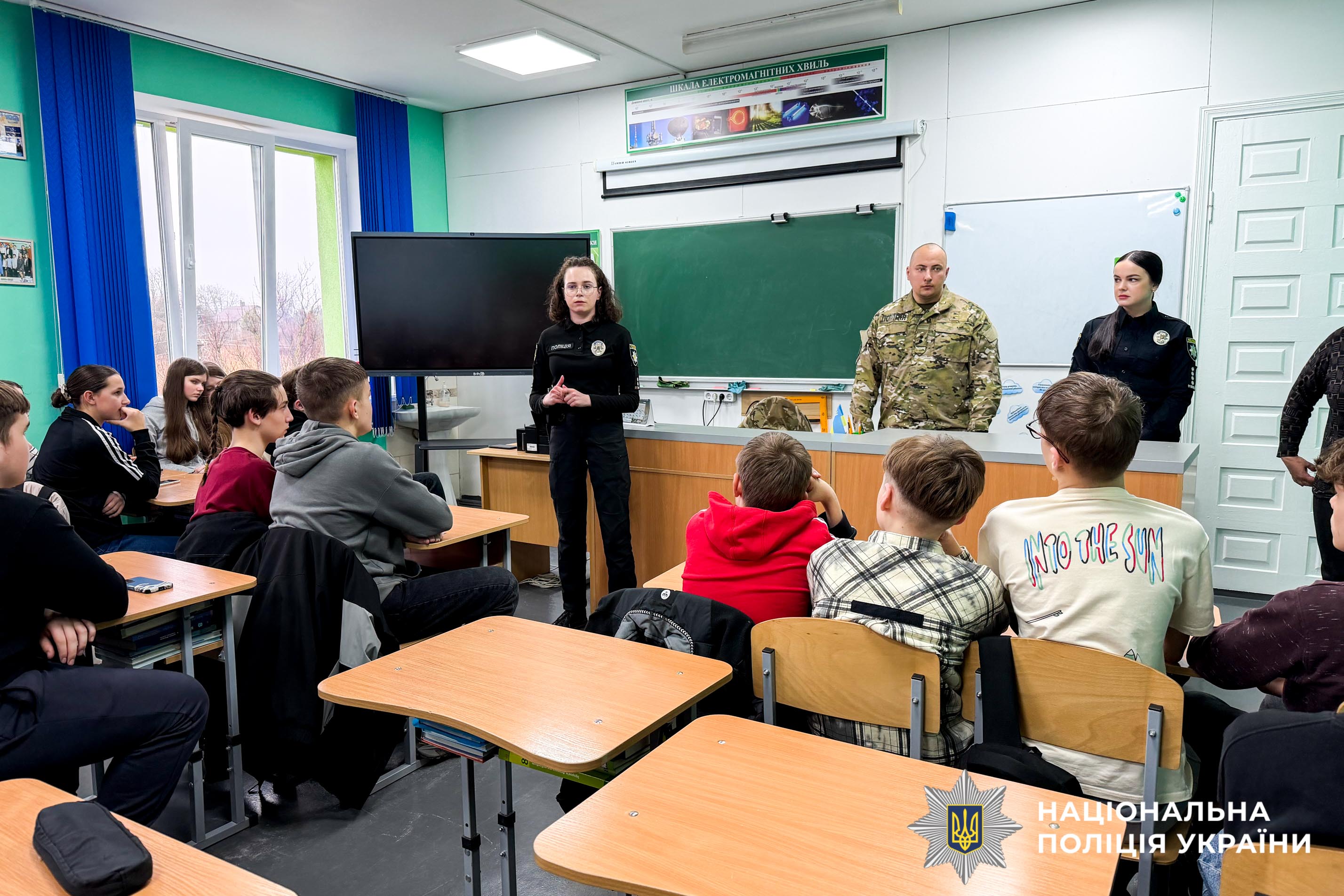 На Рівненщині офіцери служби освітньої безпеки та боєць стрілецького батальйону провели тематичний урок для ліцеїстів