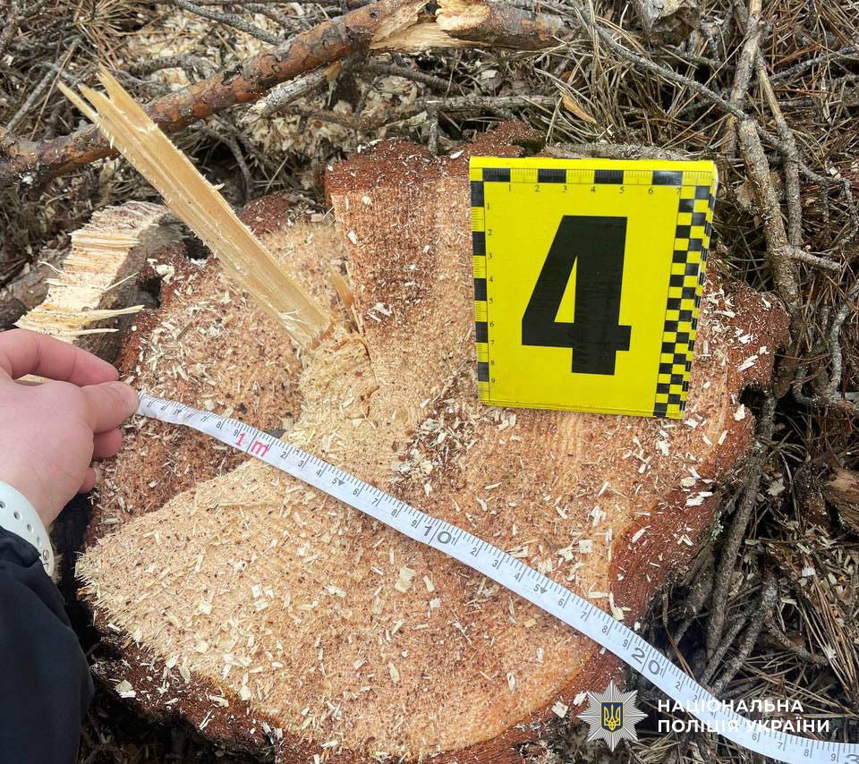 Так, учора, 22 березня, близько 15:30 поліцейські офіцери Полицької та Антонівської громад у лісовому масиві поблизу села Зелениця виявив 42-річного місцевого жителя, який бензопилою зрізав п’ять дерев породи сосна.
