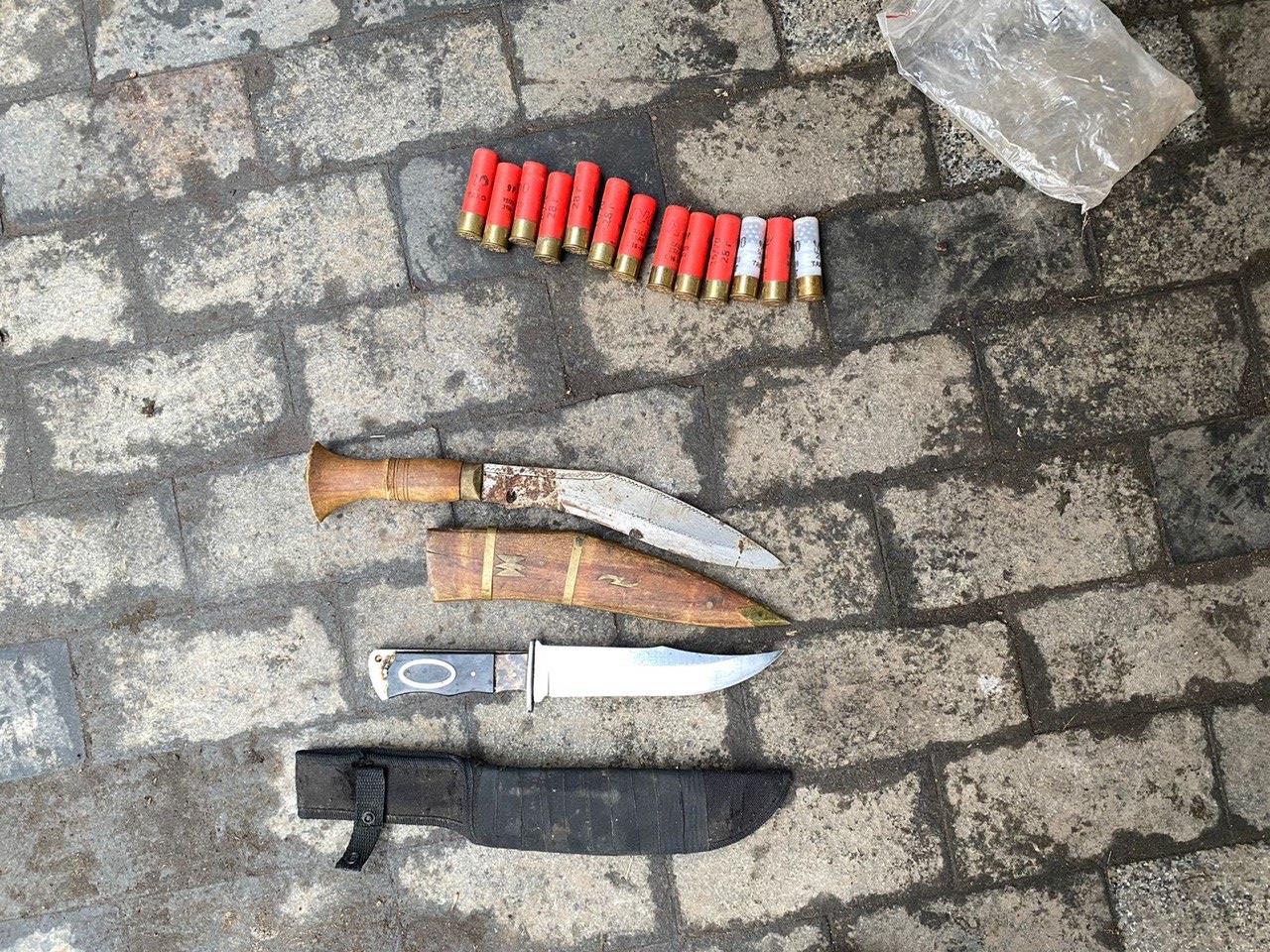 За результатами проведених слідчих дій поліцейські виявили та вилучили каміння бурштину різної фракції загальною вагою майже 10 кг, пістолет, незареєстровану у встановленому законодавством порядку гладкоствольну рушницю, 26 набоїв і два мисливські ножі.