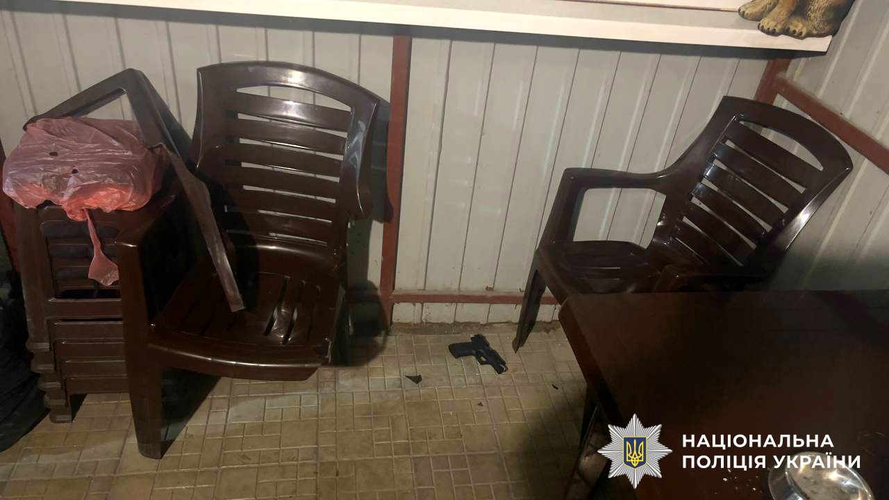 Для з’ясування обставин на місце події негайно прибула група швидкого реагування роти поліції особливого призначення. Коли поліцейські підійшли до компанії із трьох чоловіків, які перебували на території літнього майданчика місцевого кафе, один із них — 39-річний місцевий житель, здійснив постріл у бік правоохоронця РПОП. На щастя, ніхто тілесних ушкоджень не отримав.