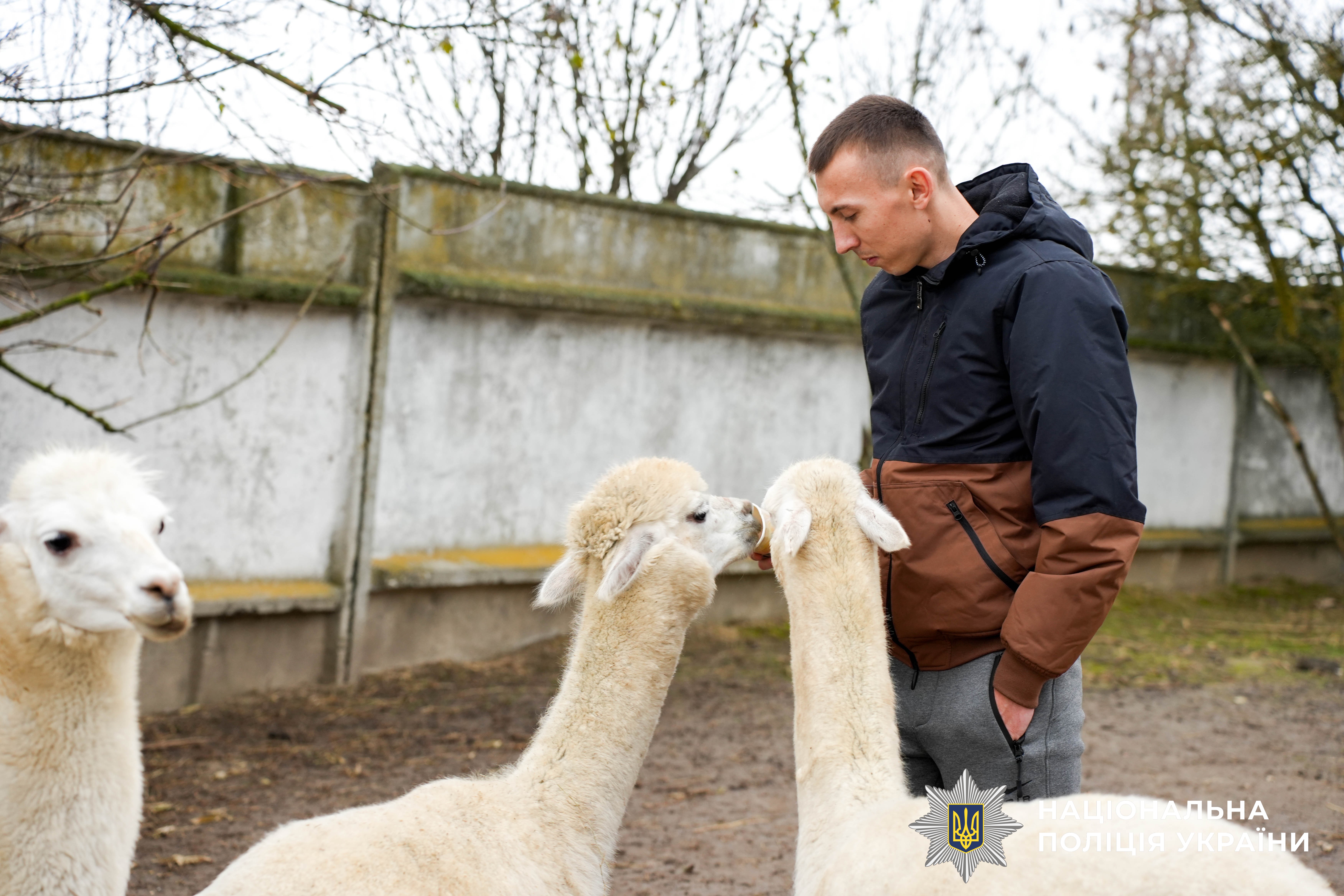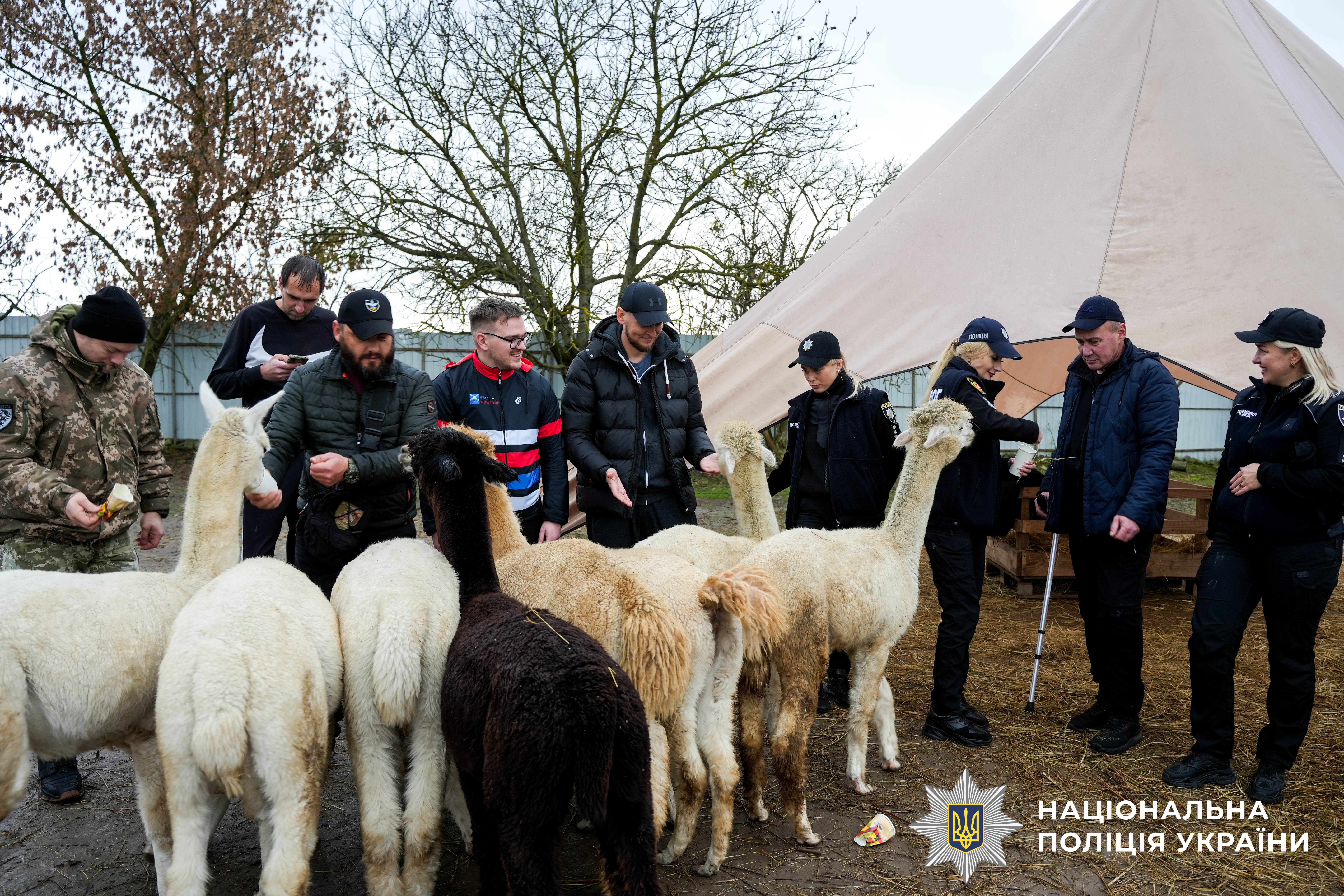 Тож, сеанс «терапії» не просто перенесли на свіже повітря, а у контактний зоопарк, де вирощують альпак. Ці чудові створіння зовсім не проявляють агресії та люблять контактувати з людьми, тож кожен присутній міг їх підгодувати та погладити. Не зіпсувала зустрічі і осіння погода: дощ зібрав усіх під одним шатром і дав можливість для теплого спілкування.