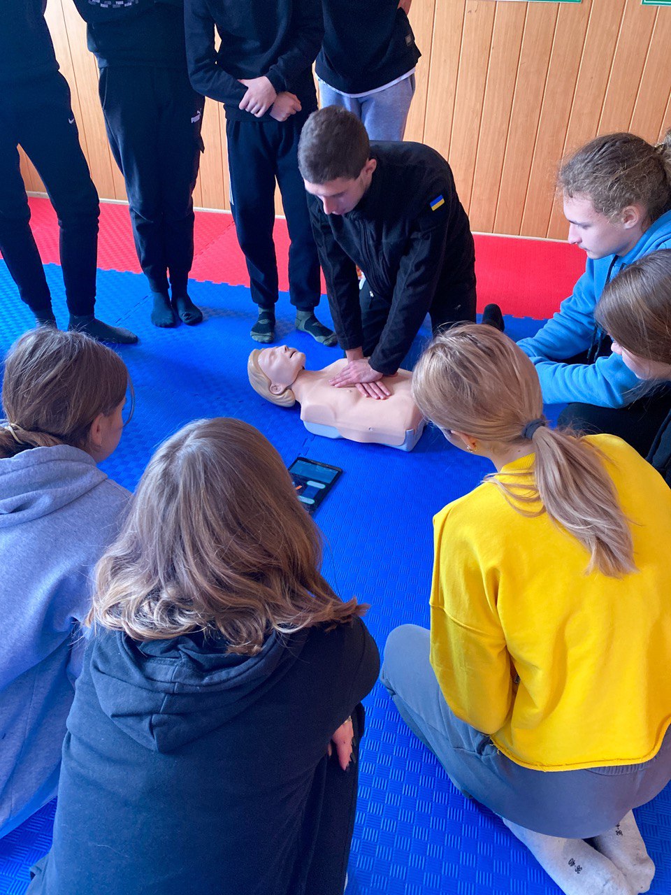 Крім того, старшокласники під пильним контролем наставників мали змогу самостійно провести серцево-легеневу реанімацію та накласти джгут.