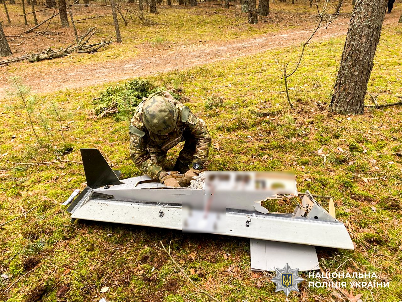Фахівці вибухотехнічної служби поліції виявили уламки кількох безпілотних літальних апаратів, в одного з яких 50 кілограмова бойова частина не здетонувала. Поліцейські знищили її у безпечному місці.