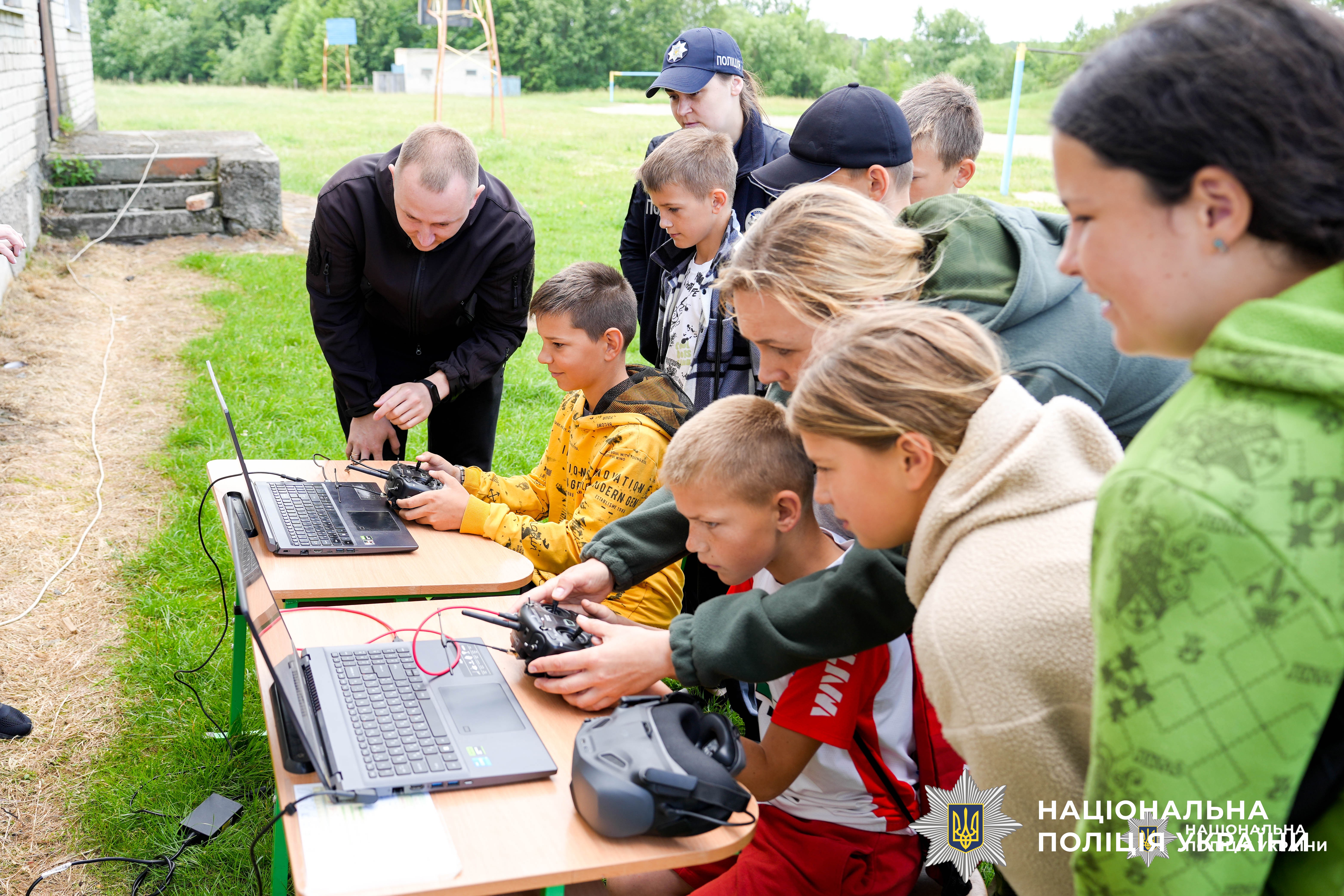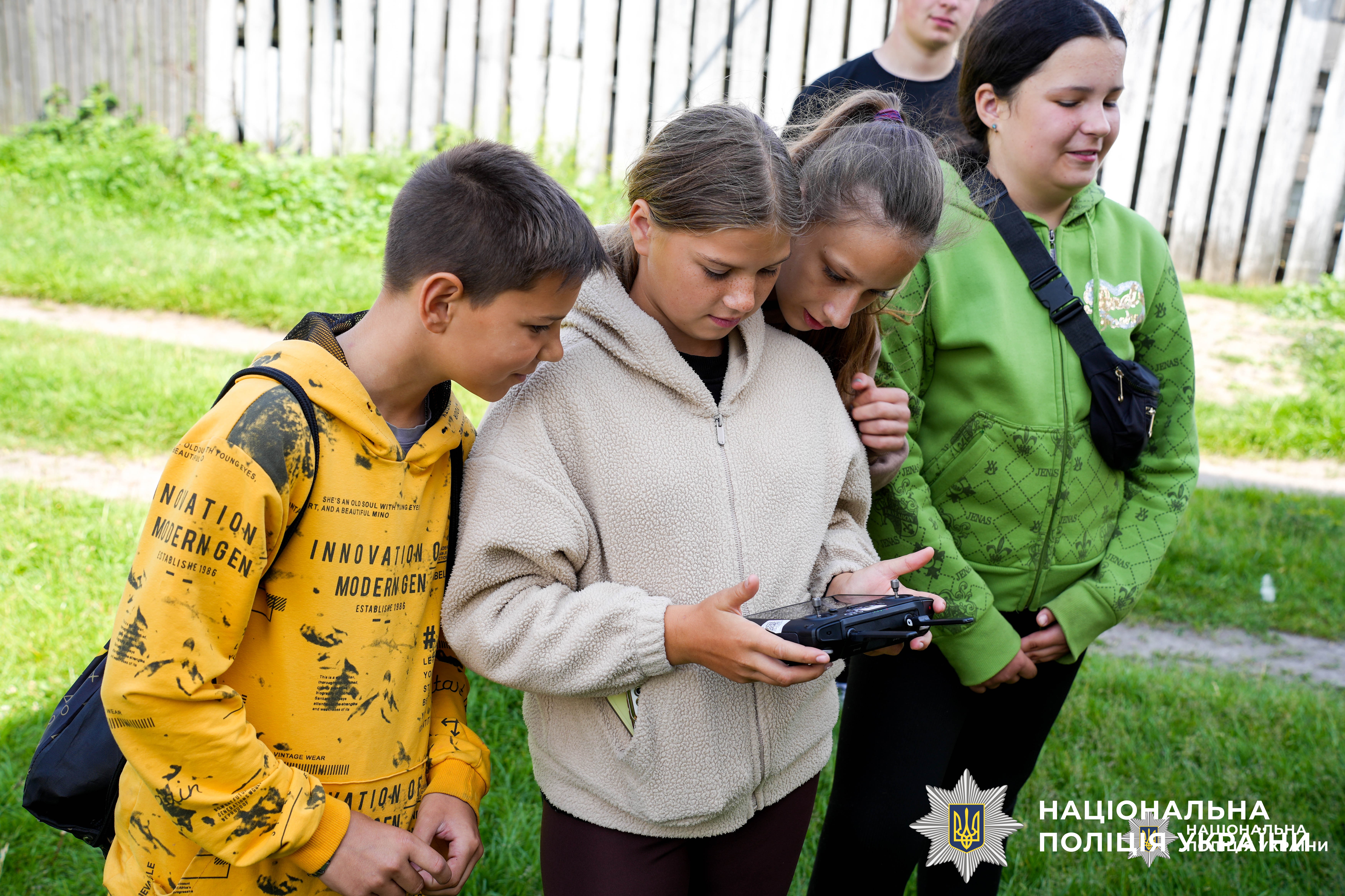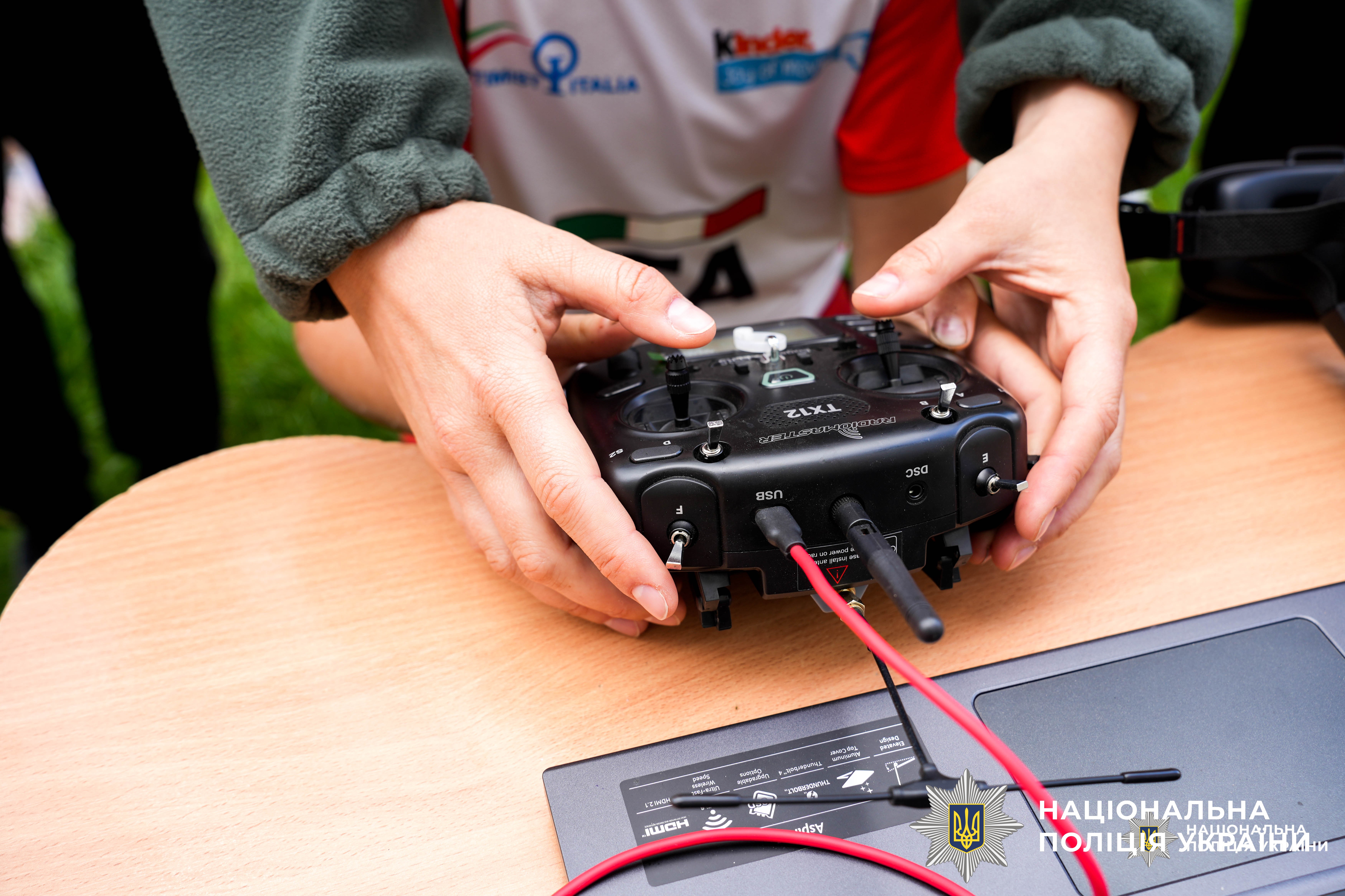 Діти мали змогу попрактикуватися на спеціальних стимуляторах для польотів дронами. А згодом, із величезним захопленням та цікавістю самостійно керували невеличким безпілотником.