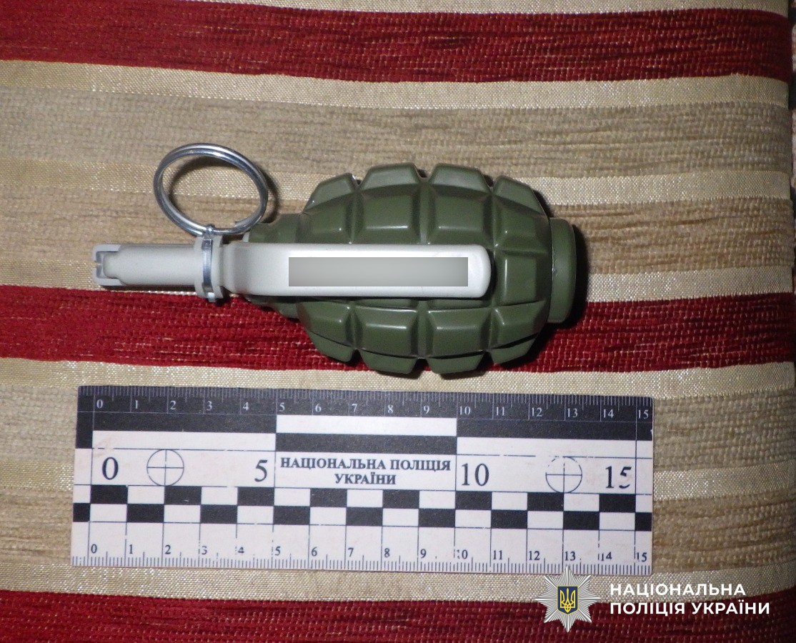 Фахівці вибухотехнічної служби вилучили гранату, яка виявилася навчально-тренувальною. Крім того, під час огляду помешкання вилучили запалювальну трубку, тротилову шашку «Т-200» та артилерійський порох.