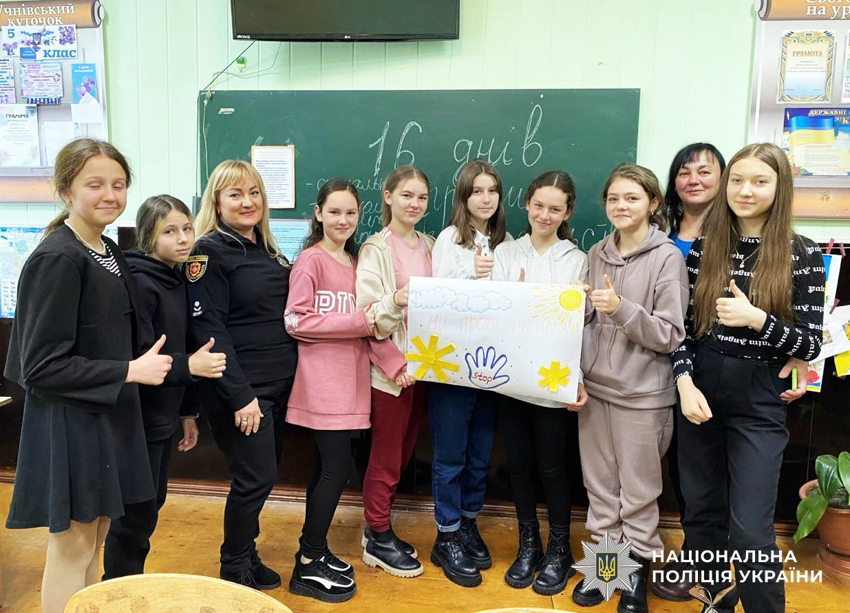 У рамках проведення Всеукраїнської кампанії «16 днів проти насильства» інспектори ювенальної превенції та поліцейські офіцери громад розповідають дітям про домашнє насильство та насильство за ознакою статі.
