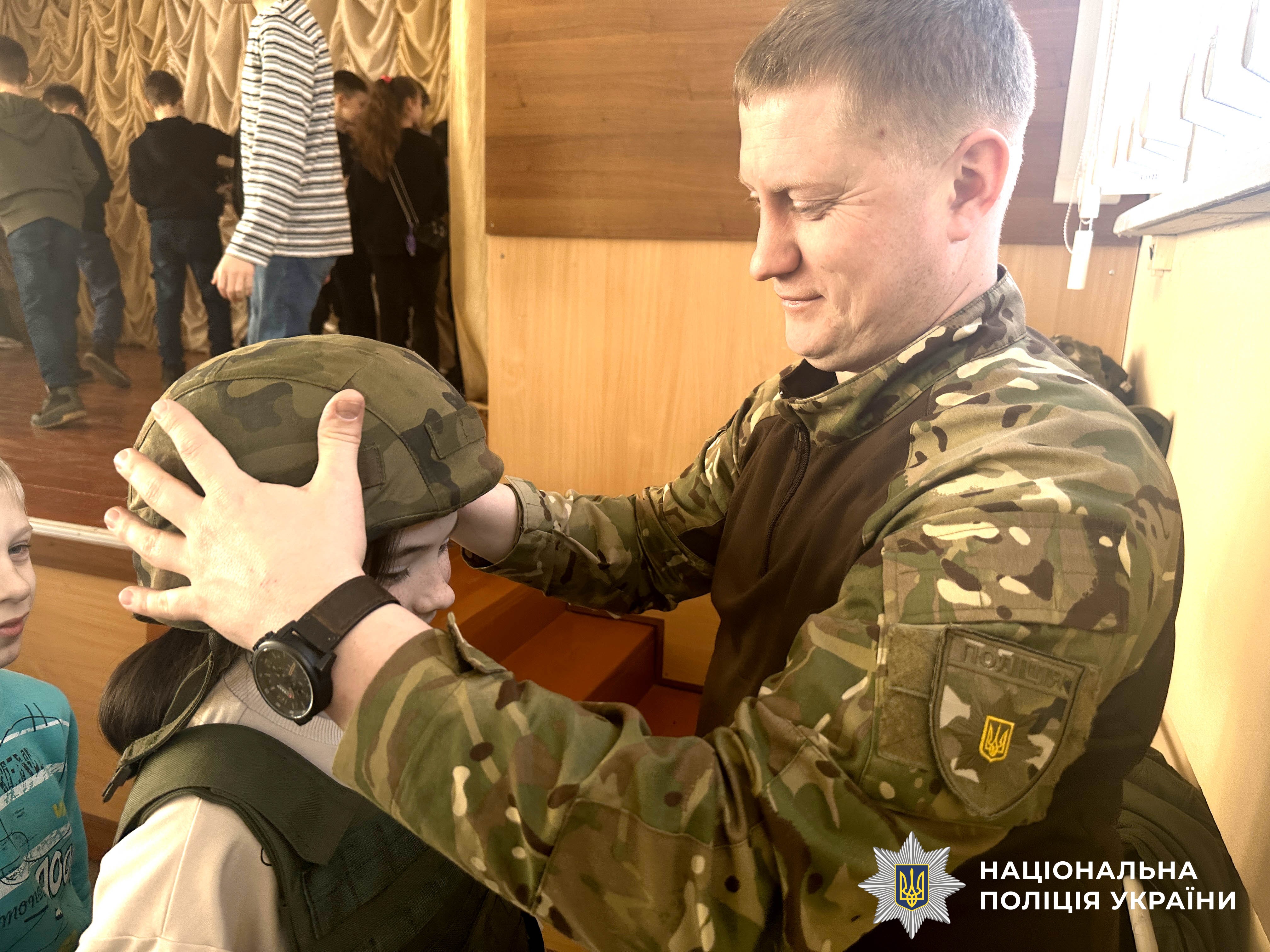 Також діти мали змогу приміряти спеціальну захисну амуніцію правоохоронців, від яких довідалися про її види та особливості.