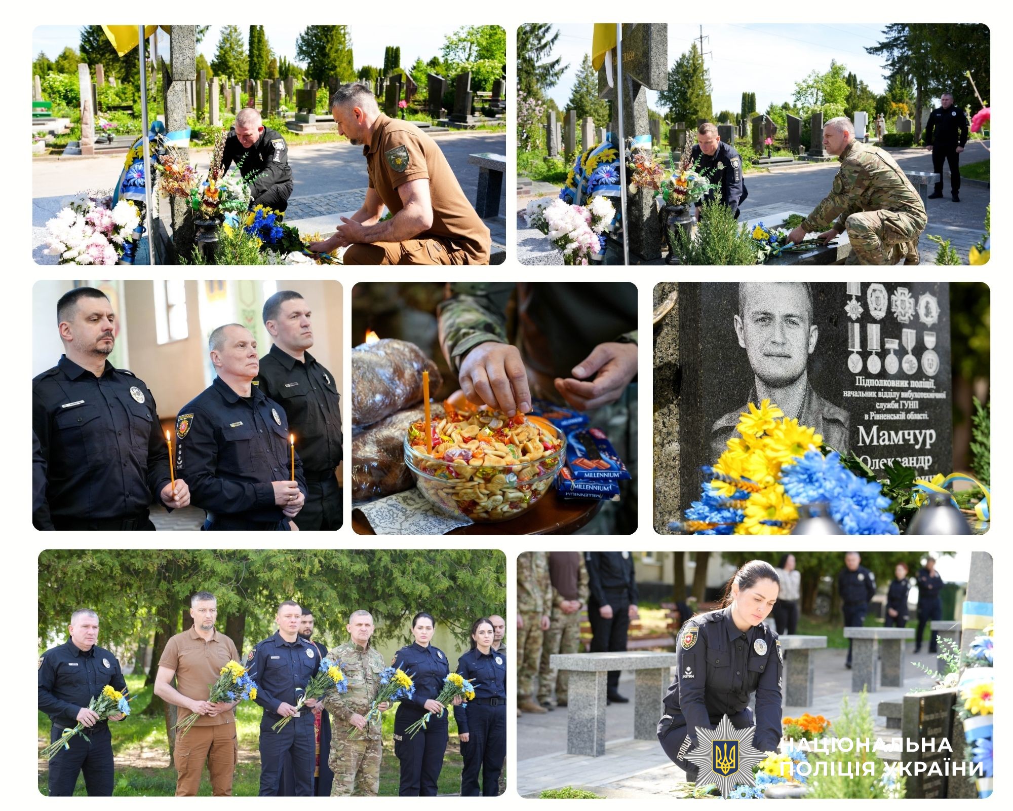 Після молебню керівництво поліції області спільно з рідними відвідало могили Героїв та в пам'ять про їхню самовідданість і мужність символічно поклали квіти.