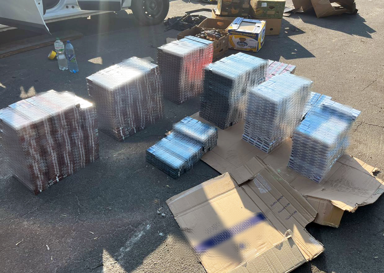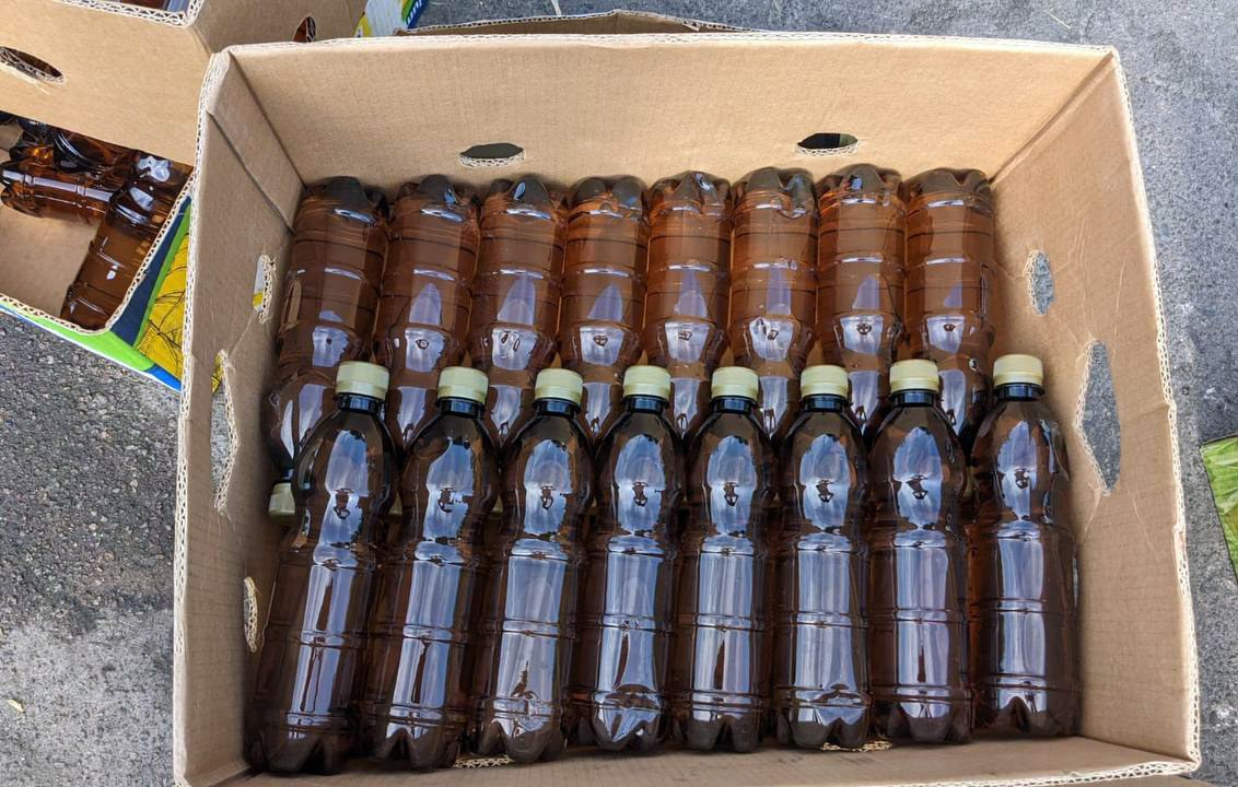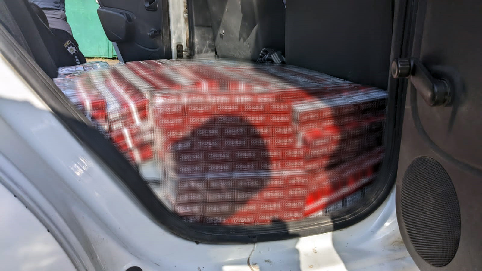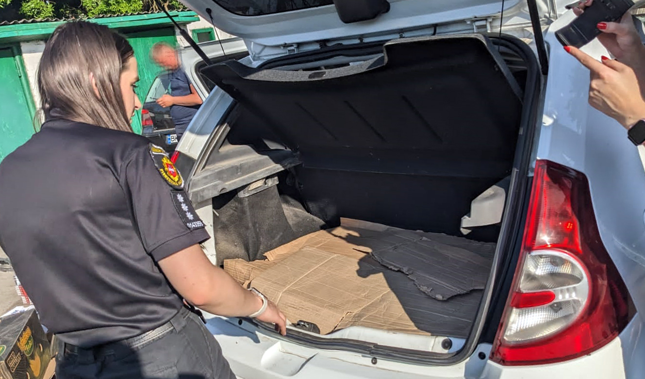 Учора, шостого червня, поліцейські провели санкціонований обшук у транспортному засобі. В салоні та багажнику виявили та вилучили 3868 пачок цигарок без марок акцизного податку, 600 пластикових пляшок по 0,5 літрів кожна загальним об’ємом 300 л, а також 3 термопакети по 9,5 літрів невідомою речовиною із різким запахом алкоголю.