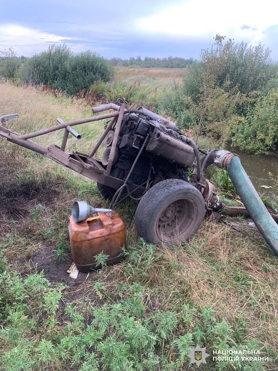 Того ж дня під час патрулювання працівники сектору реагування патрульної поліції ВП №2 (смт Зарічне) Вараського РВП в лісовому масиві поблизу села Ждань виявили мотопомпу кустарного виробництва та автомобіль «Нива».