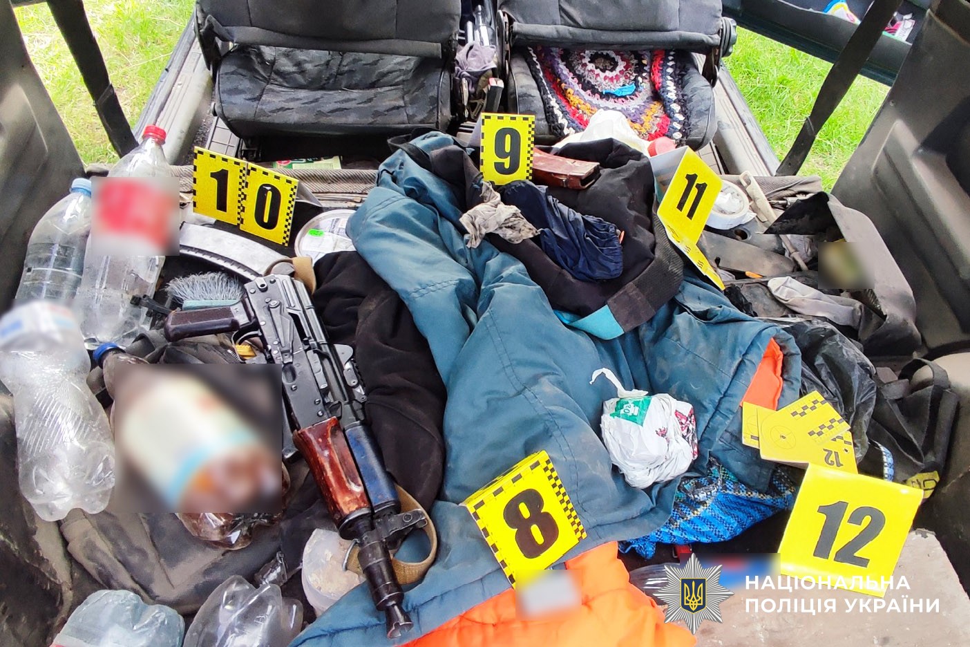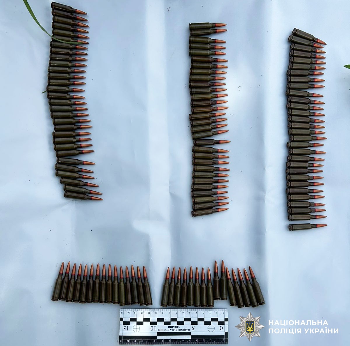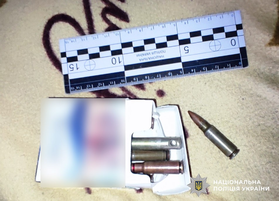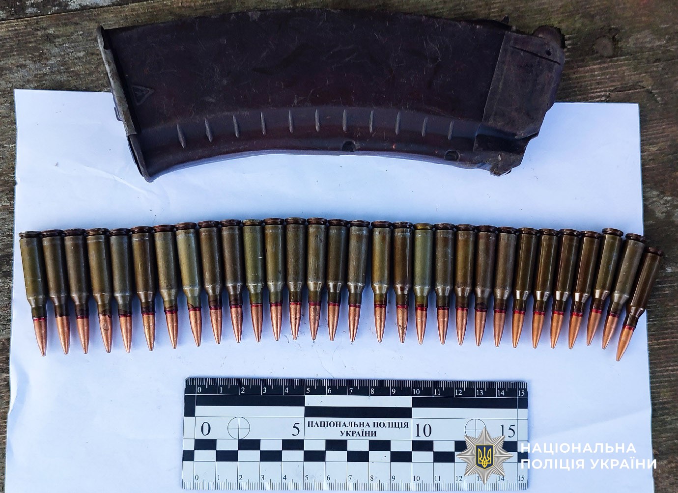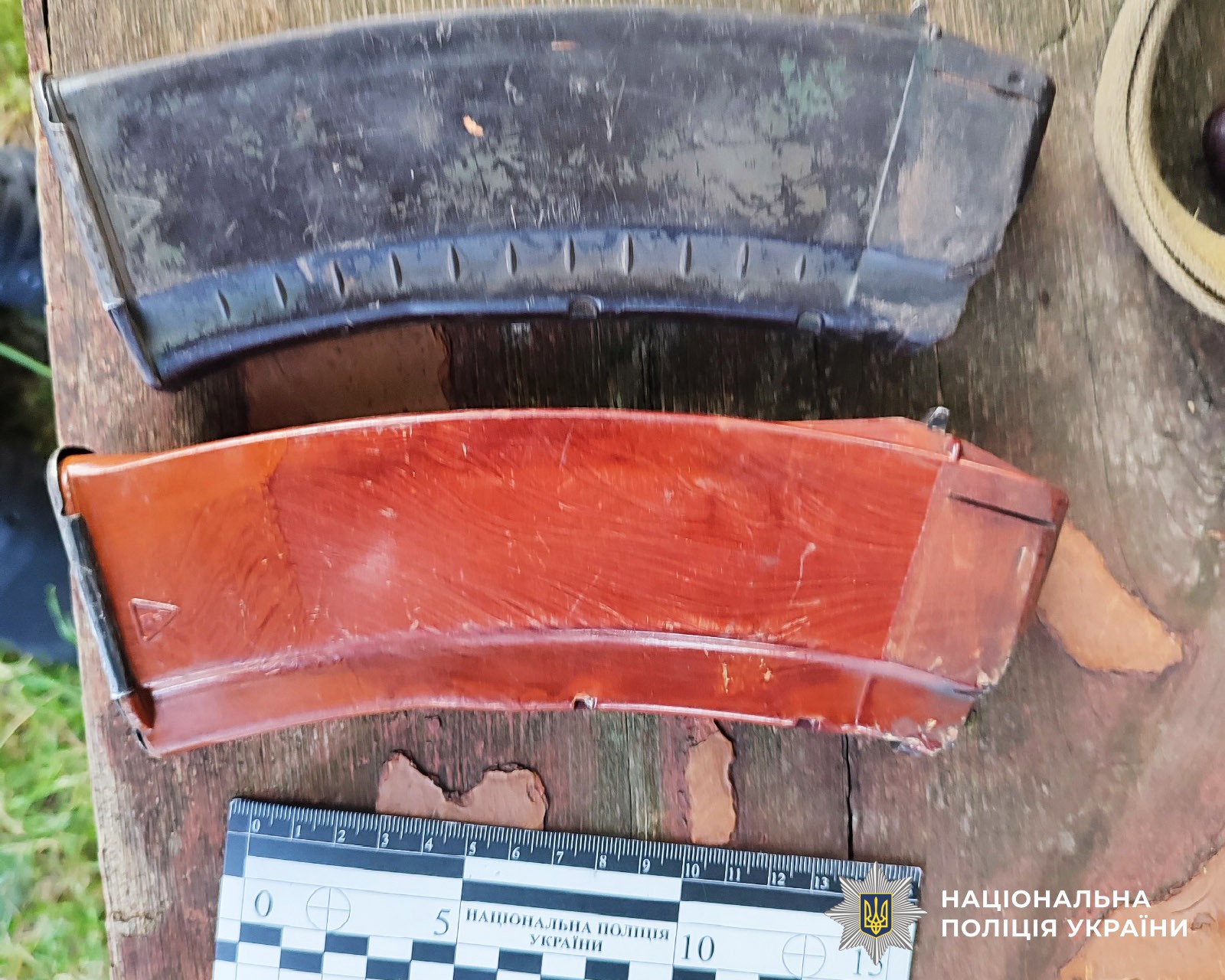Слідчо-оперативна група спільно з кінологами та вибухотехніками під час огляду легковика «ВАЗ-21083», який належить 41-річному жителю села Золотолин, виявили та вилучили автомат АКС-74У, 3 магазини, 151 патрон калібру 5,45 мм, 7 гільз калібру 5,45 мм.