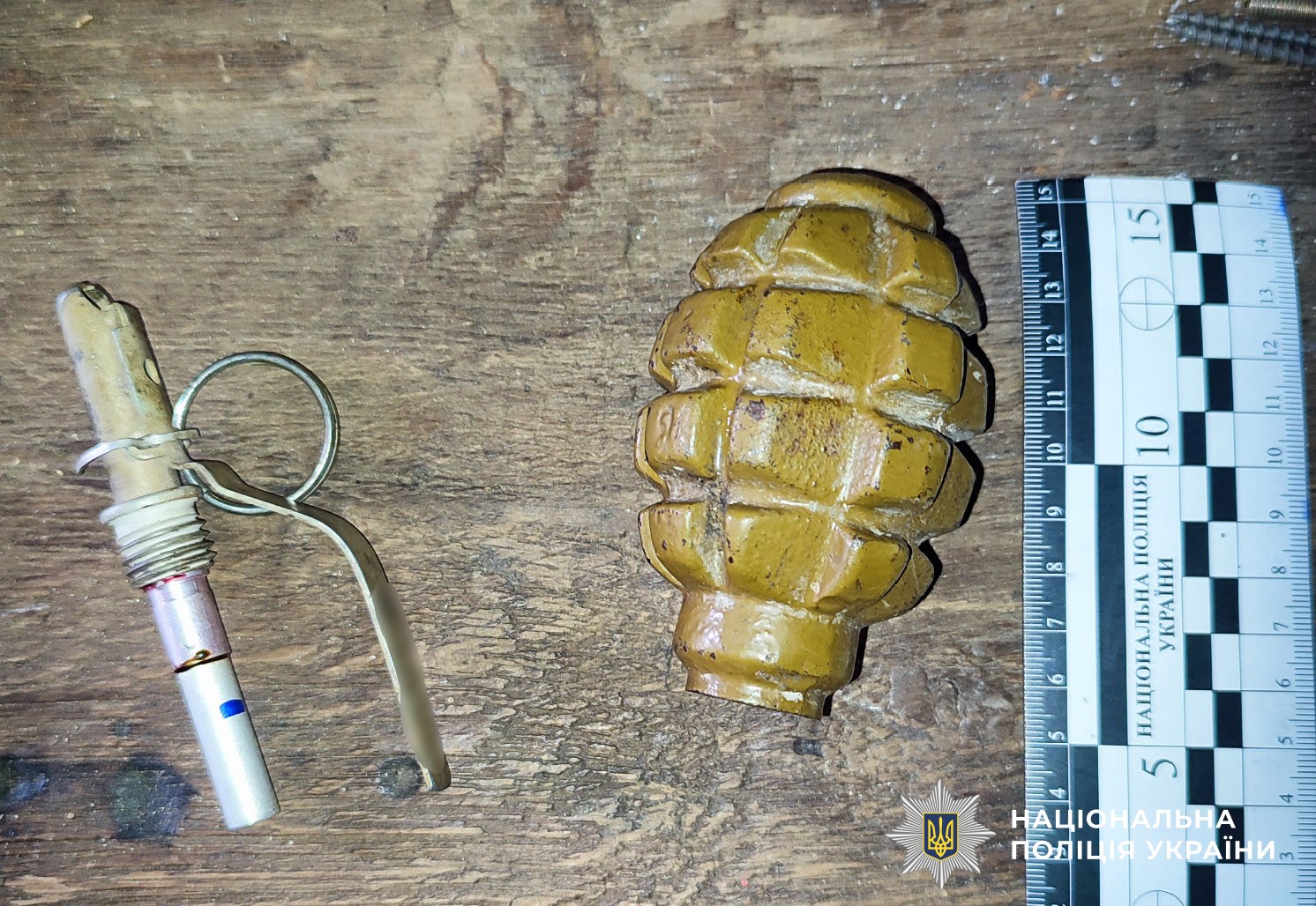Крім того, зловмисник надав дозвіл на огляд будинку, де правоохоронці виявили гранату «Ф-1» та запал до неї.