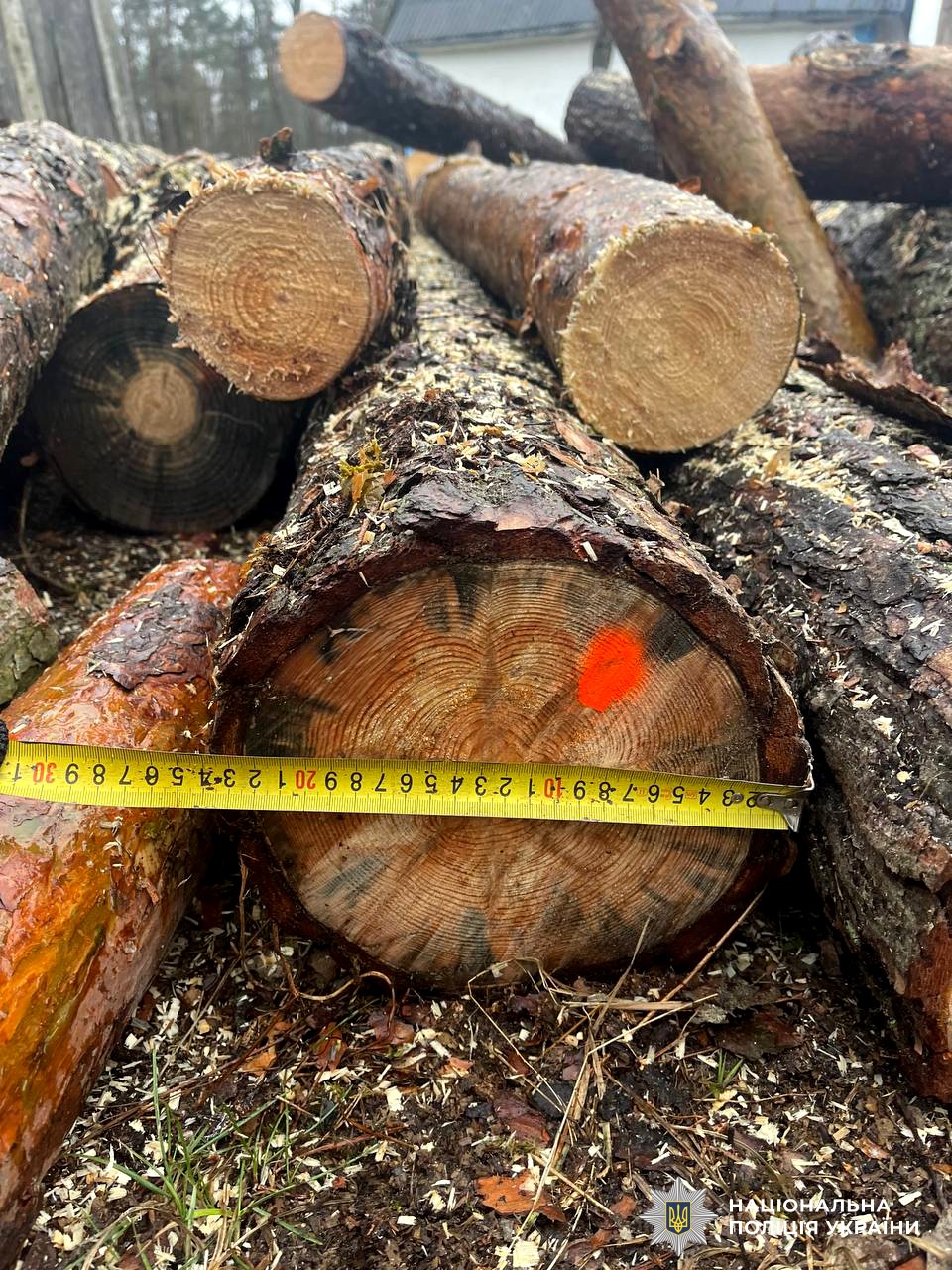 Поліцейські з місця події вилучили 2,5 куб.м колод різного діаметра та встановлюють осіб, причетних до вчиненого кримінального правопорушення.