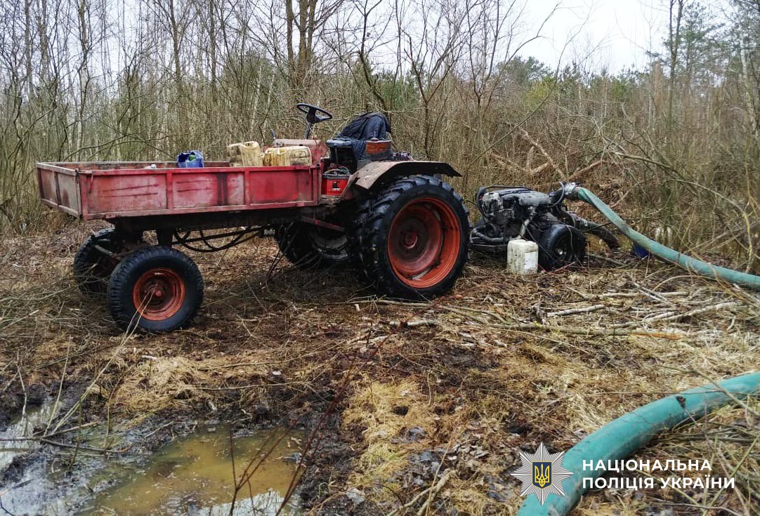 Побачивши поліцію, вони викликали підмогу: близько 10 чоловіків оперативно прибули на місце. Коли поліцейські почали вилучати обладнання, ті чинили опір, відтак виникла сутичка, штовханина та бійка. У результаті — більшість порушників втекли, а з місця події вилучили мотопомпу, трактор та інше обладнання.