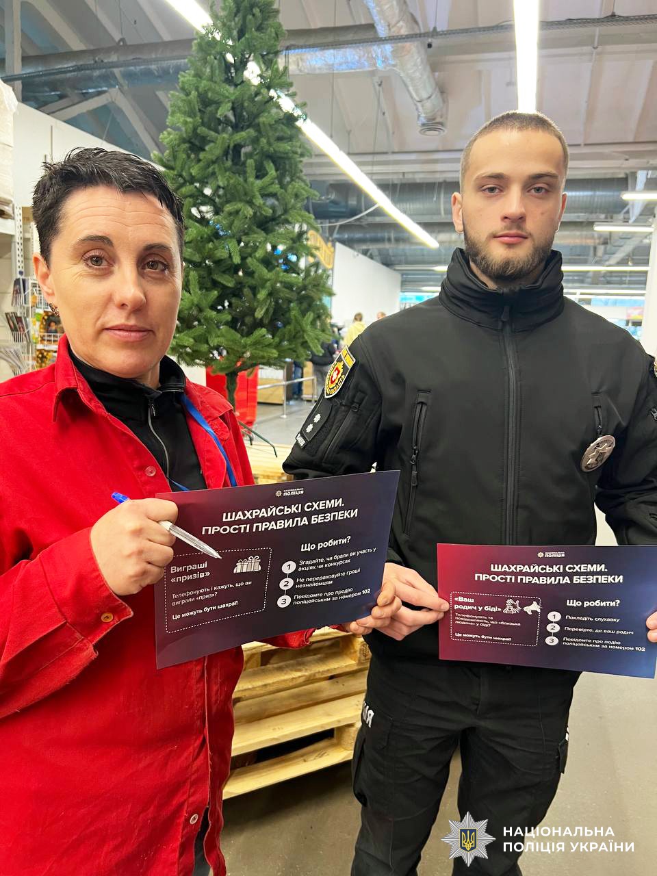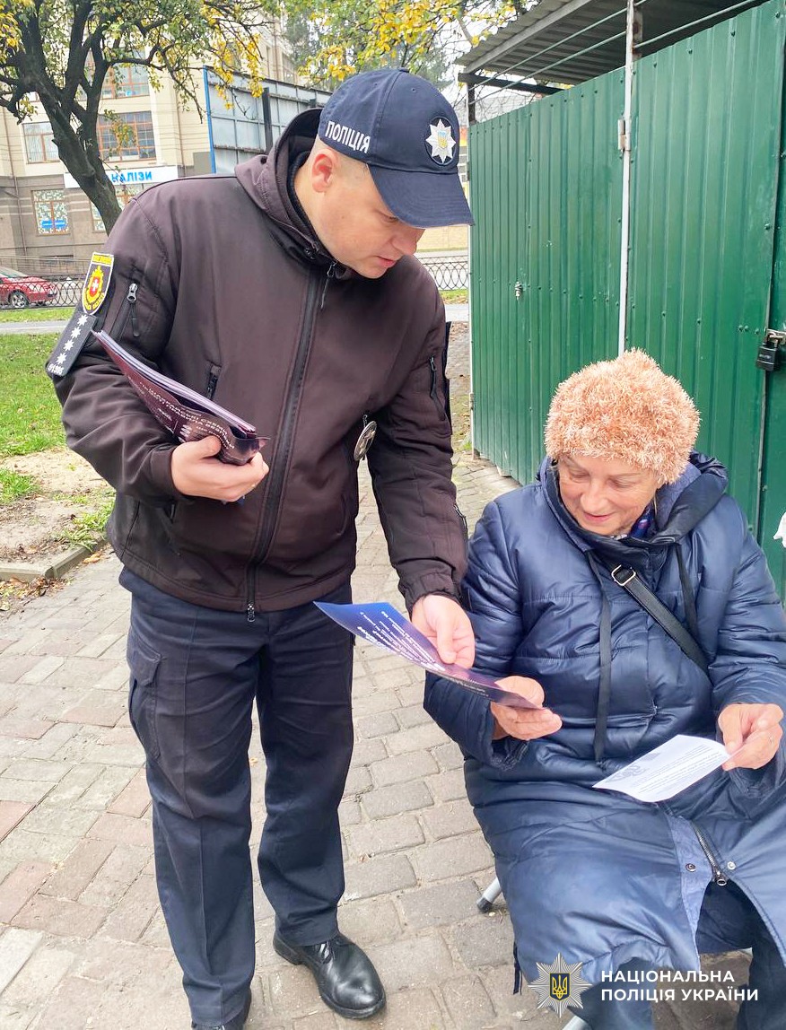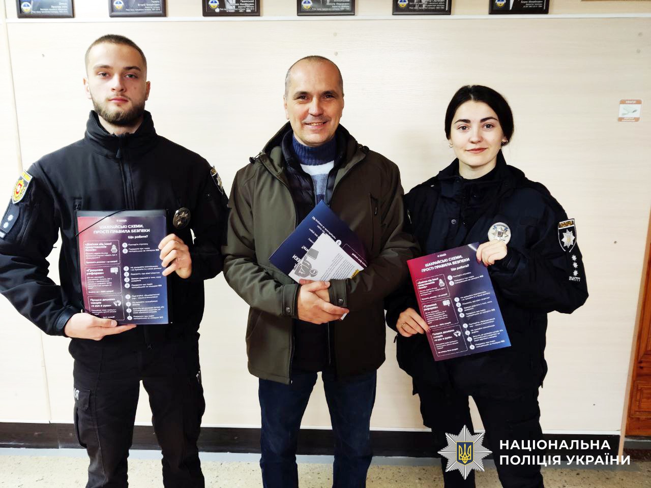 У територіальних громадах поліцейські офіцери роздають жителям листівки з порадами, як вберегтися від шахрайських маніпуляцій.