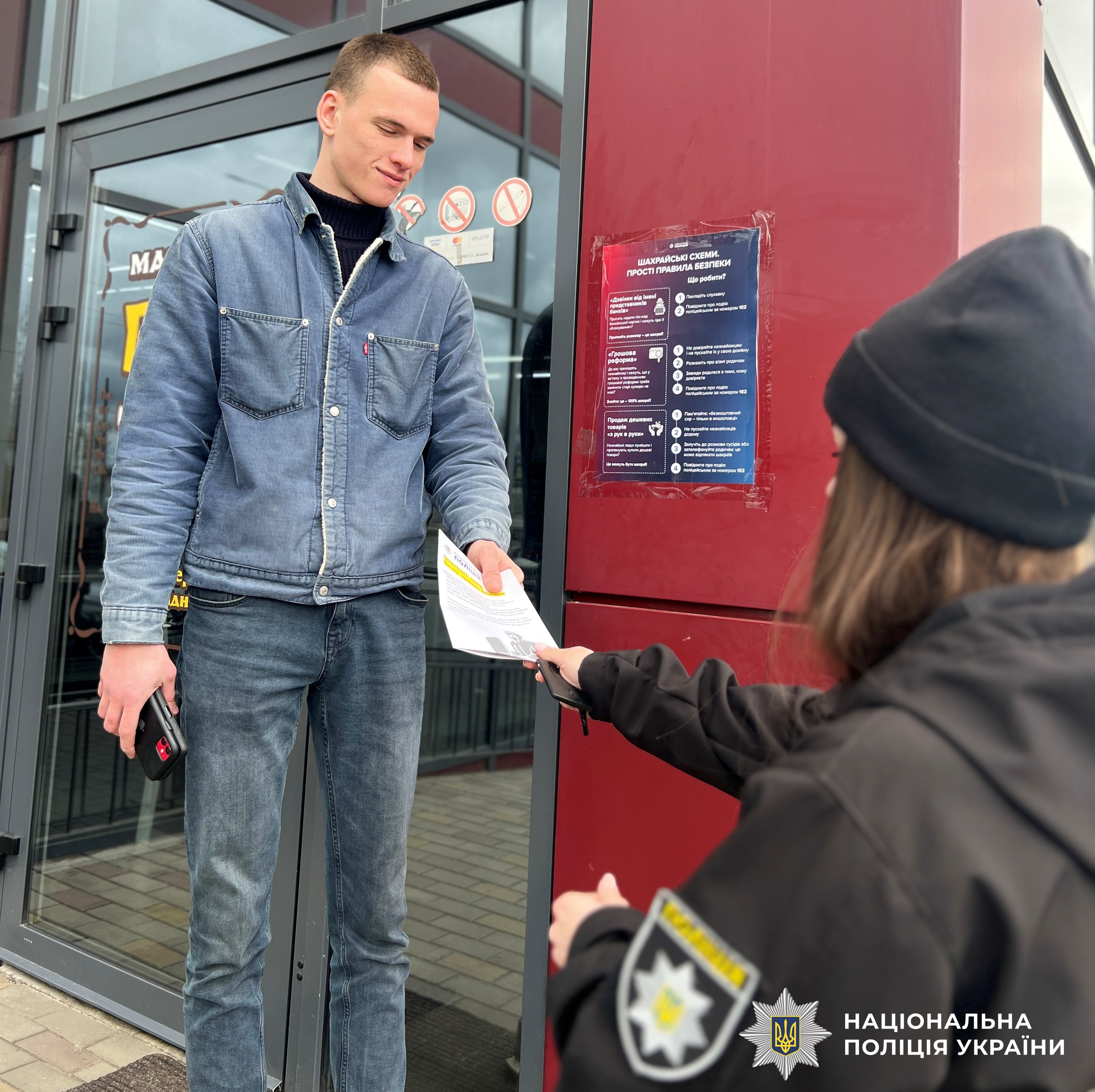 У закладах освіти, громадському транспорті, магазинах та державних установах правоохоронці розміщують інформаційні буклети та роздають жителям листівки з порадами, як не стати жертвами шахрайських дій.