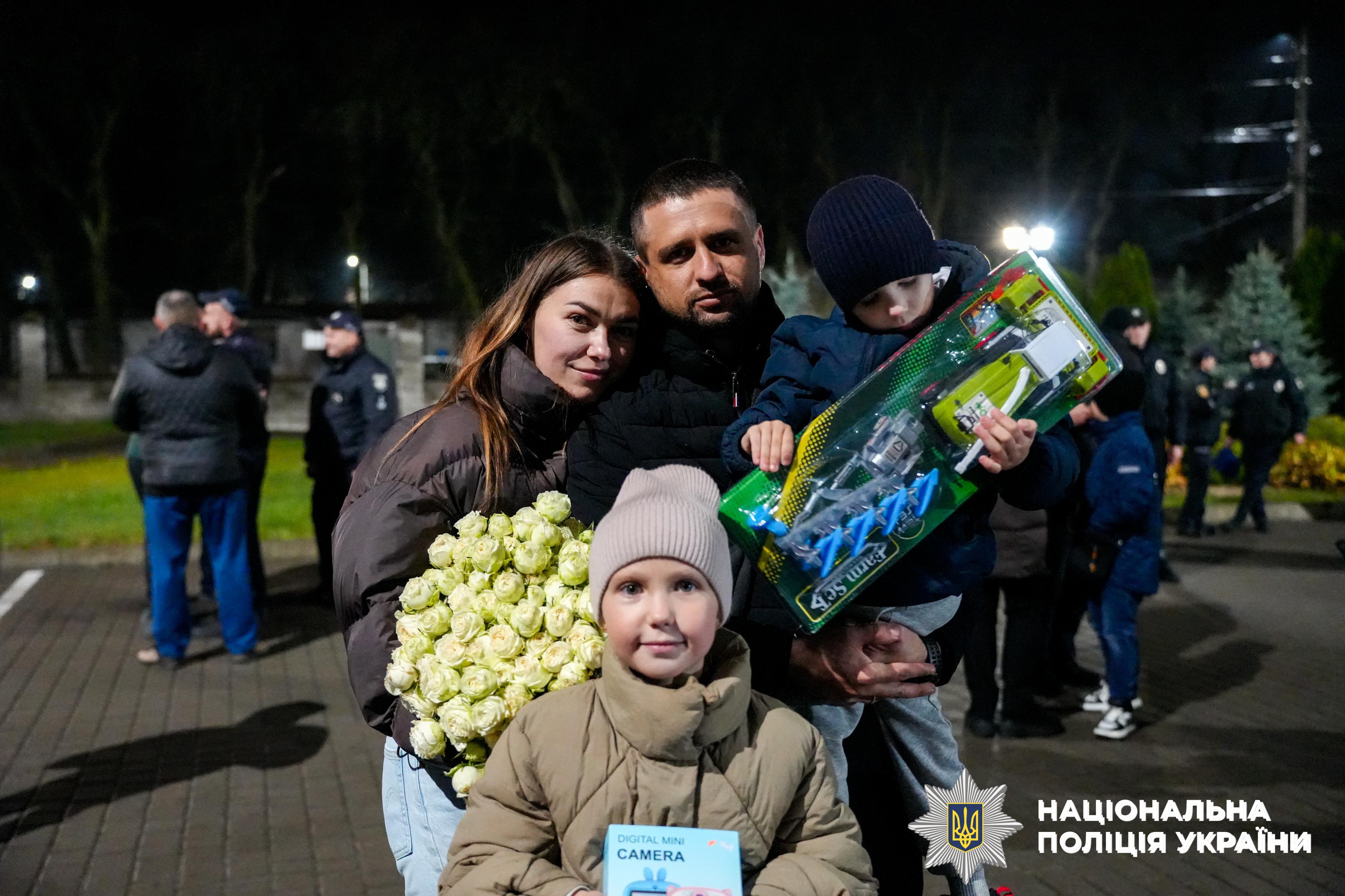 Учора, частина поліцейських нарешті приїхала додому: виснажені та втомлені. Ще напередодні їхні очі бачили смерть та руїни, а зараз бійці тримають на руках свою малечу, обіймають коханих та батьків. Навіть повертаючись з передової, вони лишилися справжніми джентльменами: придбали для дружин квіти, а дітям іграшки…