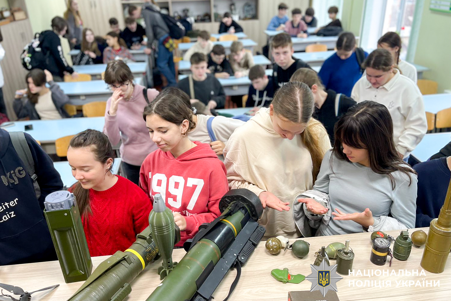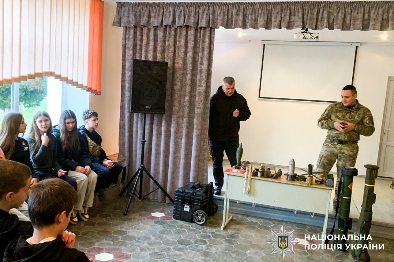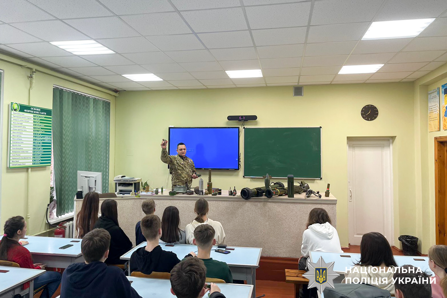 Поліцейські обговорили з учнями поняття вибухонебезпечних предметів, саморобних вибухових пристроїв, а також дізналися про механізми їх дії. Також ліцеїсти наочно ознайомилися із макетами вибухонебезпечних пристроїв.