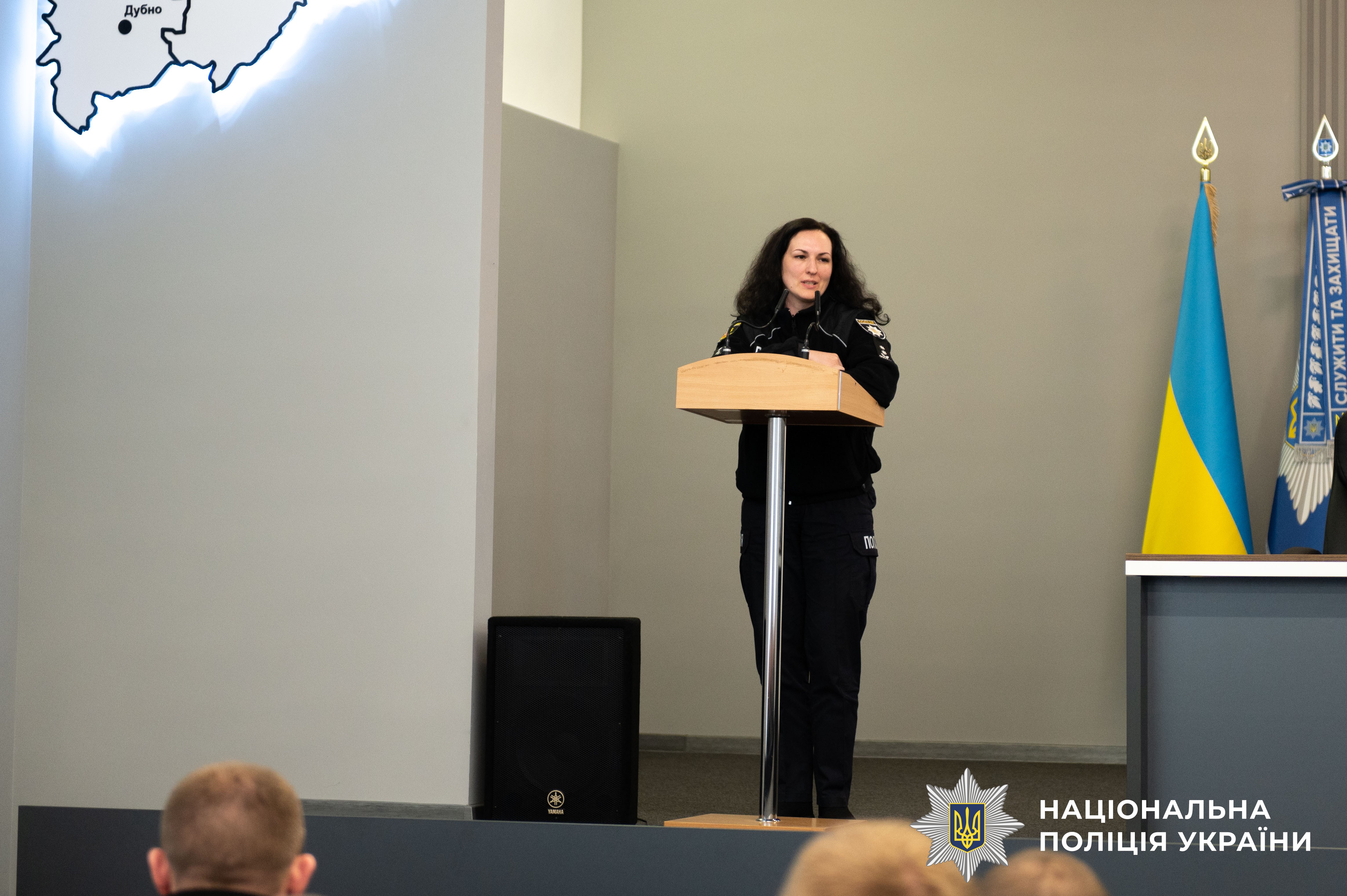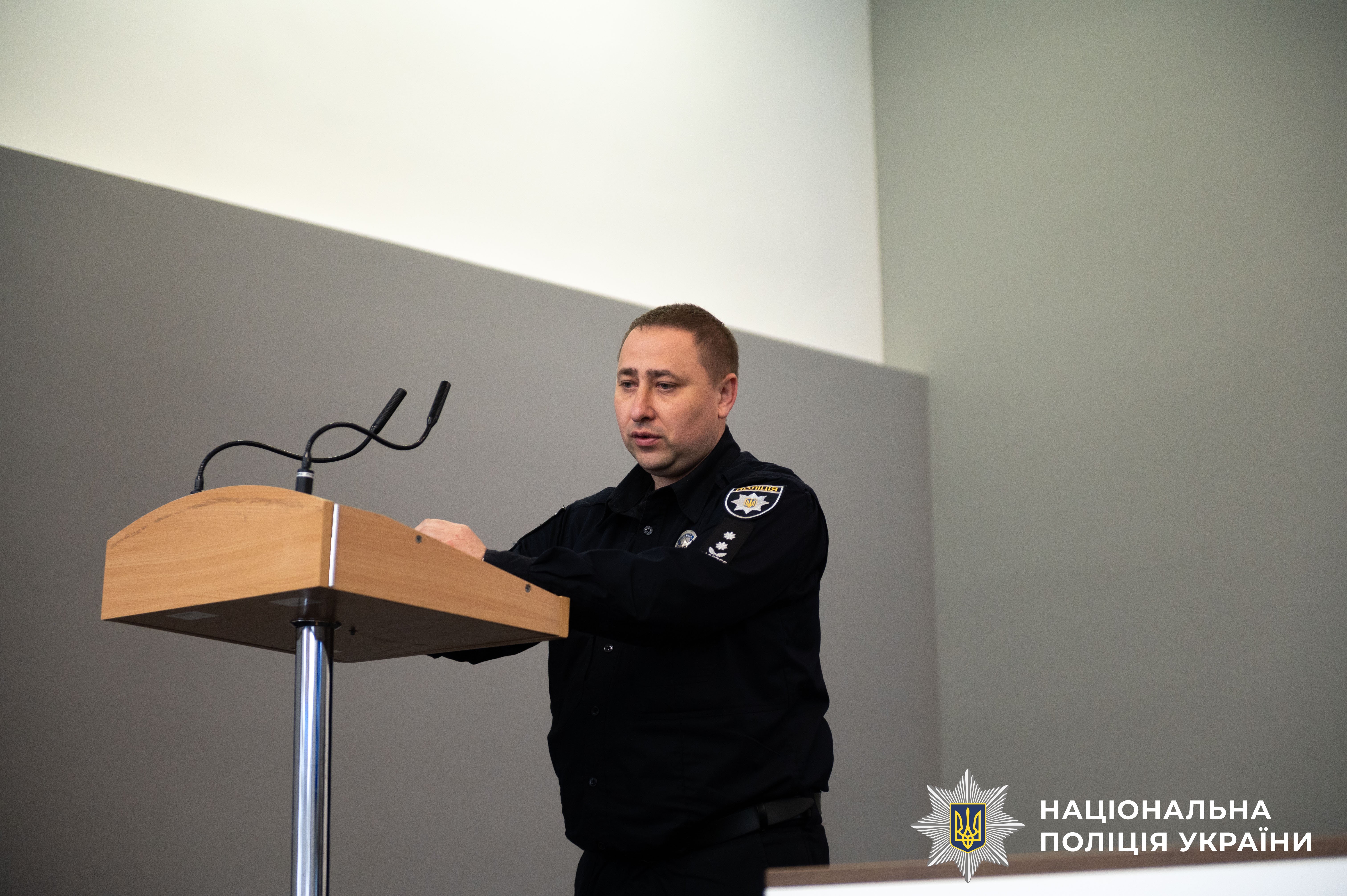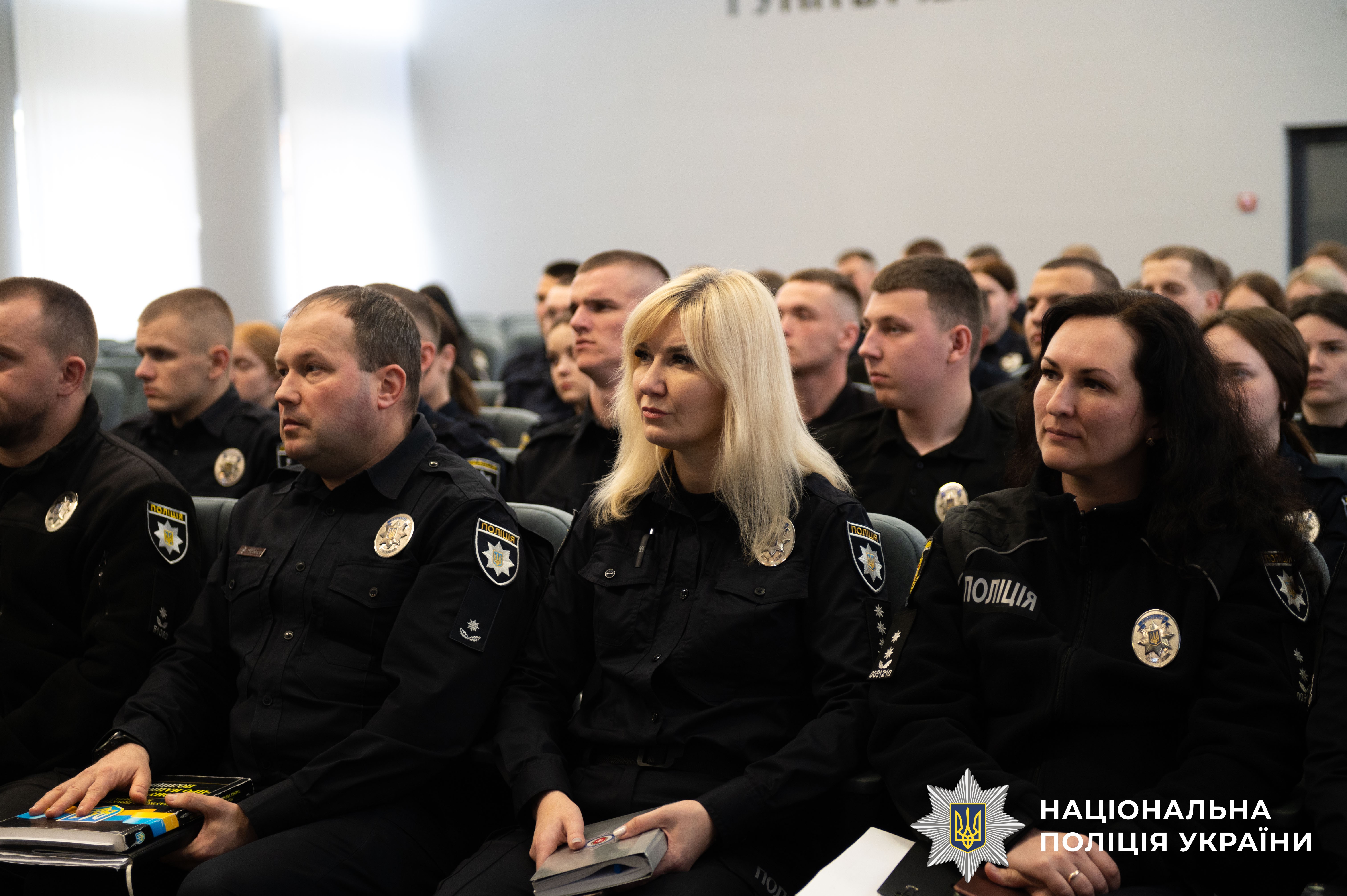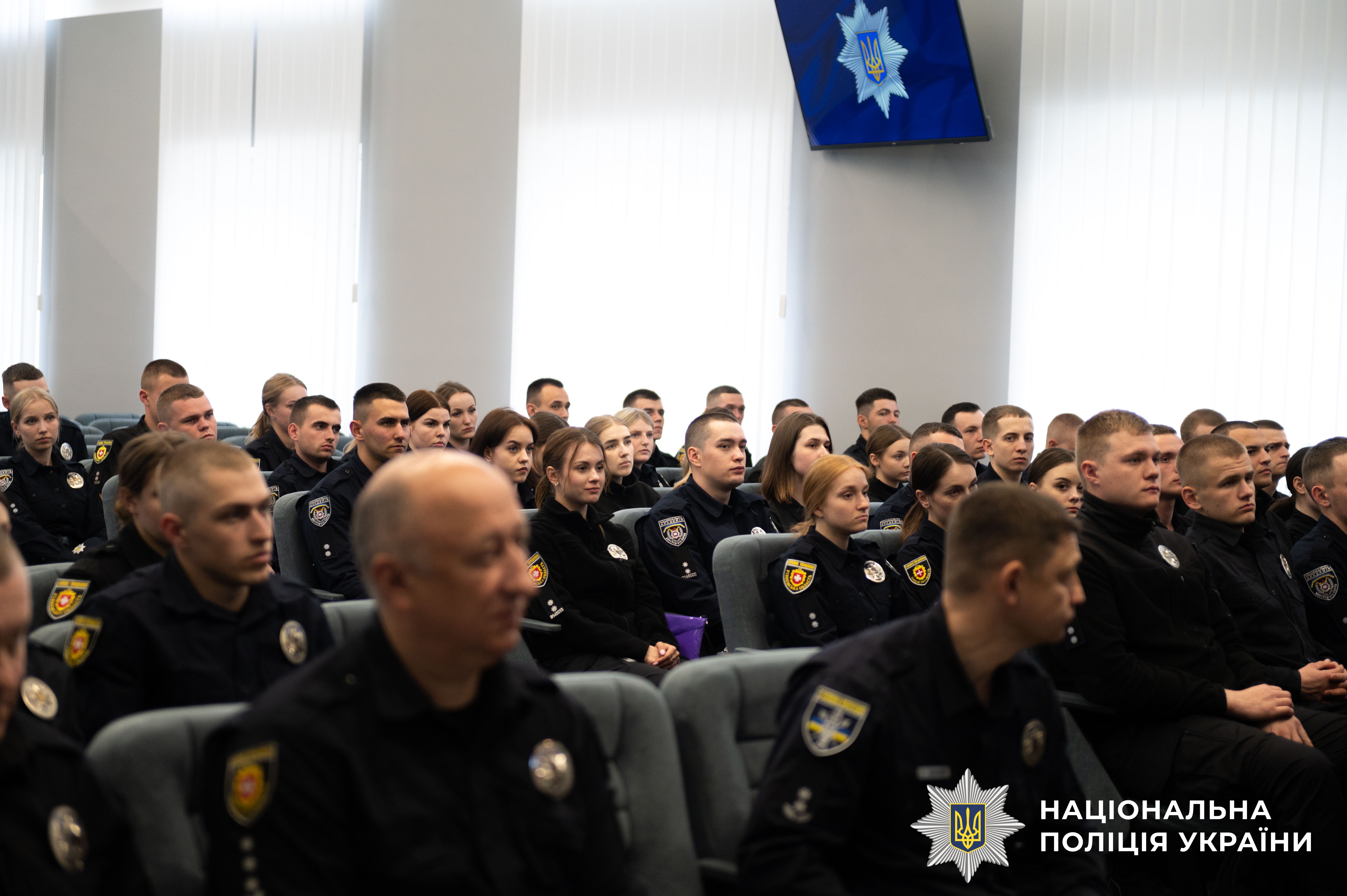«Сьогодні наша поліцейська родина стала більшою, а відтак — потужнішою. Одразу зауважу — легко не буде. Адже ви розпочинаєте службу в умовах правового режиму воєнного стану, де щодня потрібно бути готовим до будь-яких викликів. А от навчатися ви будете і надалі. Бо у поліцейській діяльності без цього неможливо. Витримки вам, а головне — професіоналізму та відданості справі, якій вирішили присвятити своє життя. А ми, зі свого боку, допоможемо вам опанувати всі ази у роботі».