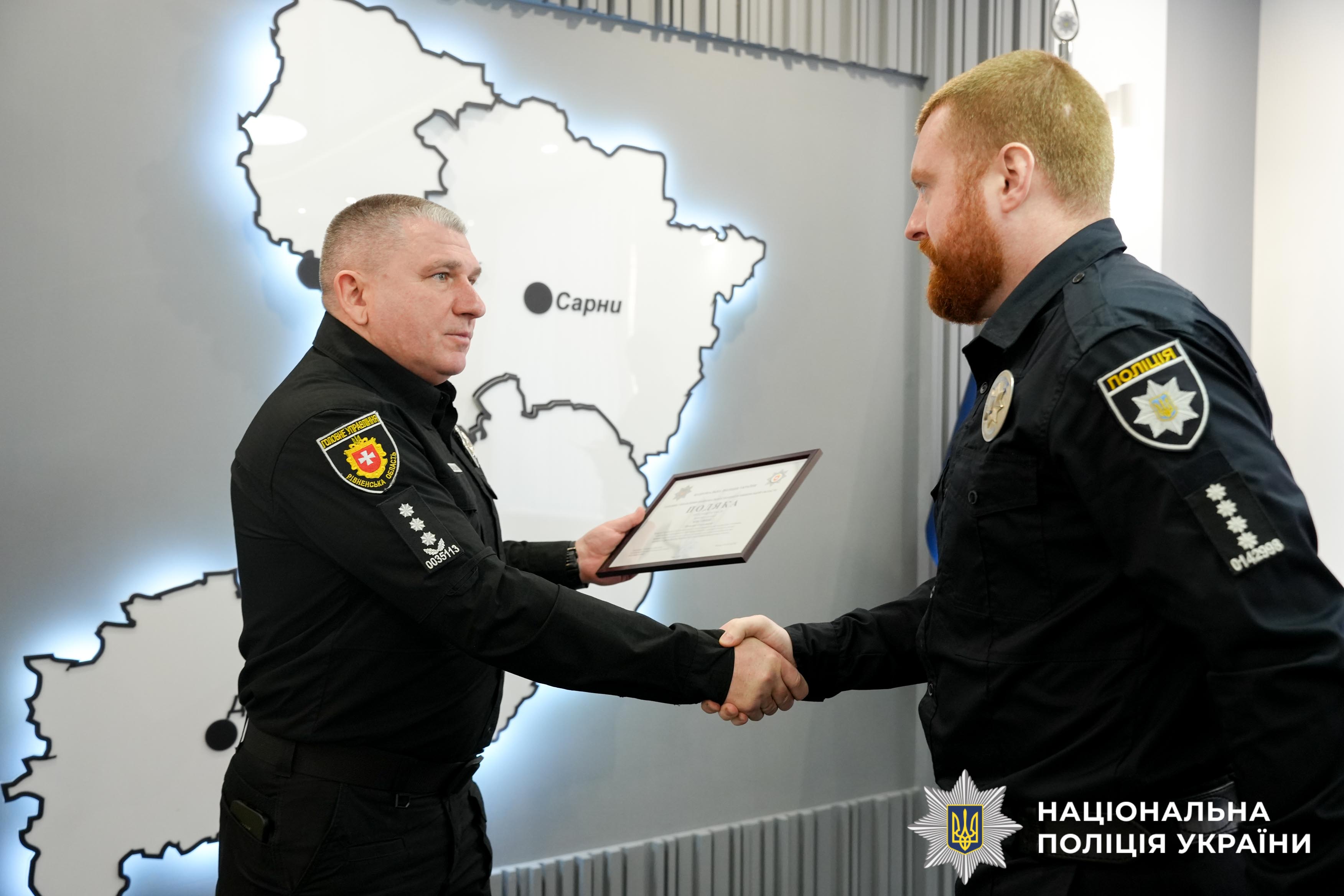 - оперативник Рівненського РУП, який встановив місцезнаходження зловмисника, який перебував у державному розшуку та переховувався від органів досудового розслідування на Прикарпатті за нанесення умисних тяжких тілесних ушкоджень. (https://t.me/NPU_Rivne/36464)
