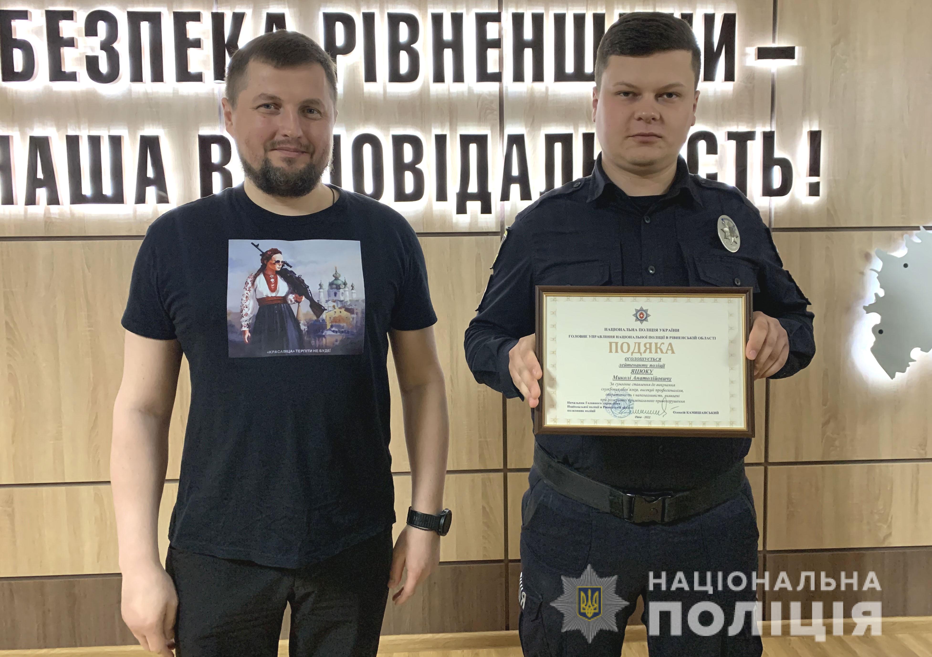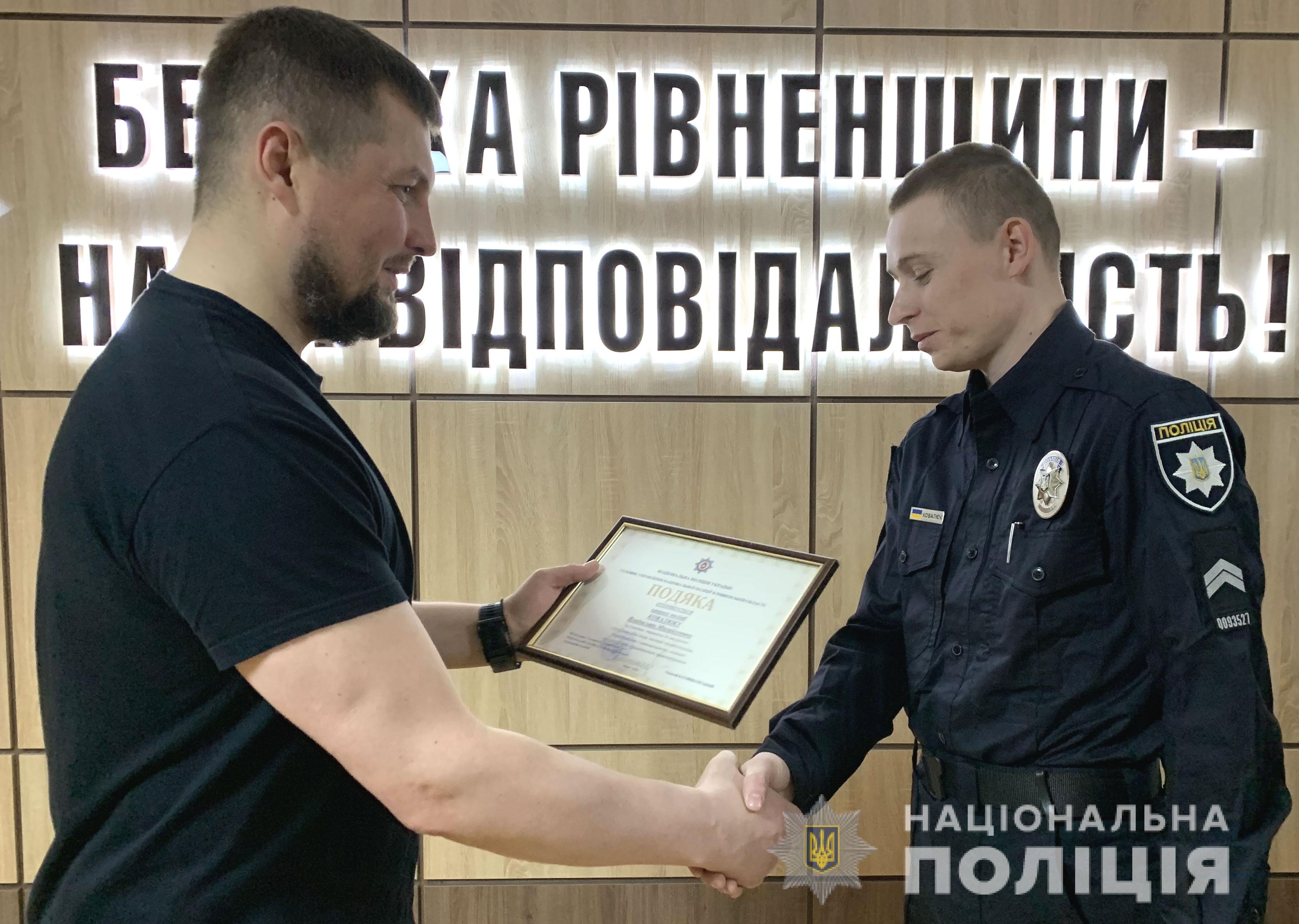 Сьогодні, 20 травня, начальник Головного управління Нацполіції в Рівненській області вручив двом працівникам сектору реагування патрульної поліції відділення поліції № (м. Острог) «Подяки».