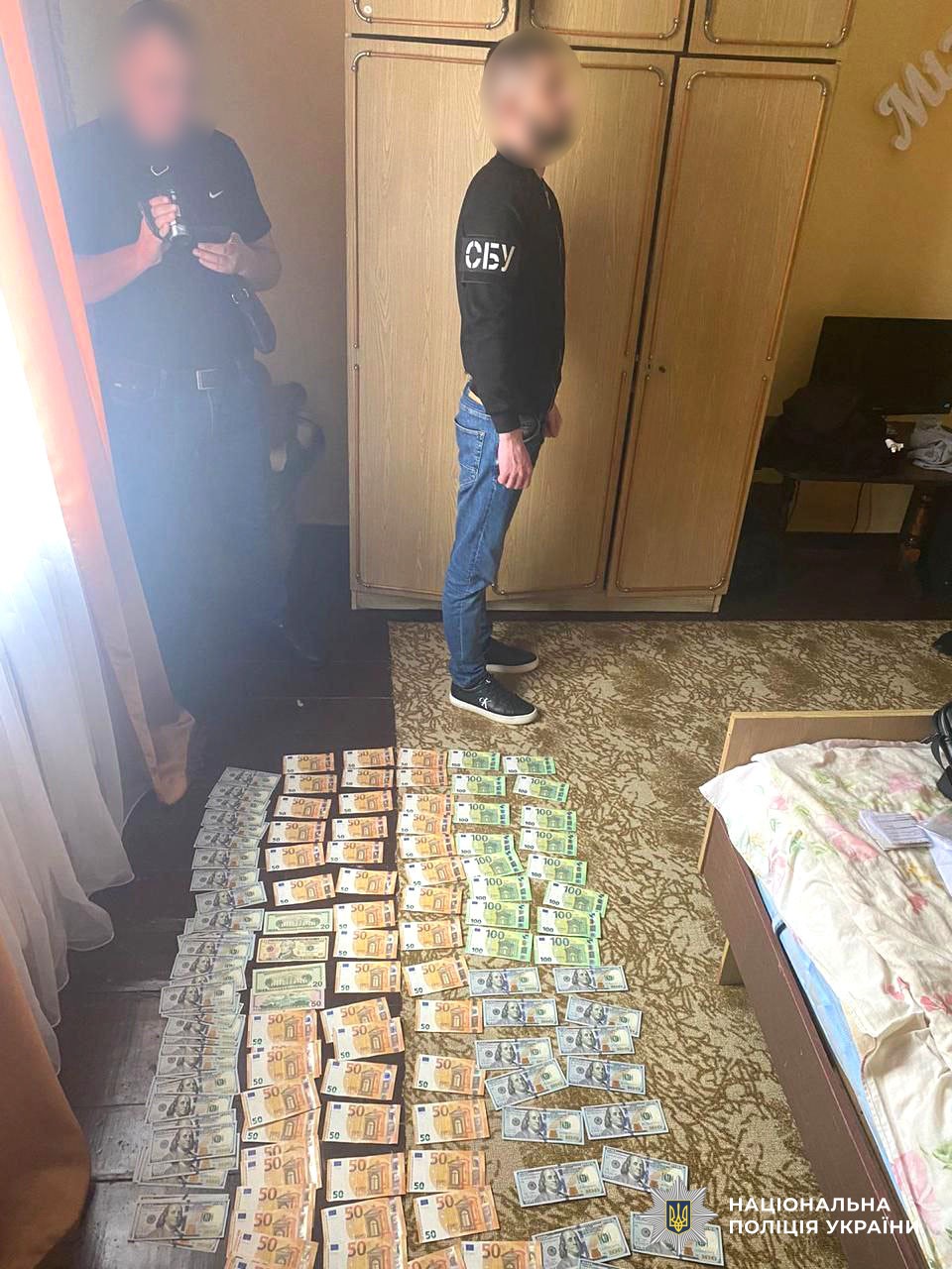 Слідчі провели ряд обшуків за місцем проживання та у транспортному засобі 20-річного фігуранта, під час яких вилучили документи, банківські картки, понад 10 тисяч доларів США та понад 7 тисяч євро, мобільний телефон та автомобіль.