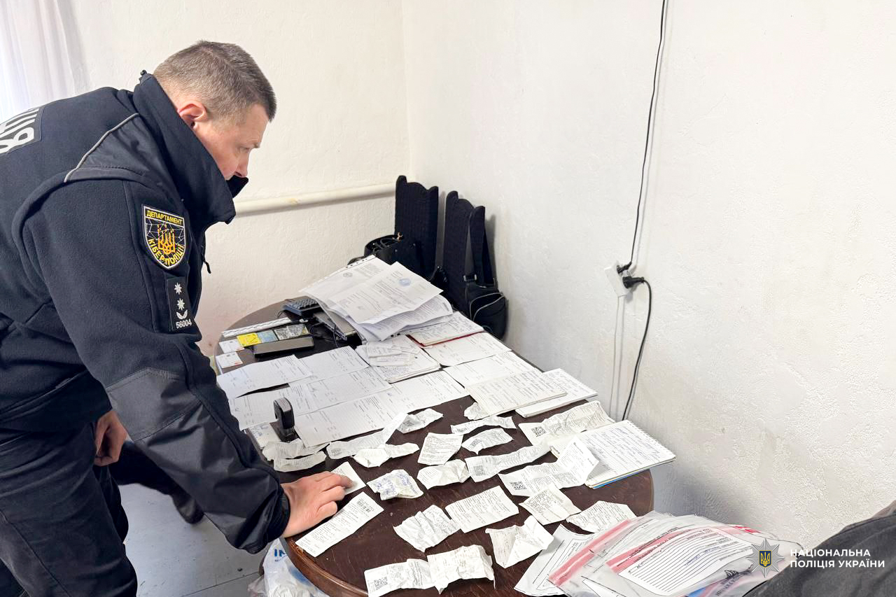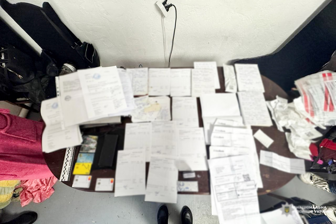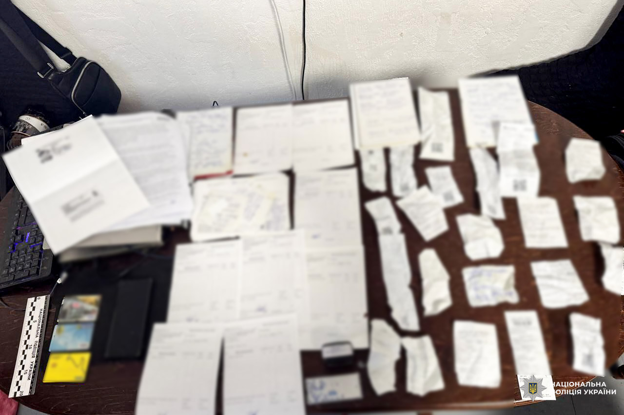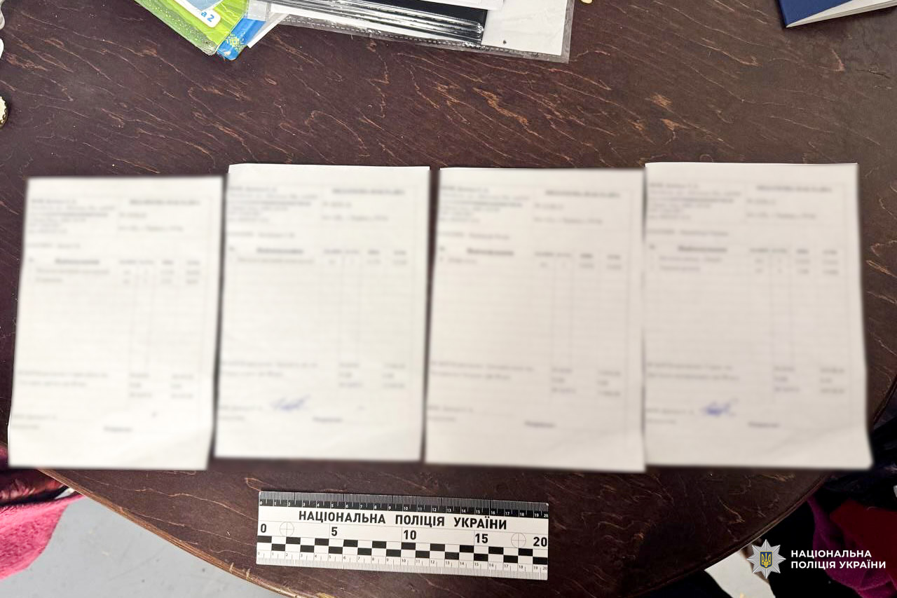 Поліцейські провели санкціонований обшук за місцем проживання фігурантки, де виявили та вилучили мобільний телефон, фіскальні чеки, накладні, печатку банківської установи та чорнові записи.