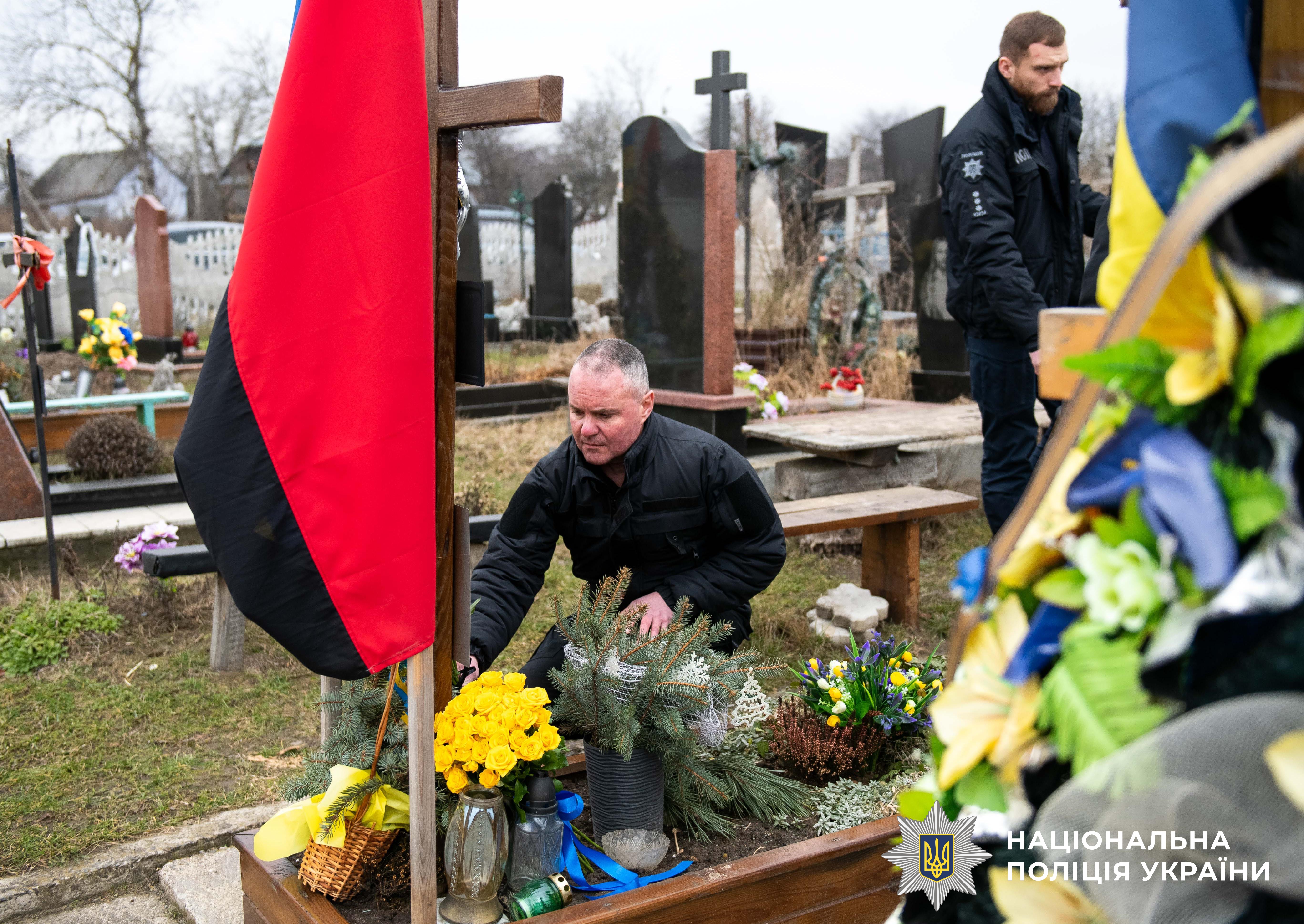 Сьогодні, 15 лютого, на його могилу в селищі Клевань, де він 10 років був місцевим «шерифом», керівник відділення поліції №1 (м. Рівне) та помічник начальника ГУНП в Рівненській області поклали квіти — у пам’ять про колегу, бойового офіцера, захисника.