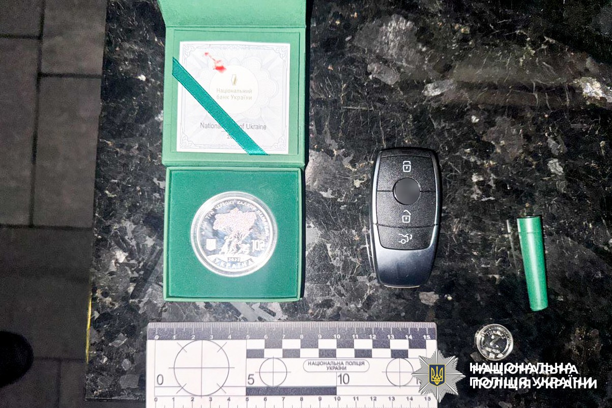Через дві години зловмисник, розбивши вікно металевою коцюбою, проник до будинку на вулиці Покровській, звідки поцупив колекційну срібну монету та ключі від авто.